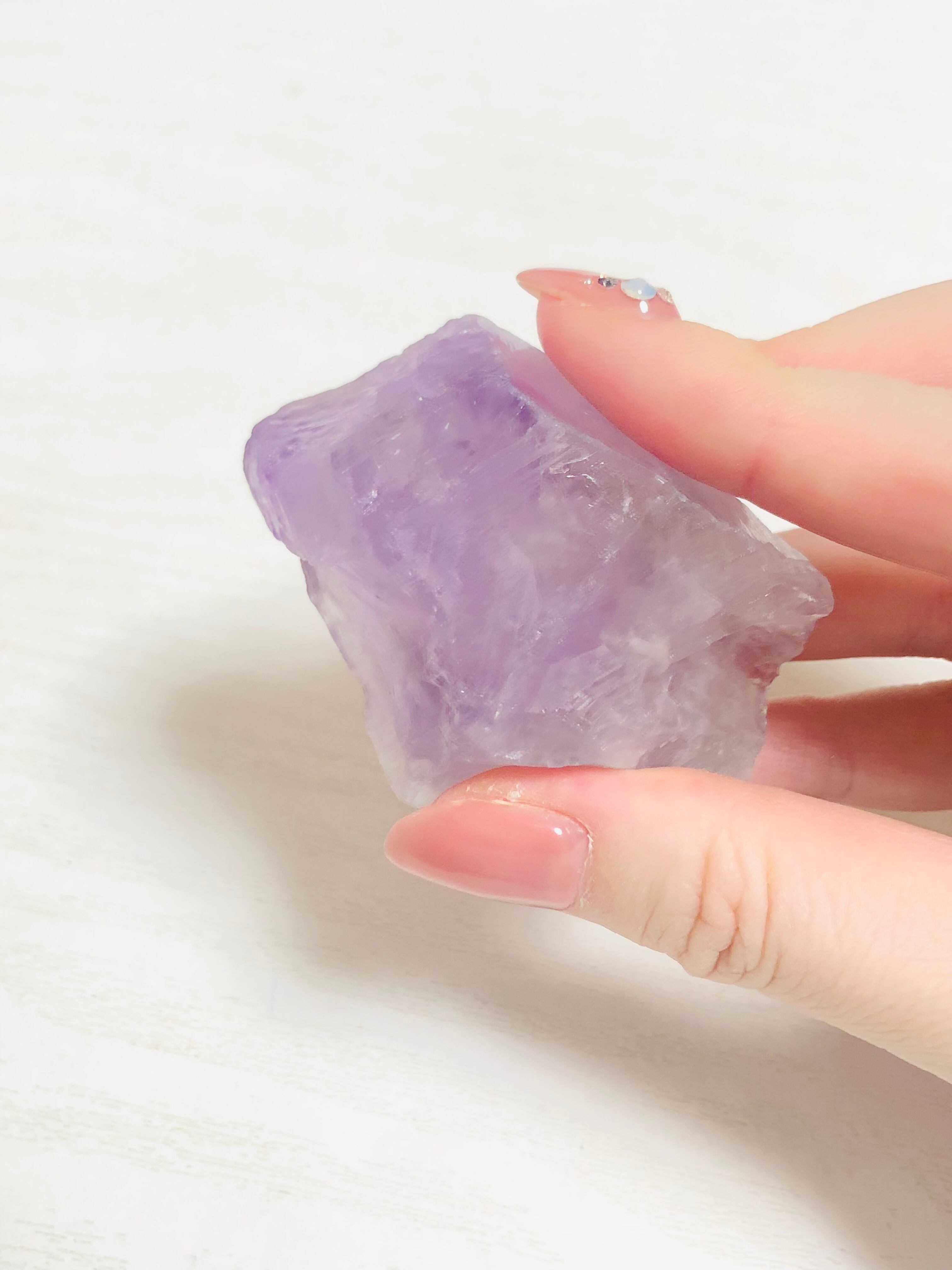 淡いラベンダーカラーがうっすらと入り、とても優しい雰囲気の原石です。