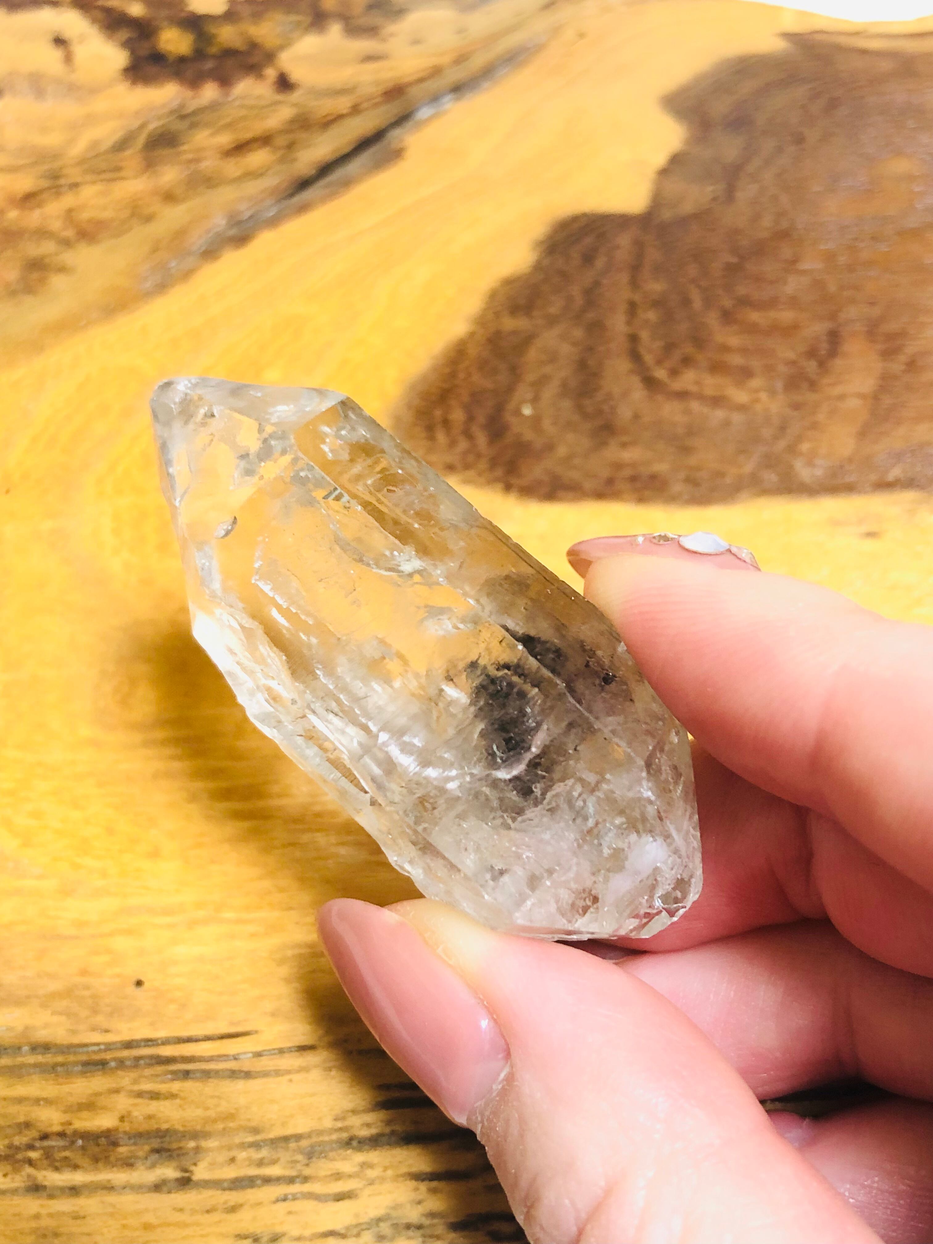 水晶の中に水が閉じ込められた、神秘的な水入りエレスチャル原石です。