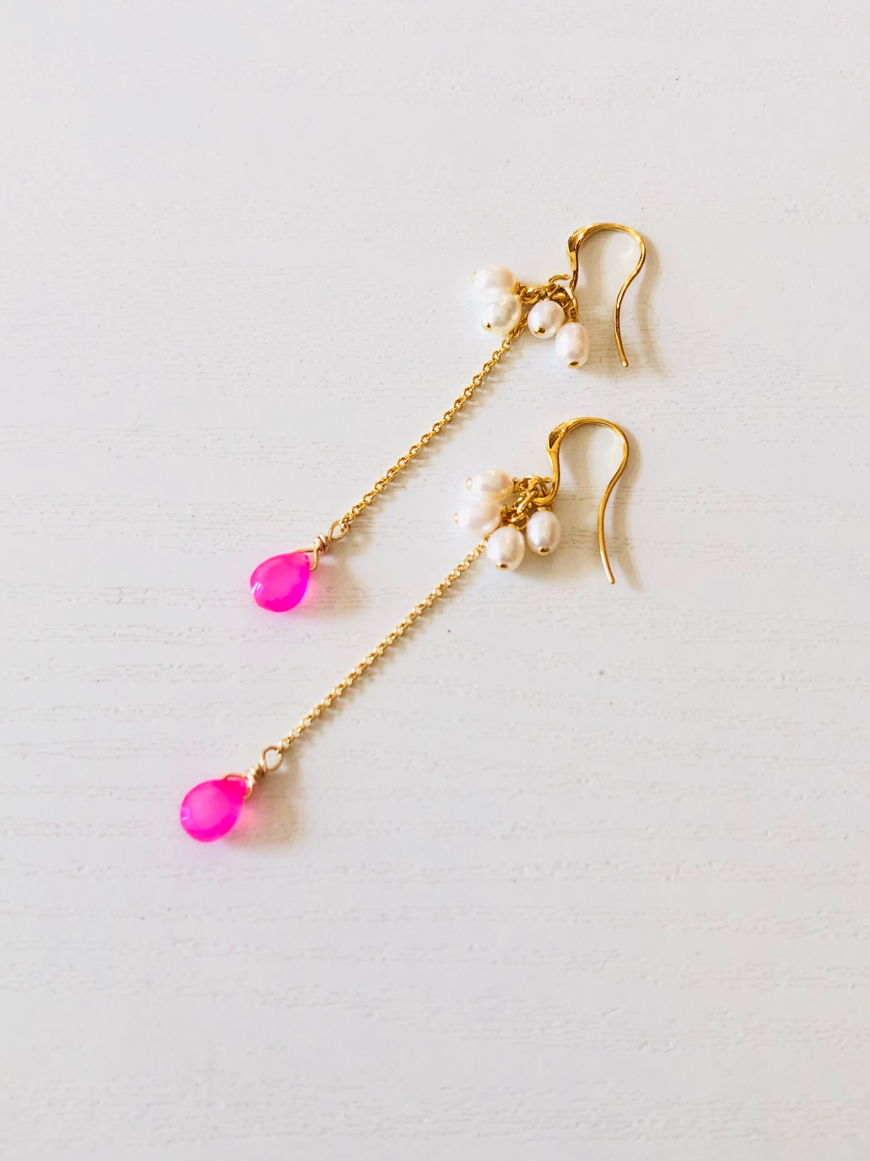 花雫✴︎ フューシャピンクカルセドニー&淡水パールのゆらゆらピアス