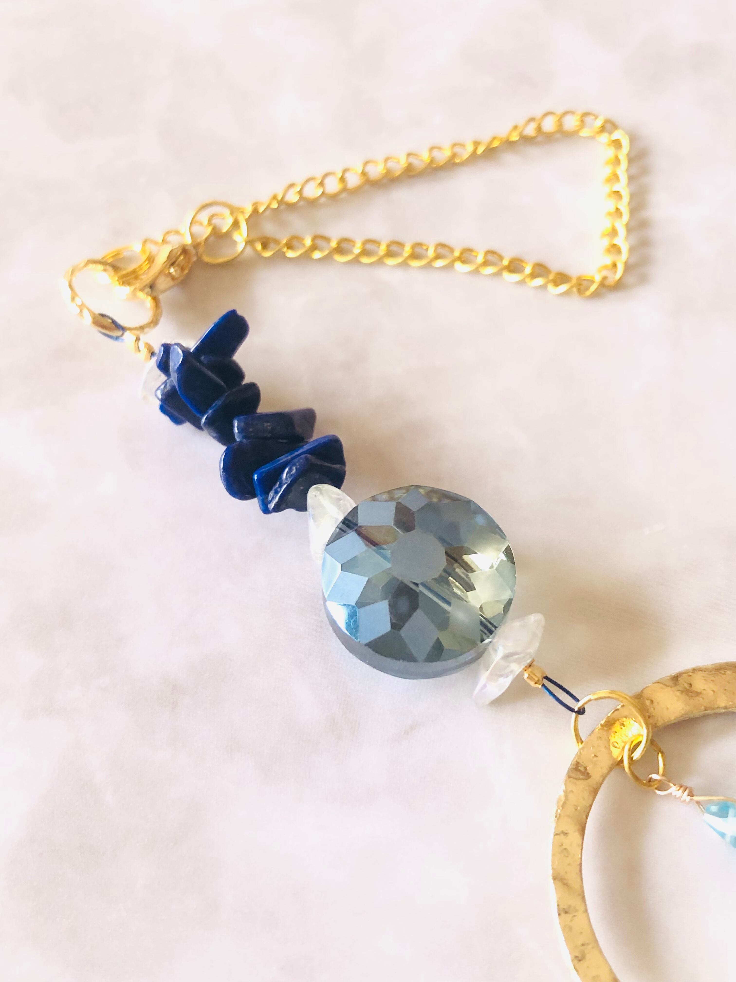 こちらは、ラピスラズリと水晶のさざれ石を使用しています。