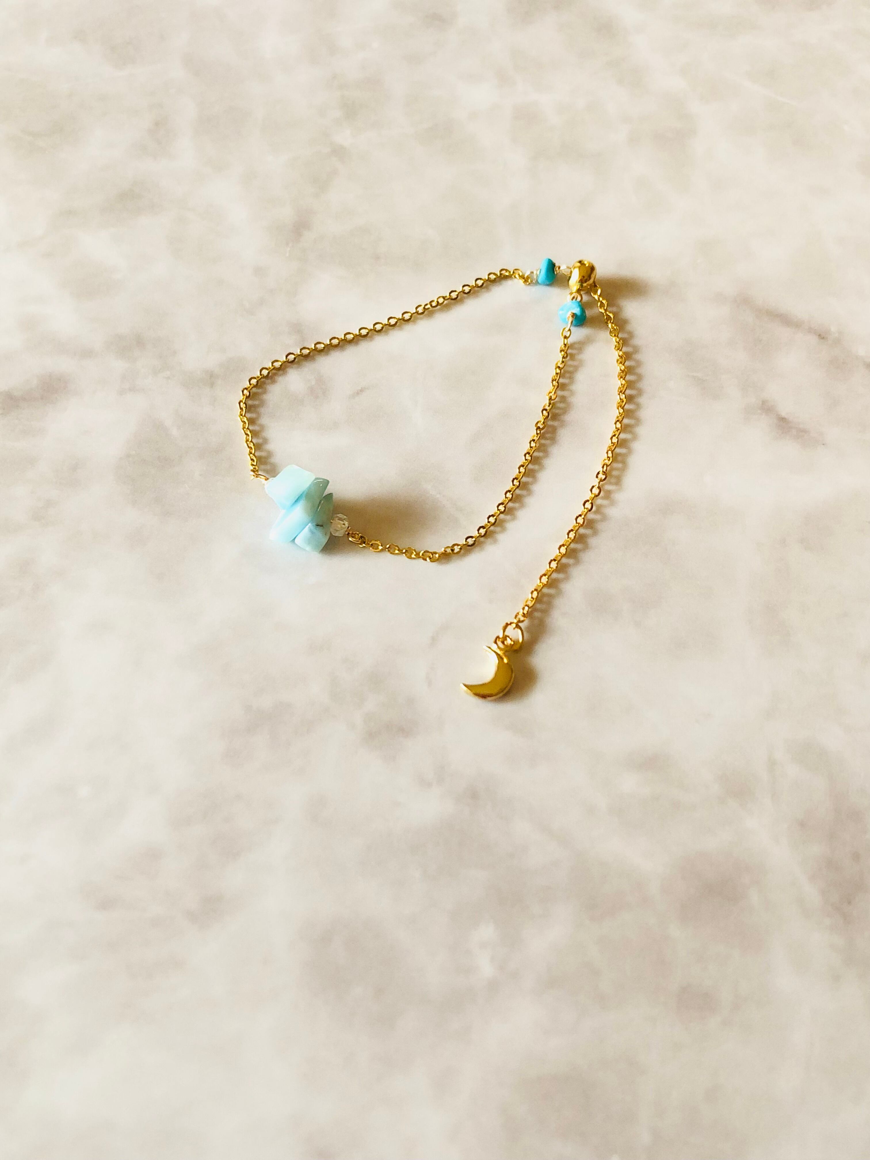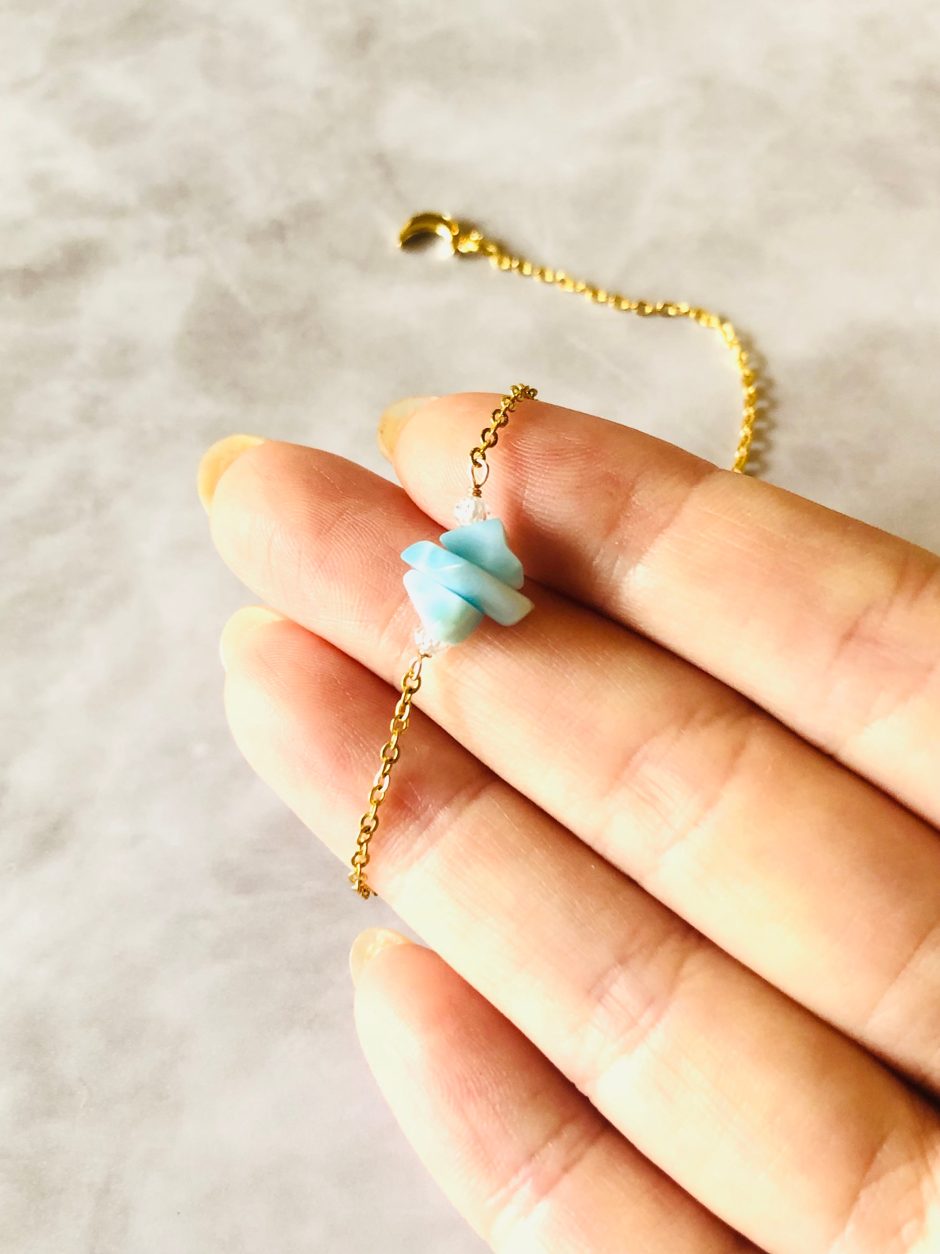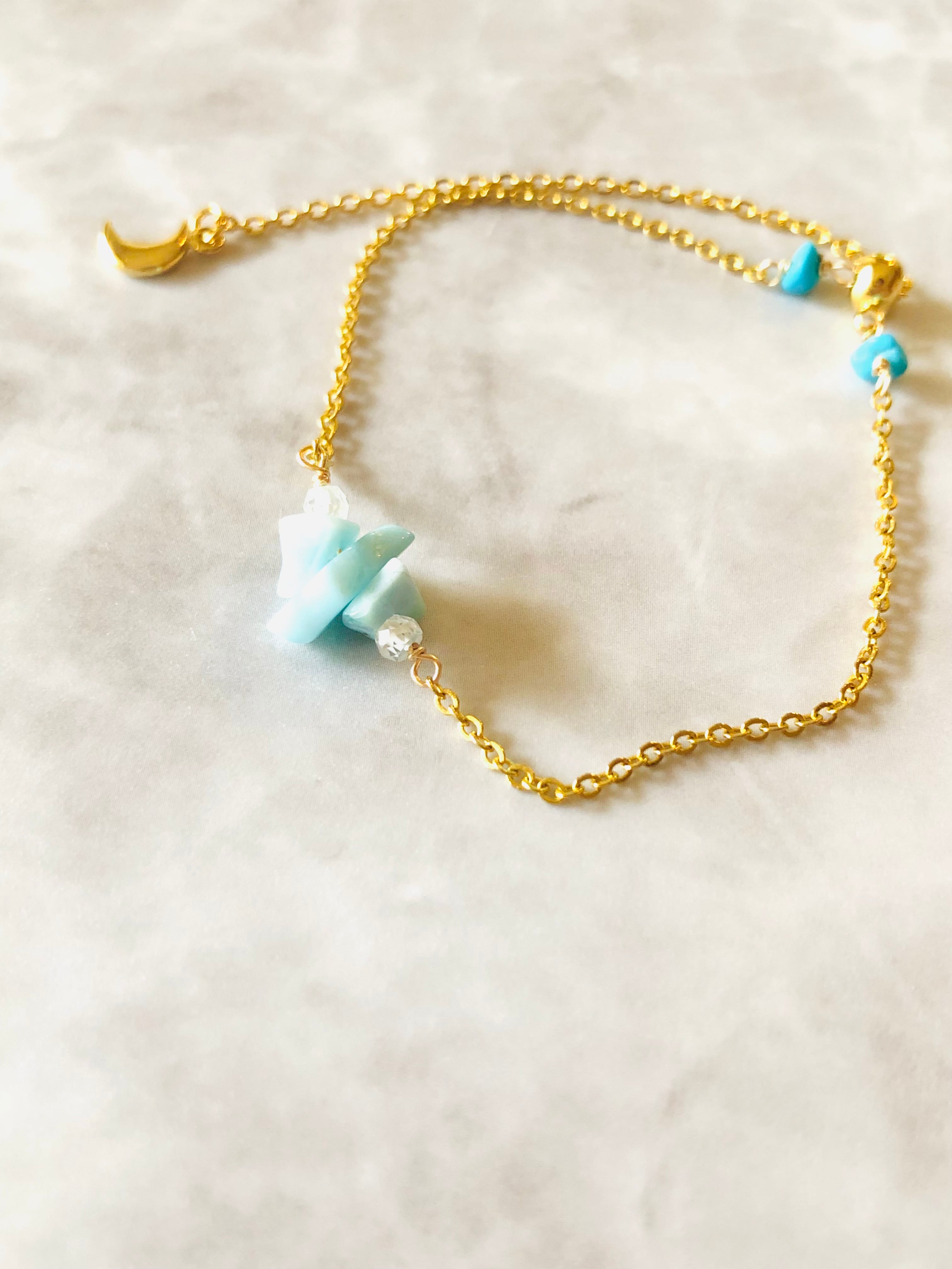 ラリマーとスリーピングビューティーターコイズのチェーンブレスです。