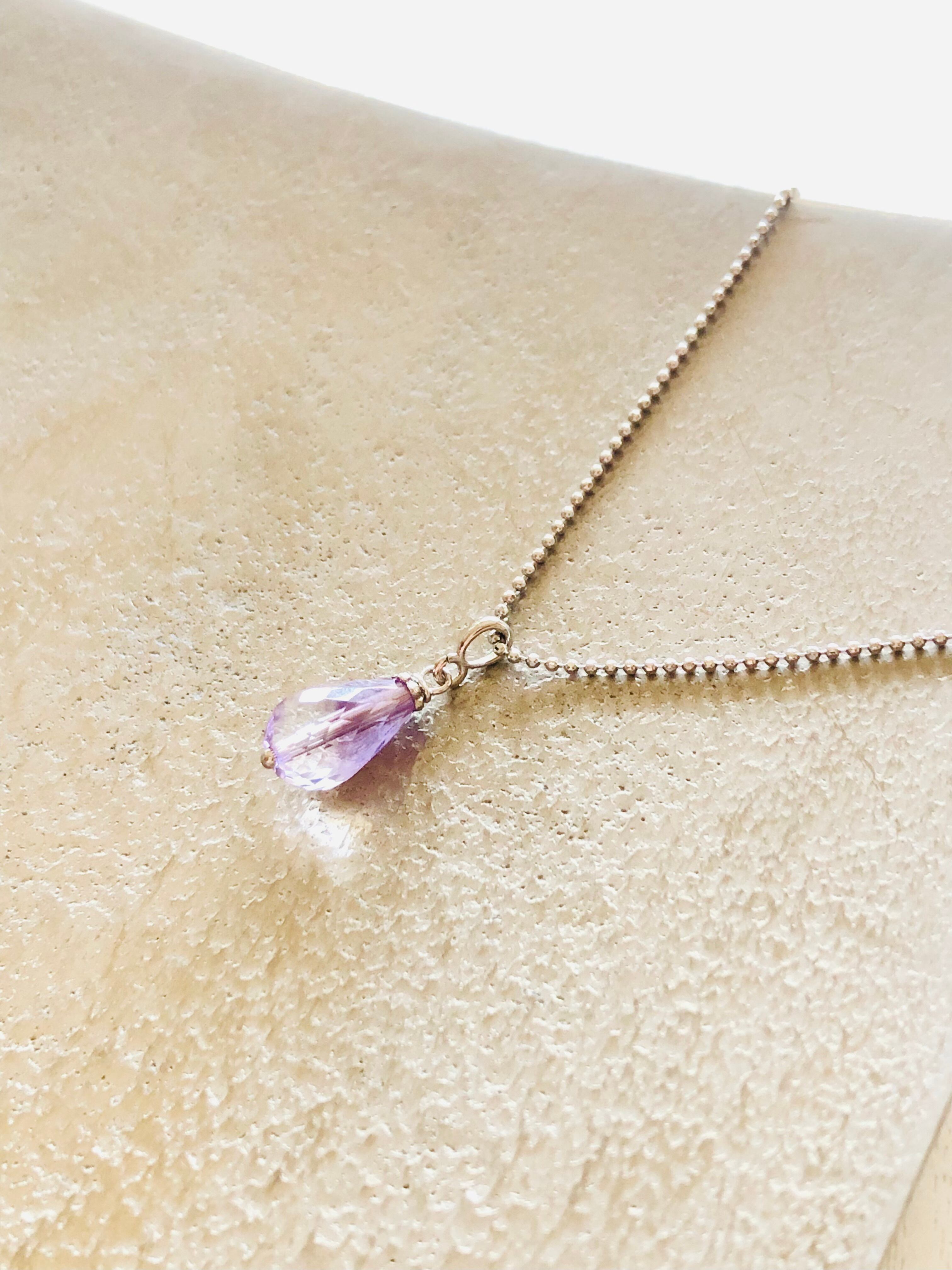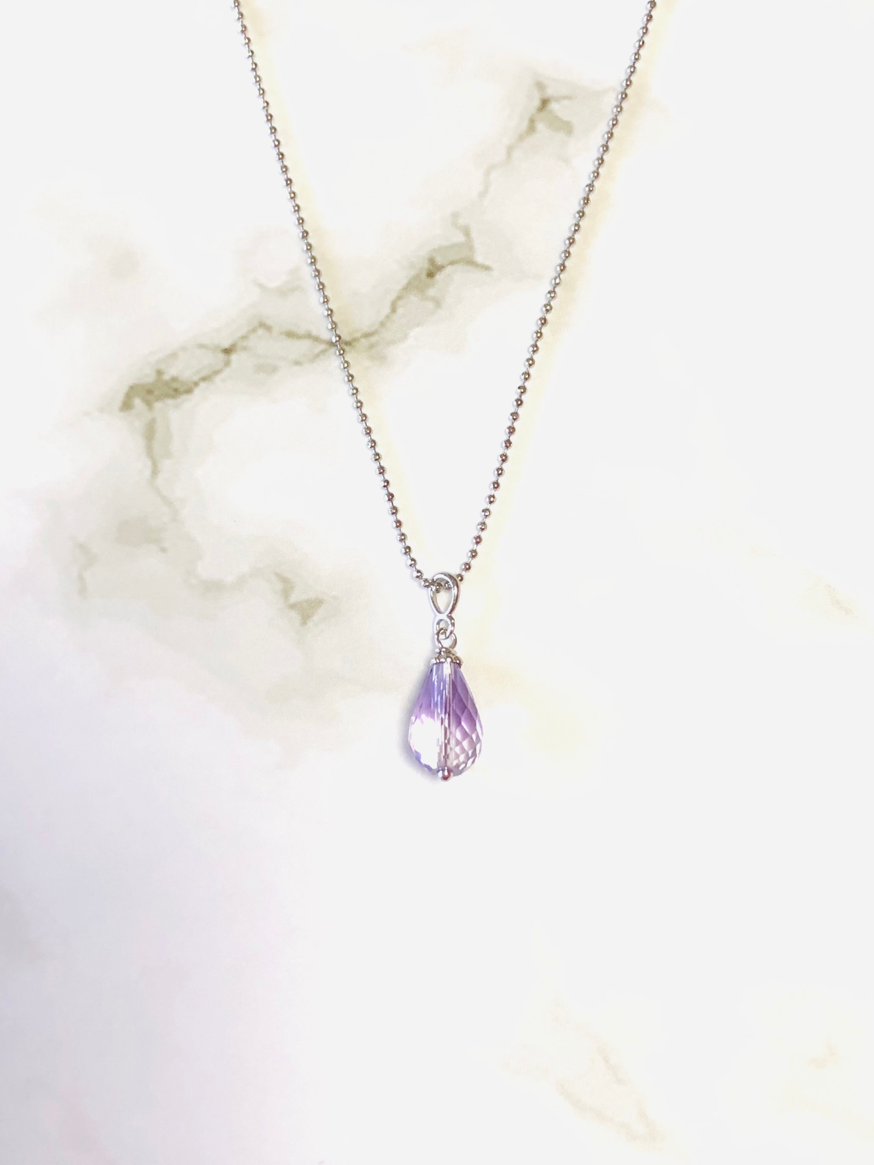 宝石質ラベンダーアメジストのドロップ型ネックレスです。