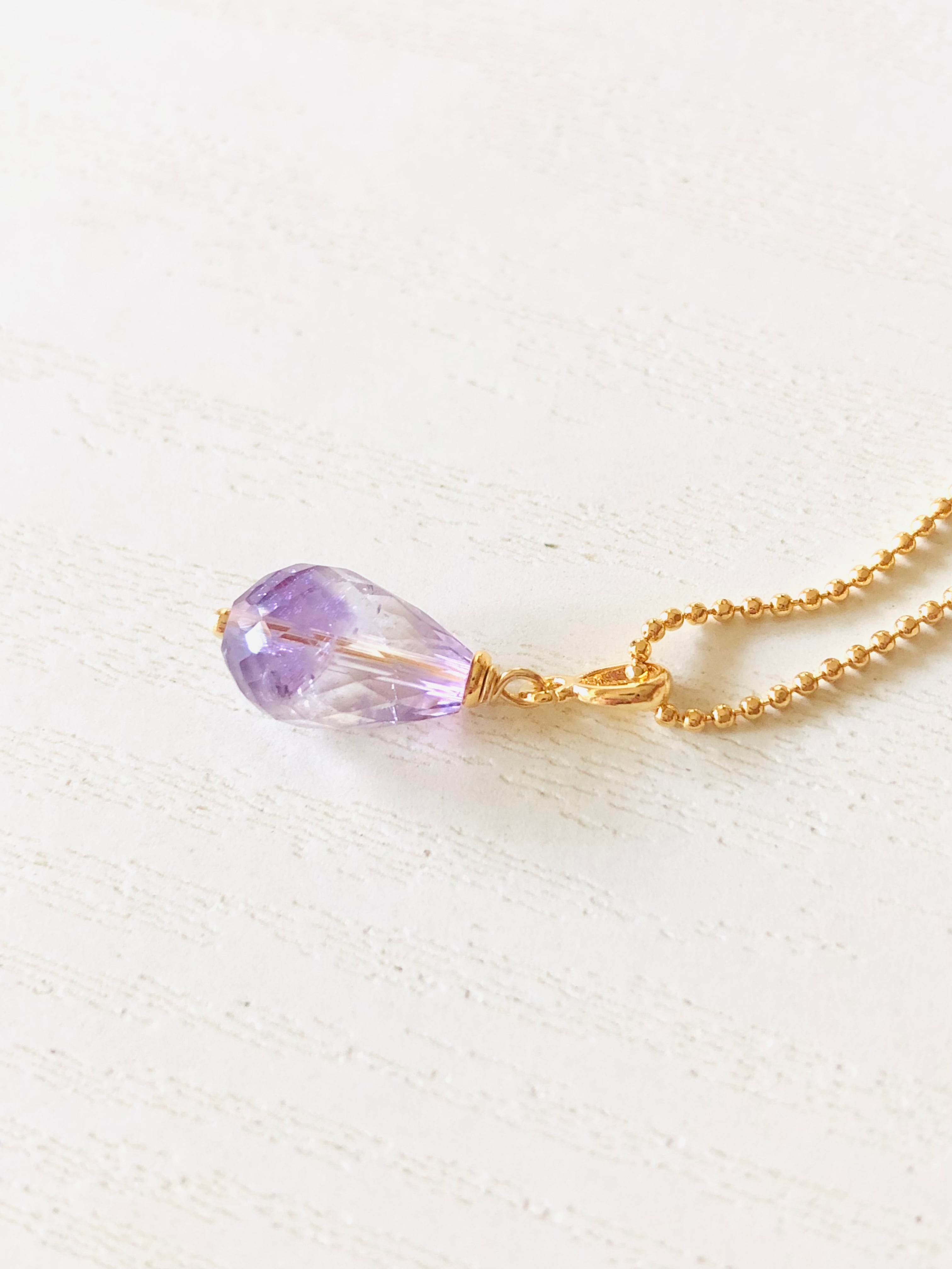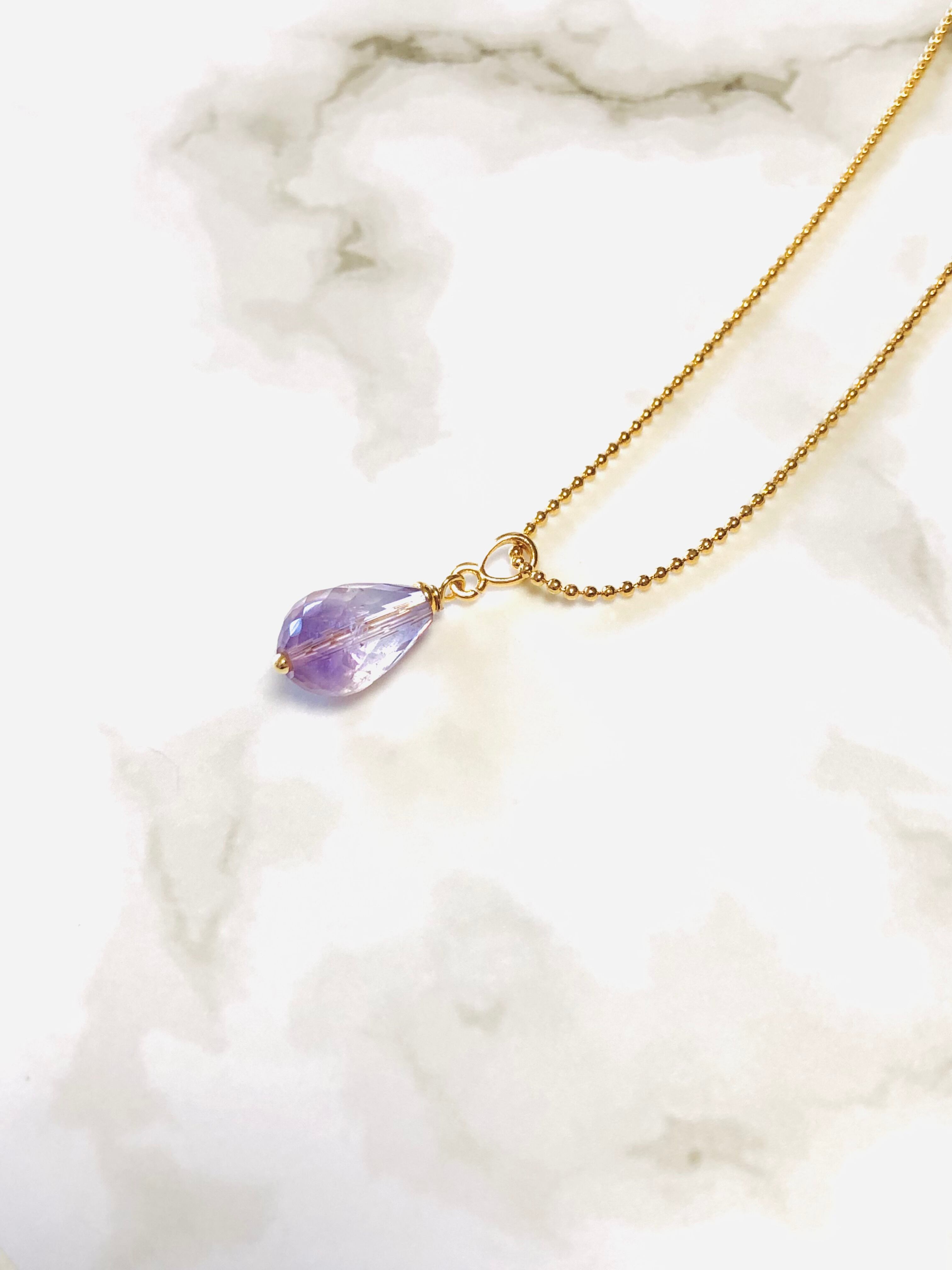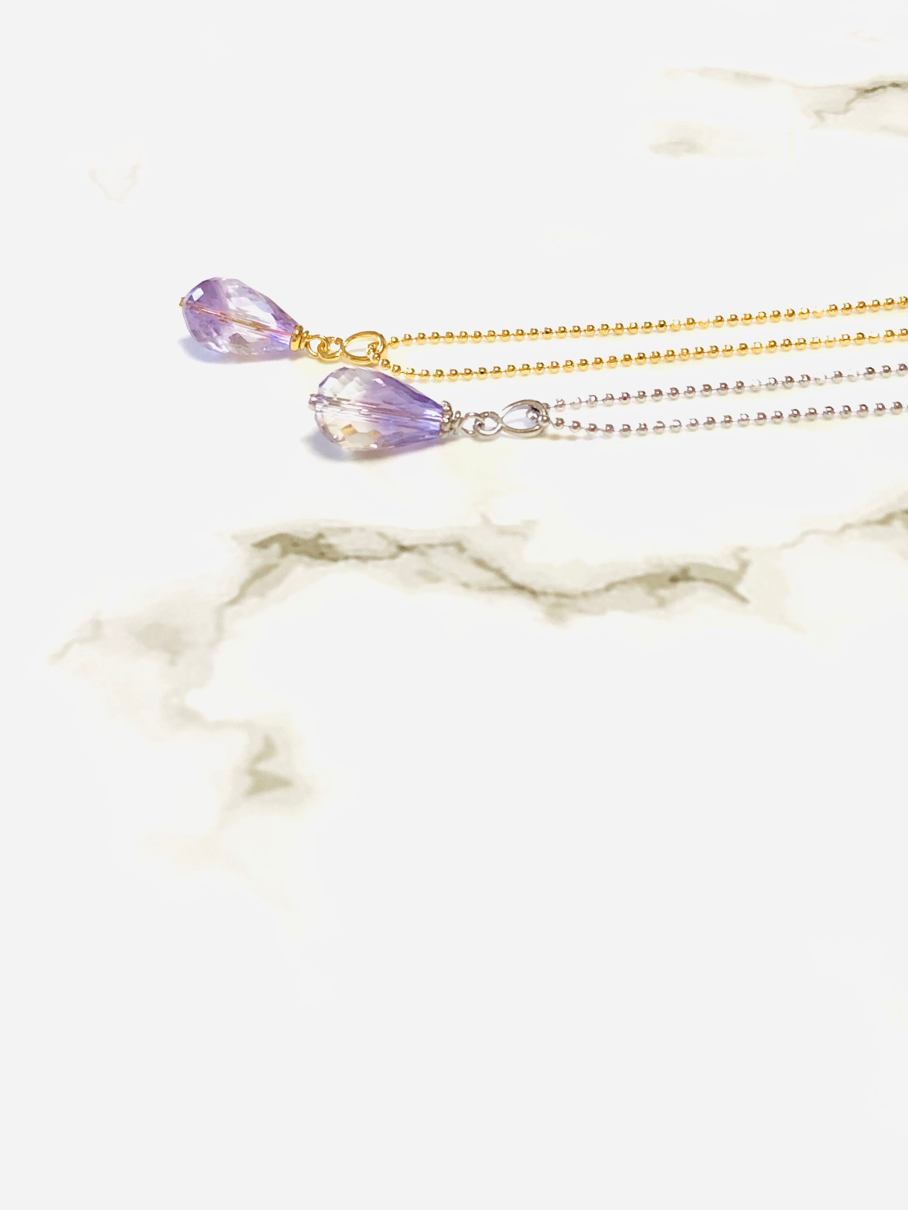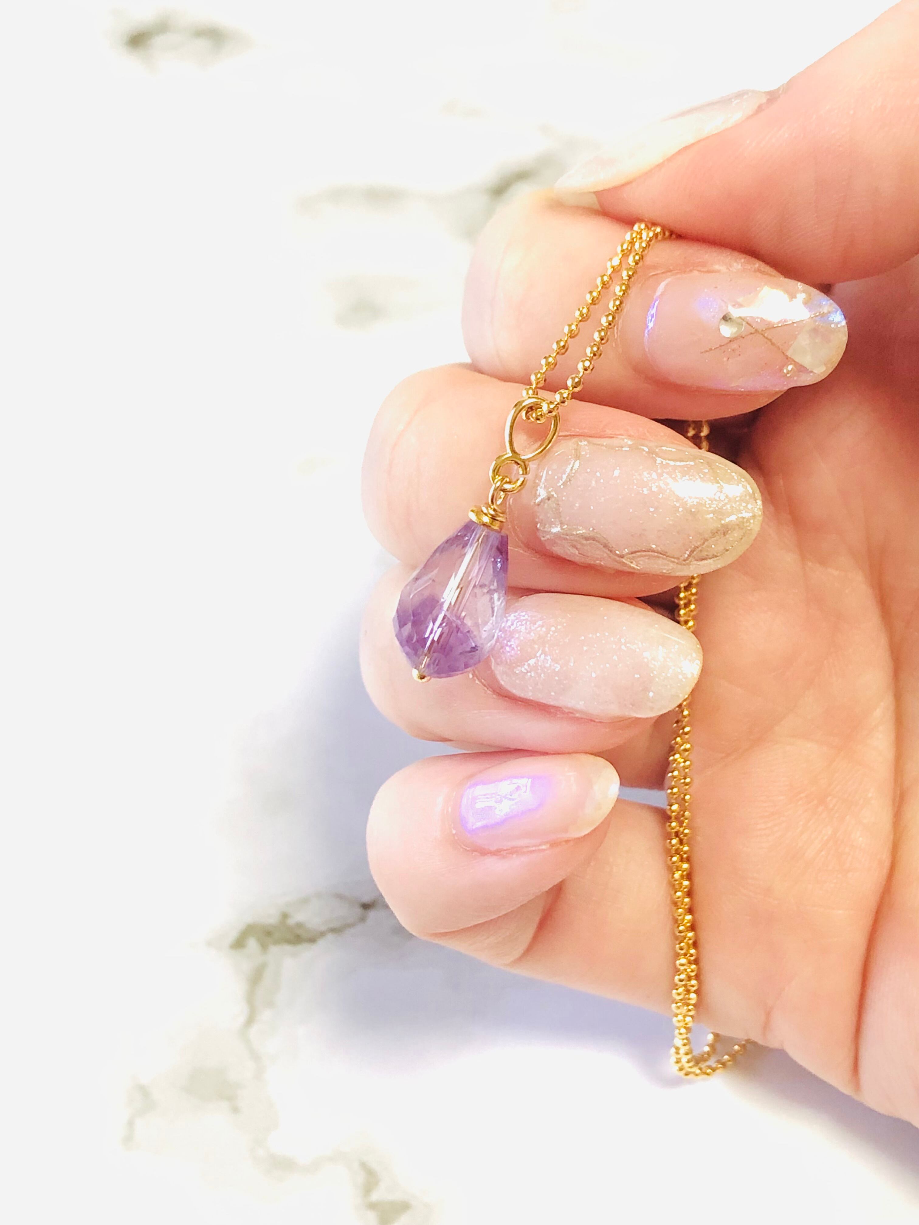 宝石質ラベンダーアメジストのドロップ型ネックレスです。
