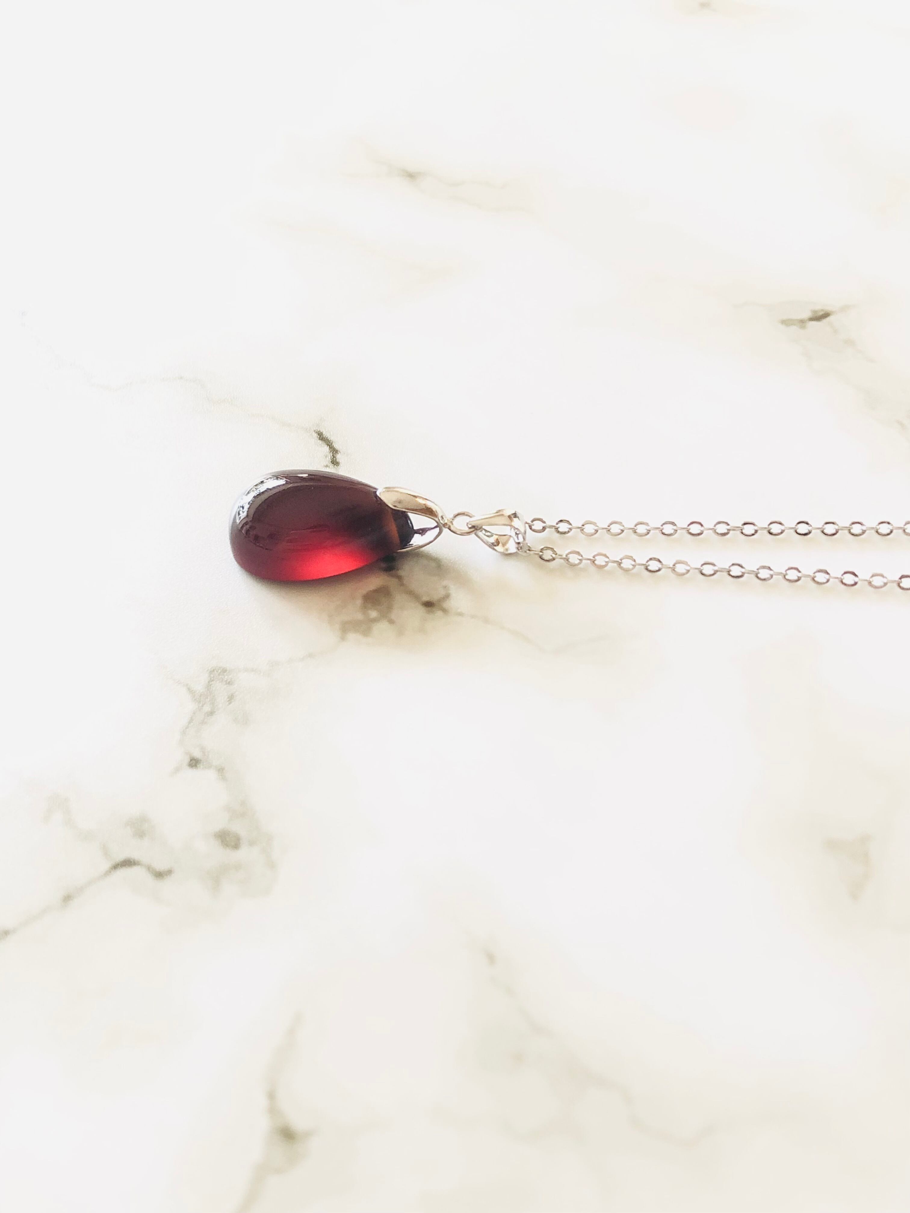 置いた状態で横から見ると濃いレッドに見えますが、光にかざすとオレンジレッドの落ち着いた色味です。