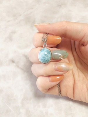 こちらは、ラリマーらしい波模様が入ったタイプで柔らかで淡いブルーの海が広がっています。