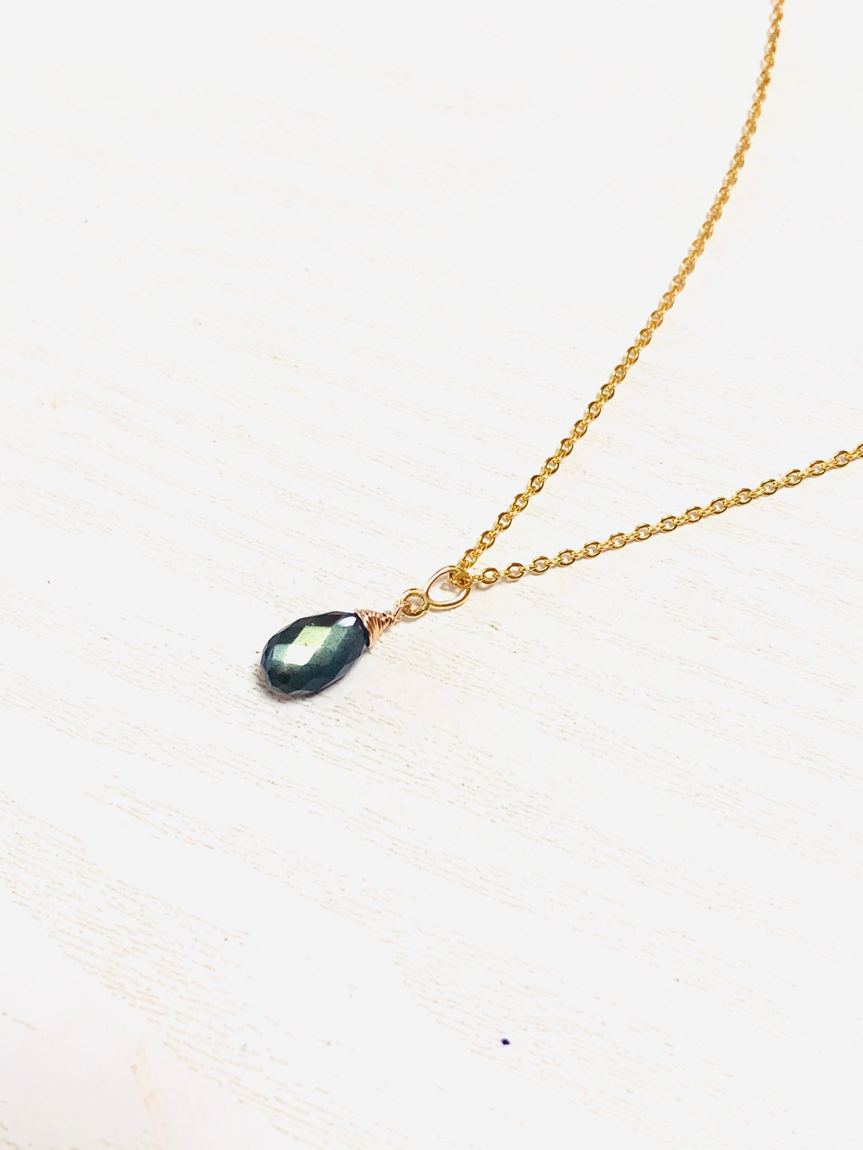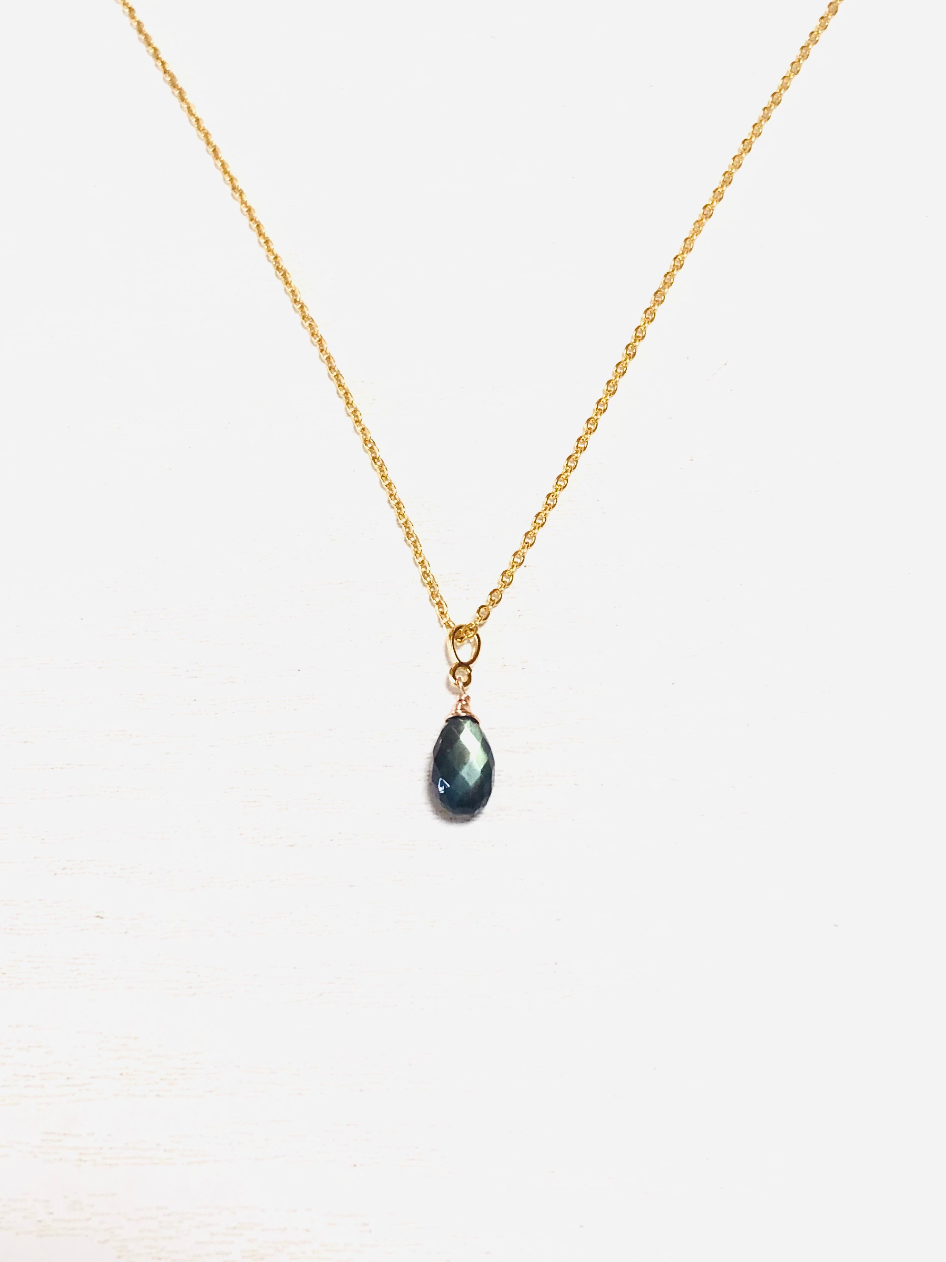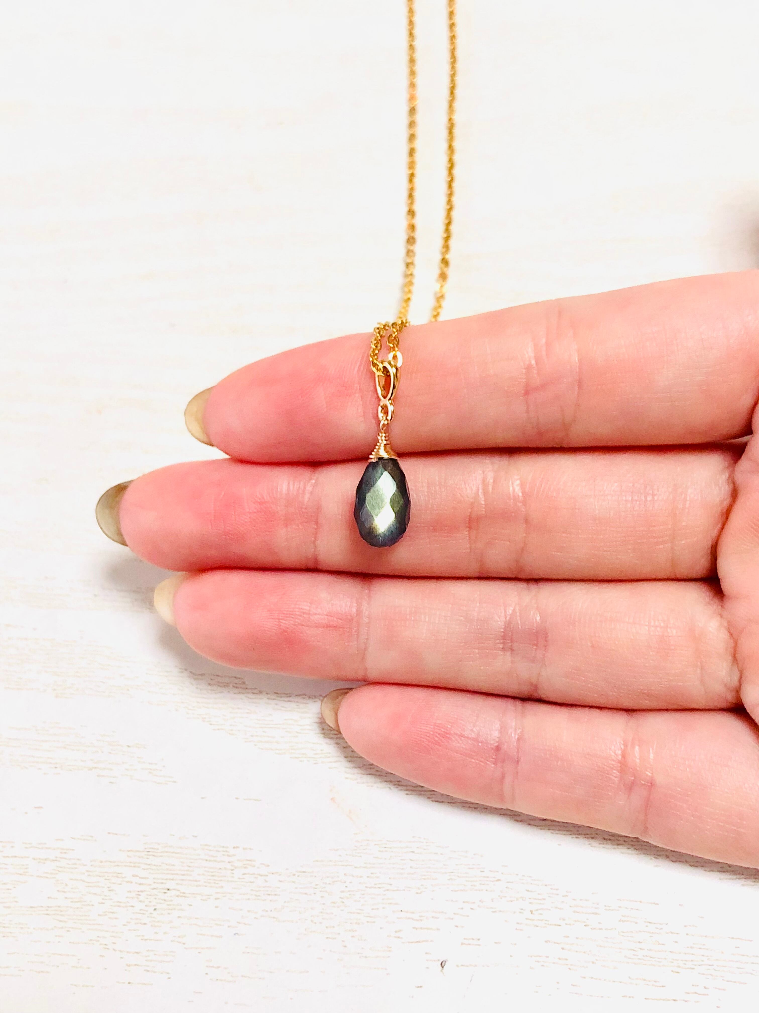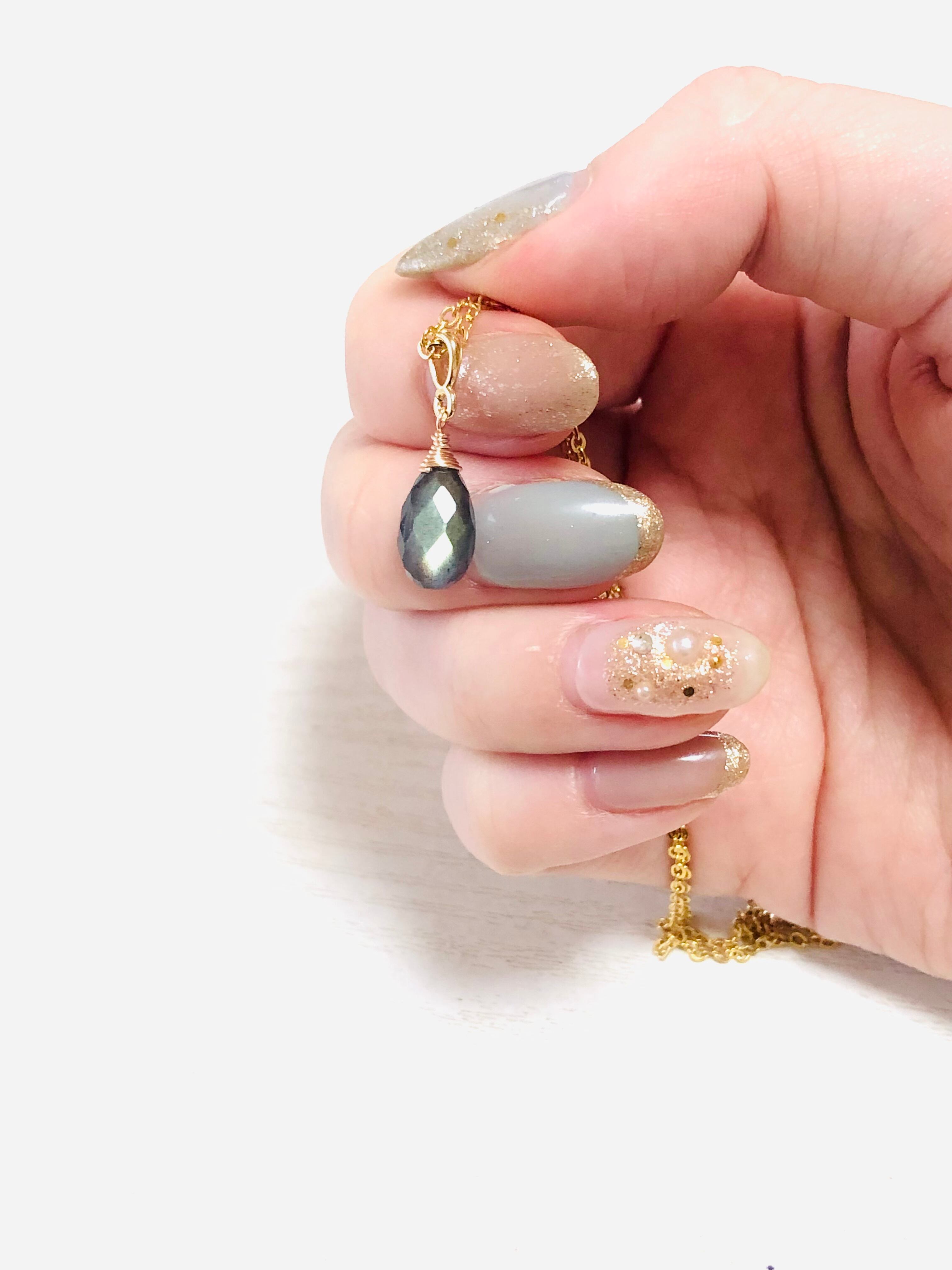 全面カットが施されたコロコロとしたドロップ型です。ベースが黒いので淡いグリーンのシラーがシックでカッコいい粒です!