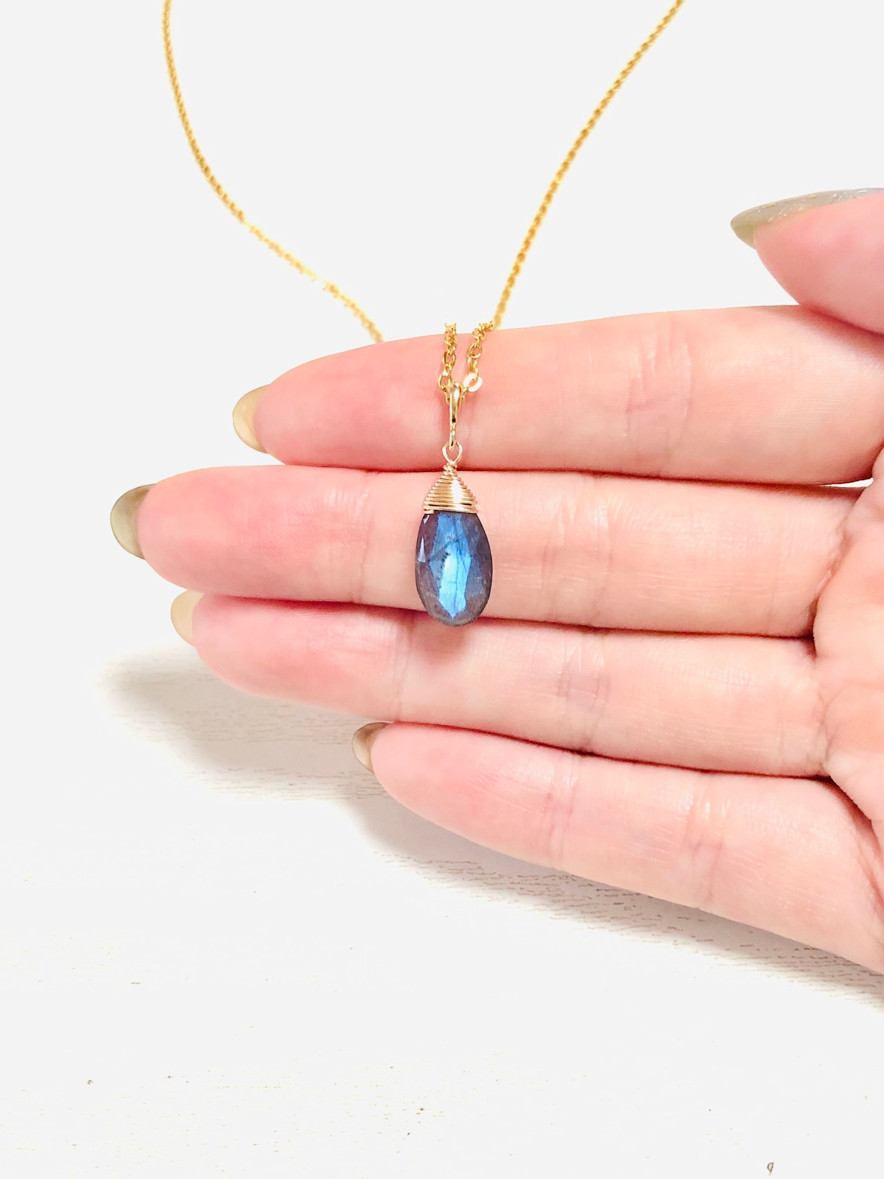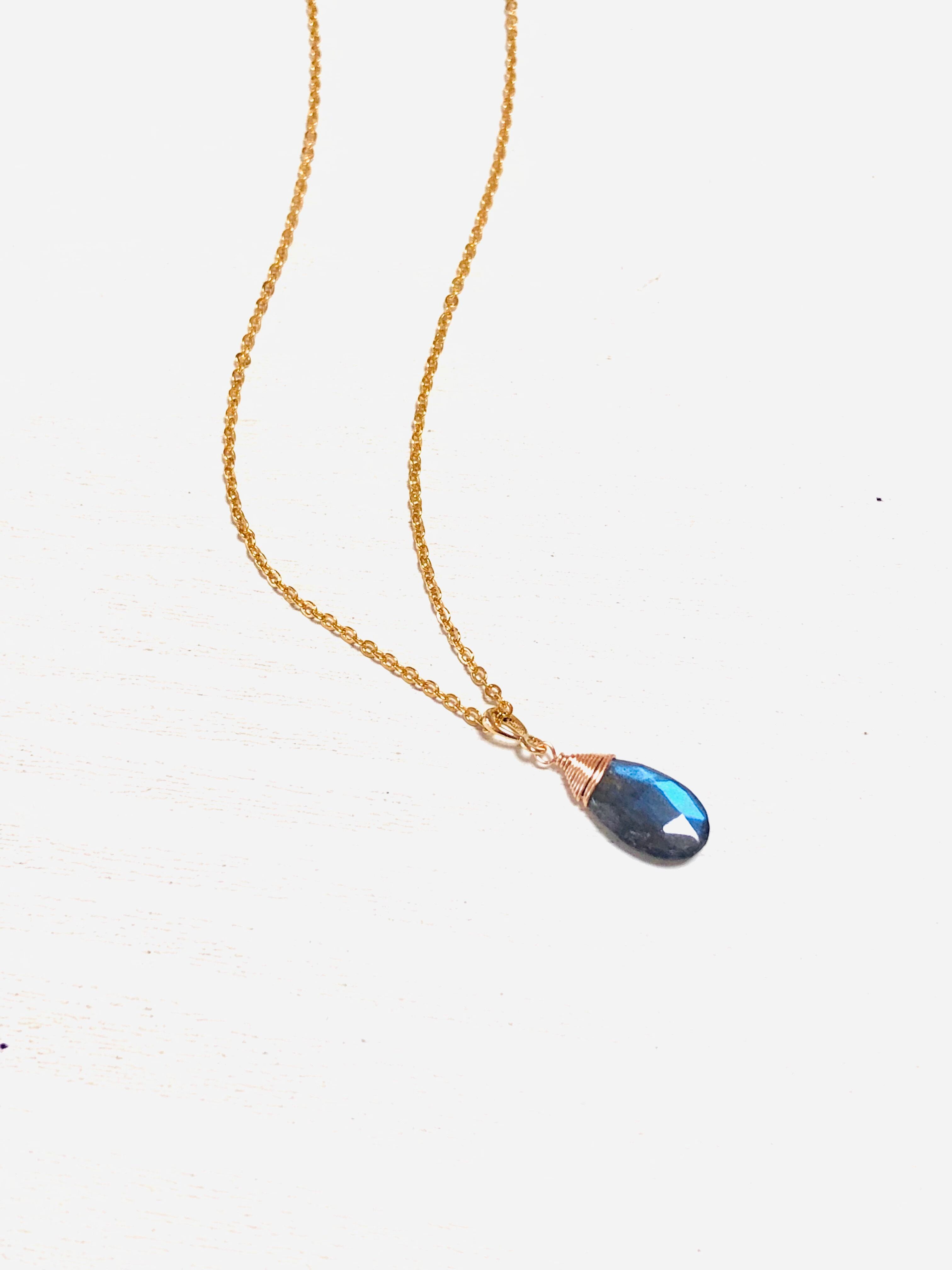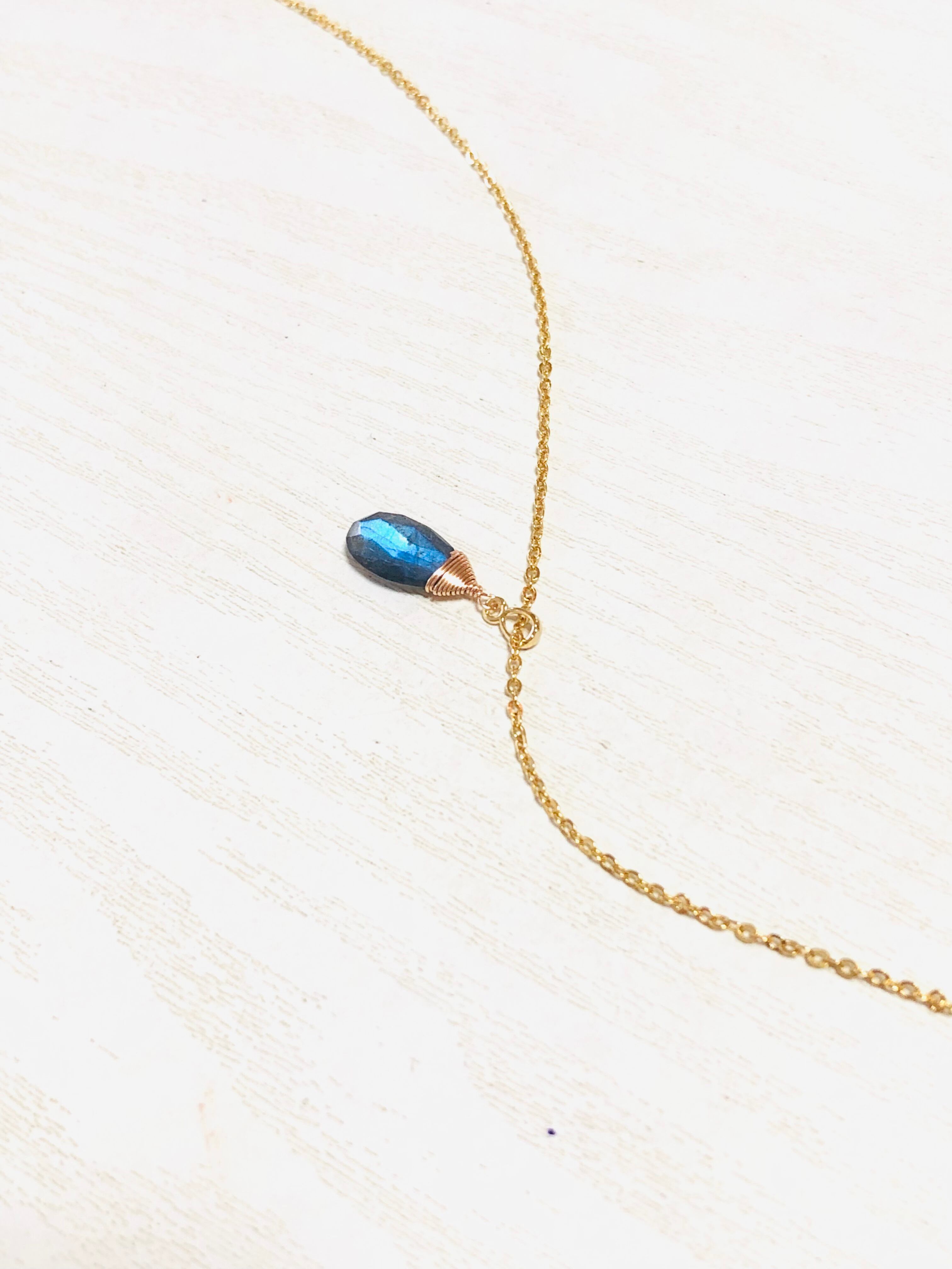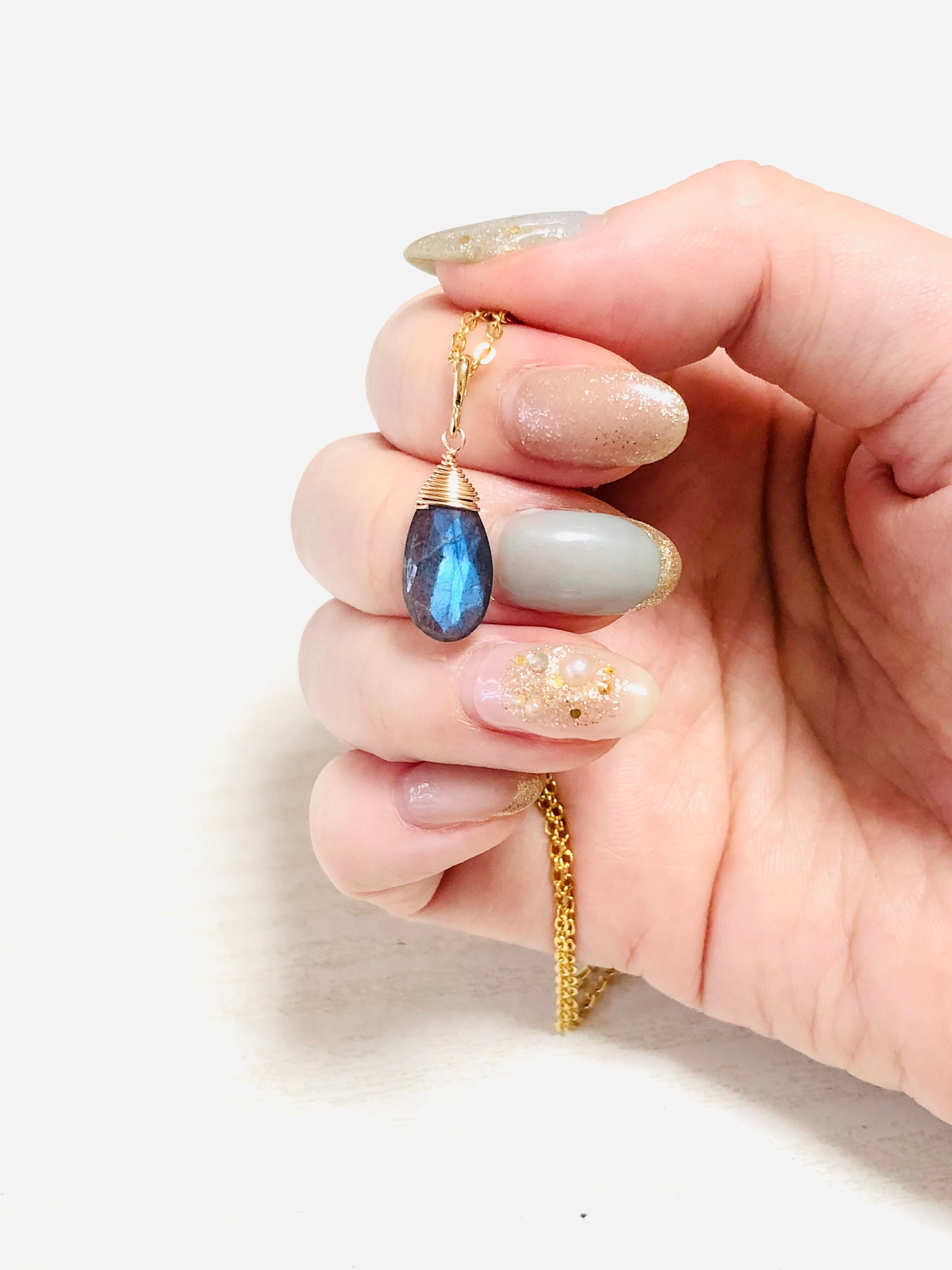 人気ブルーシラー!ラブラドライトの雫ネックレス