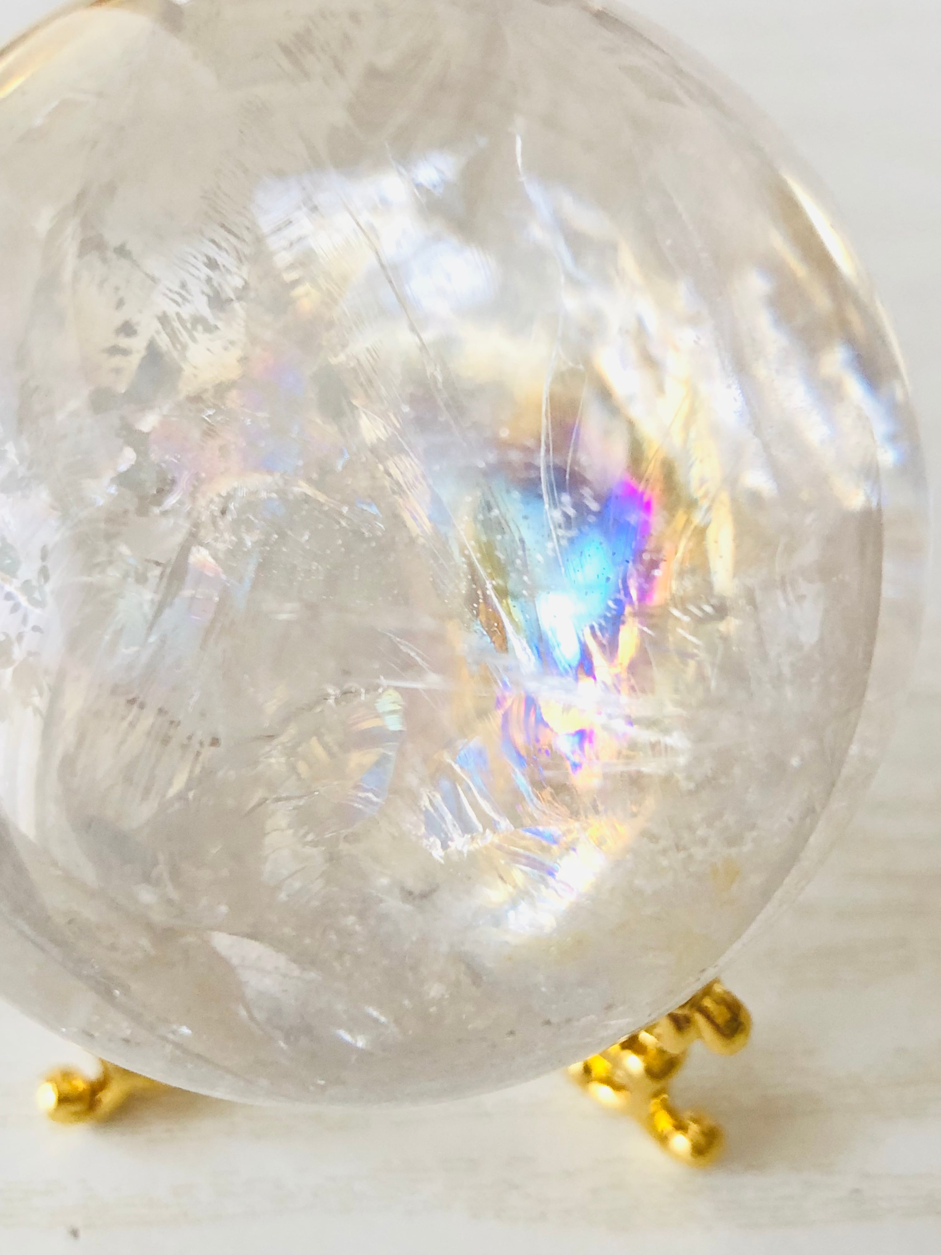 こちらは、中央に入ったクラック(天然の亀裂)一面に淡くて美しい虹が入っています。