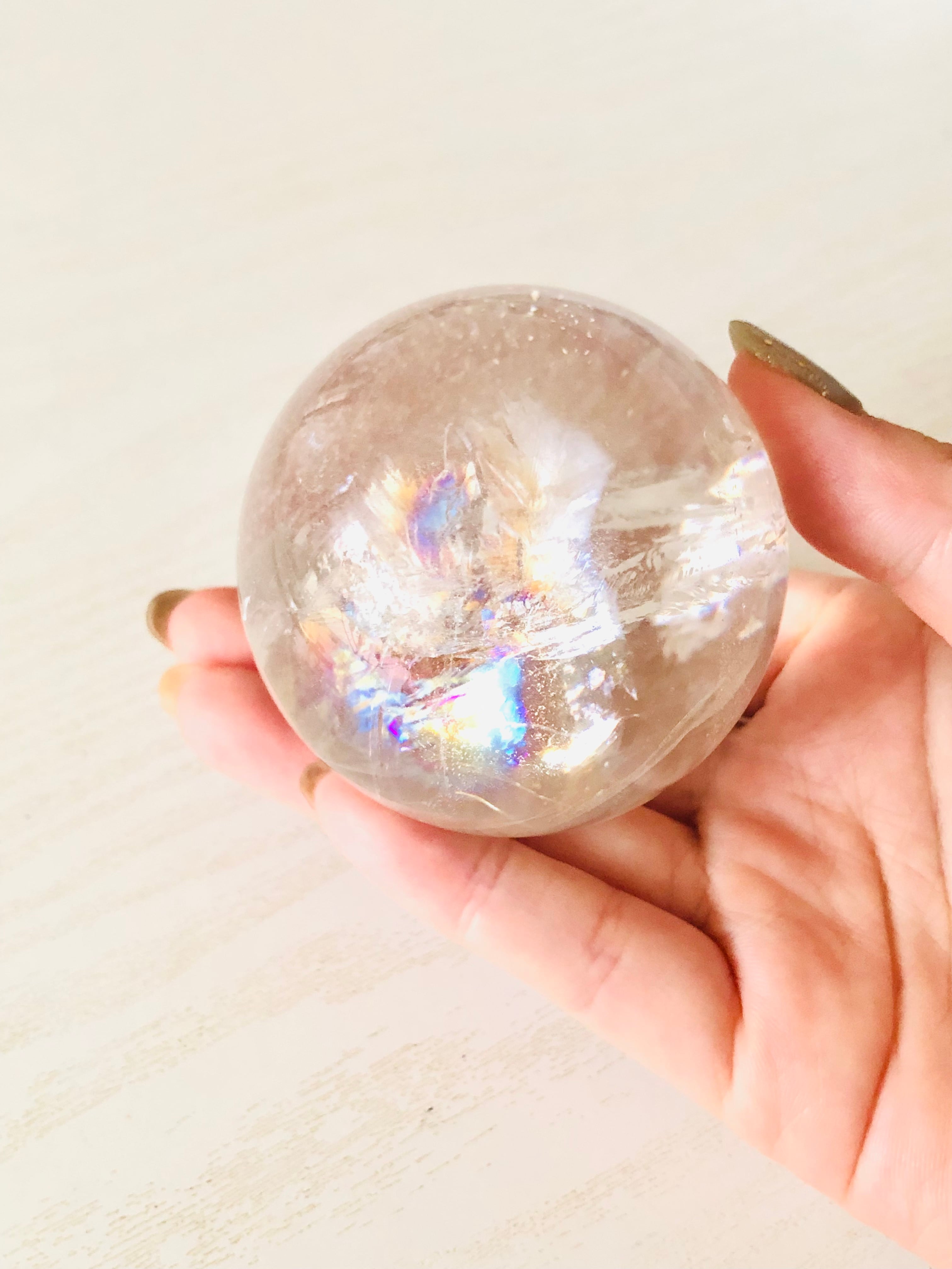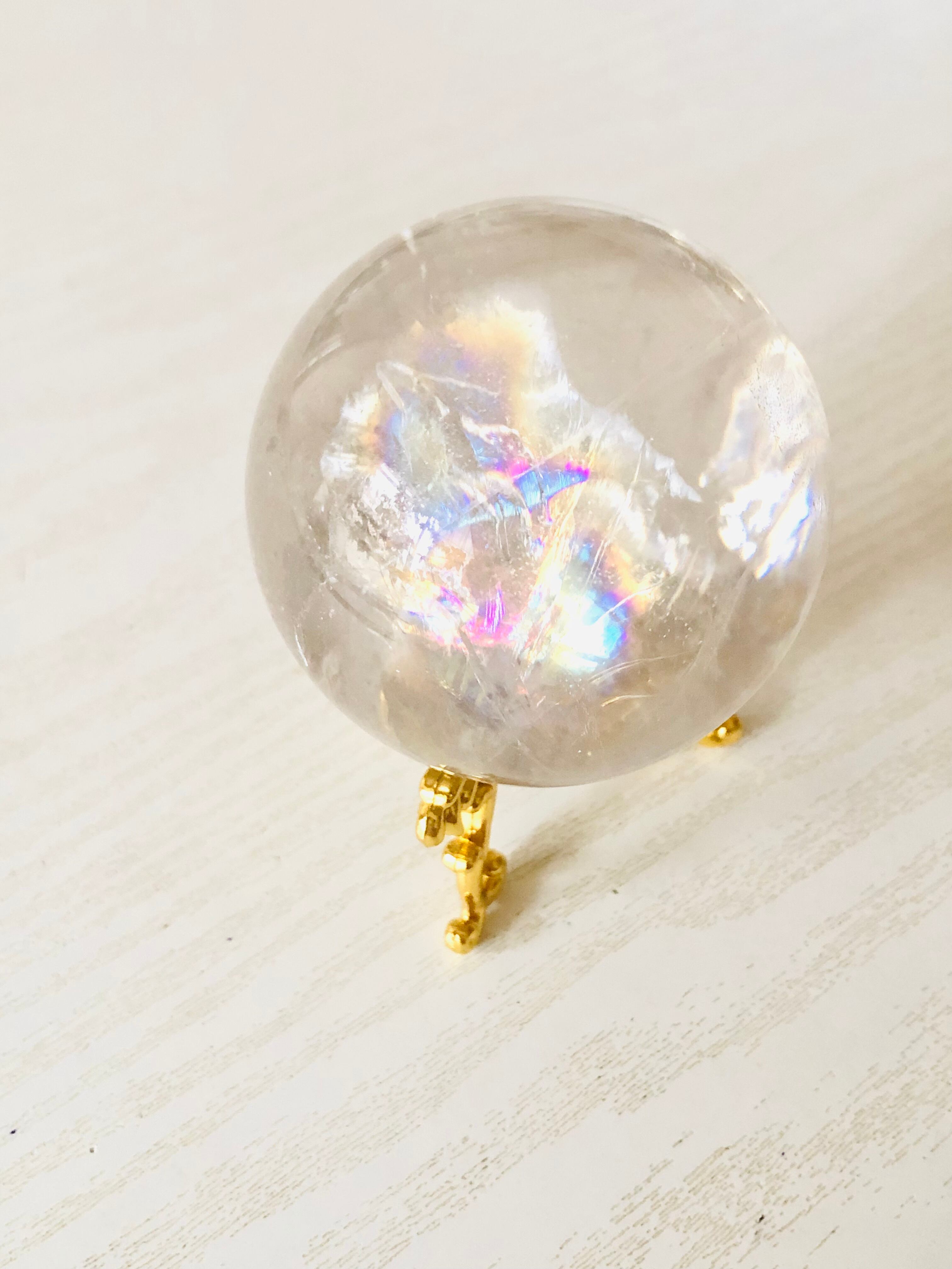 幸せを呼ぶ!虹入り水晶丸玉(62mm)