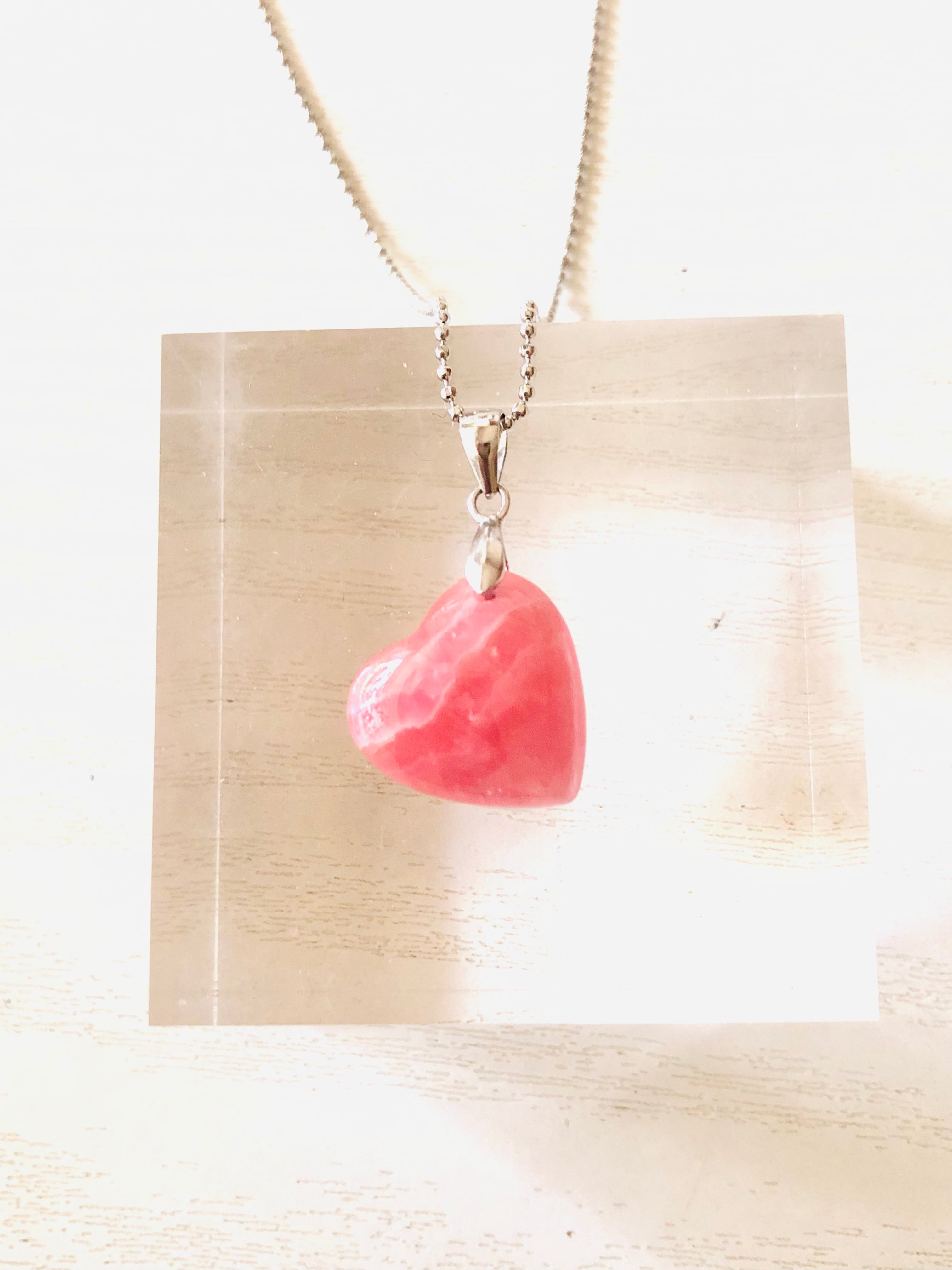 可愛らしいハート型のインカローズ(ロードクロサイト)のネックレスです。