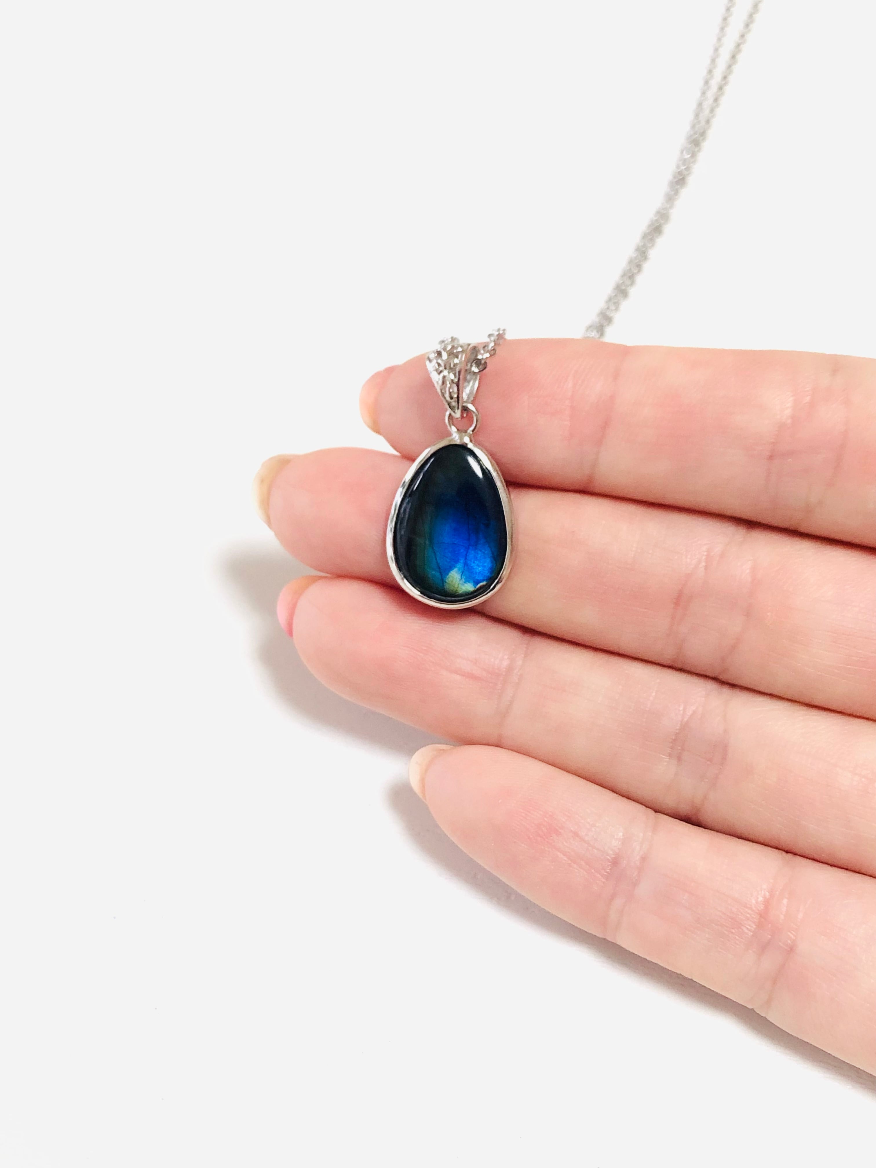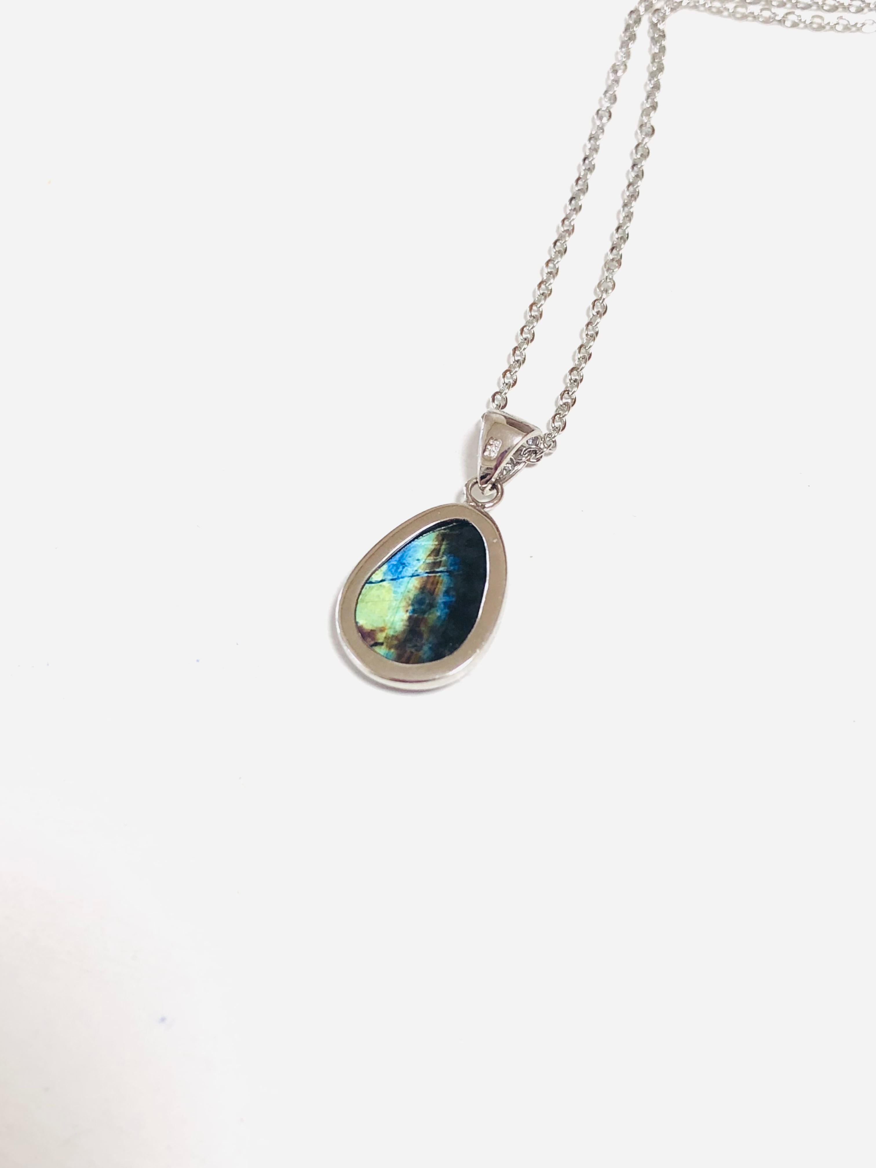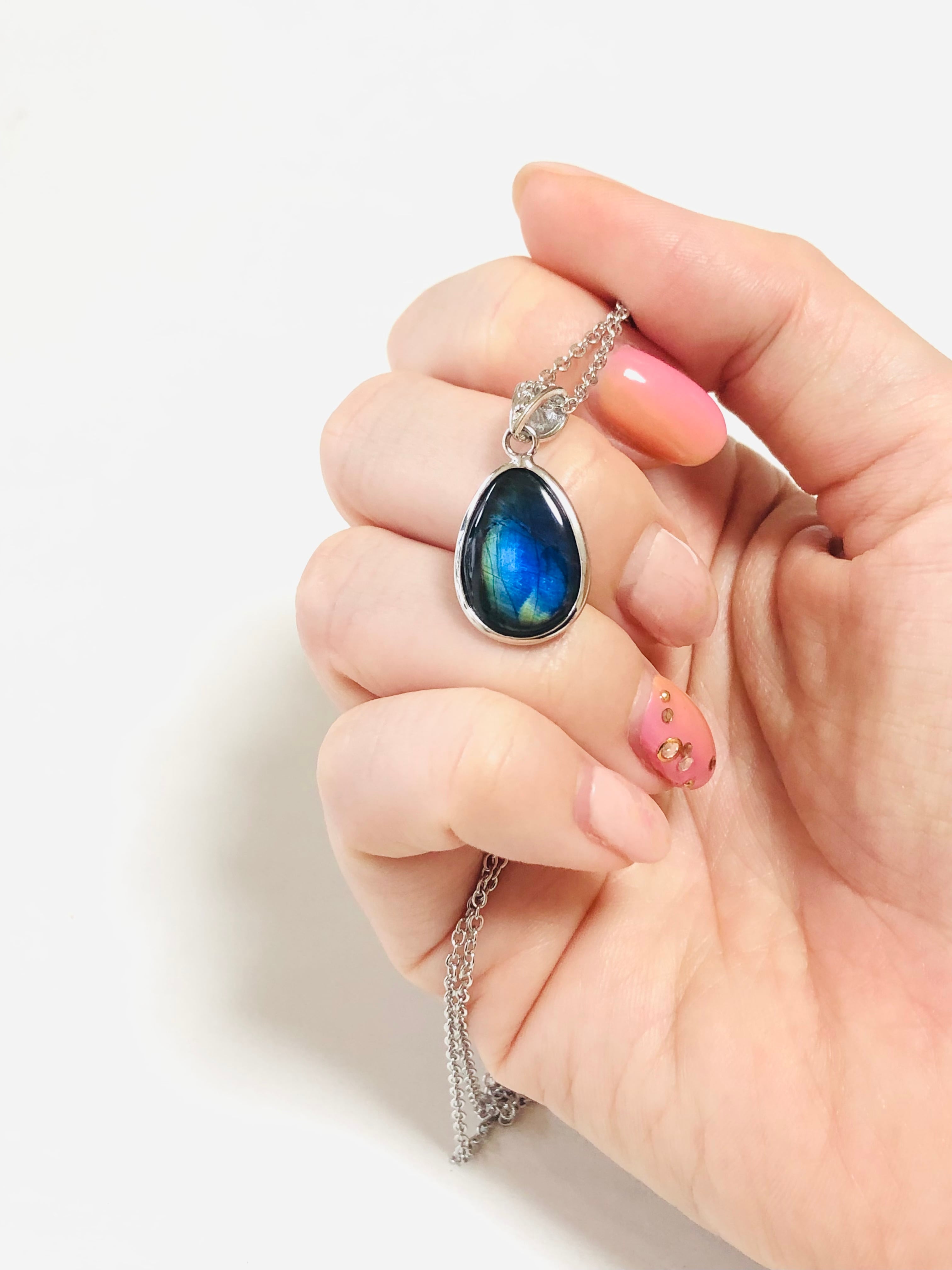 美ブルー!スペクトロライト(ブラックラブラドライト)のネックレス
