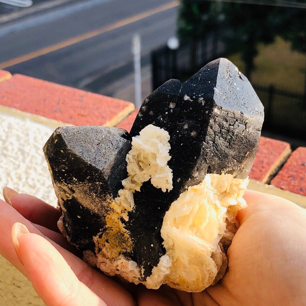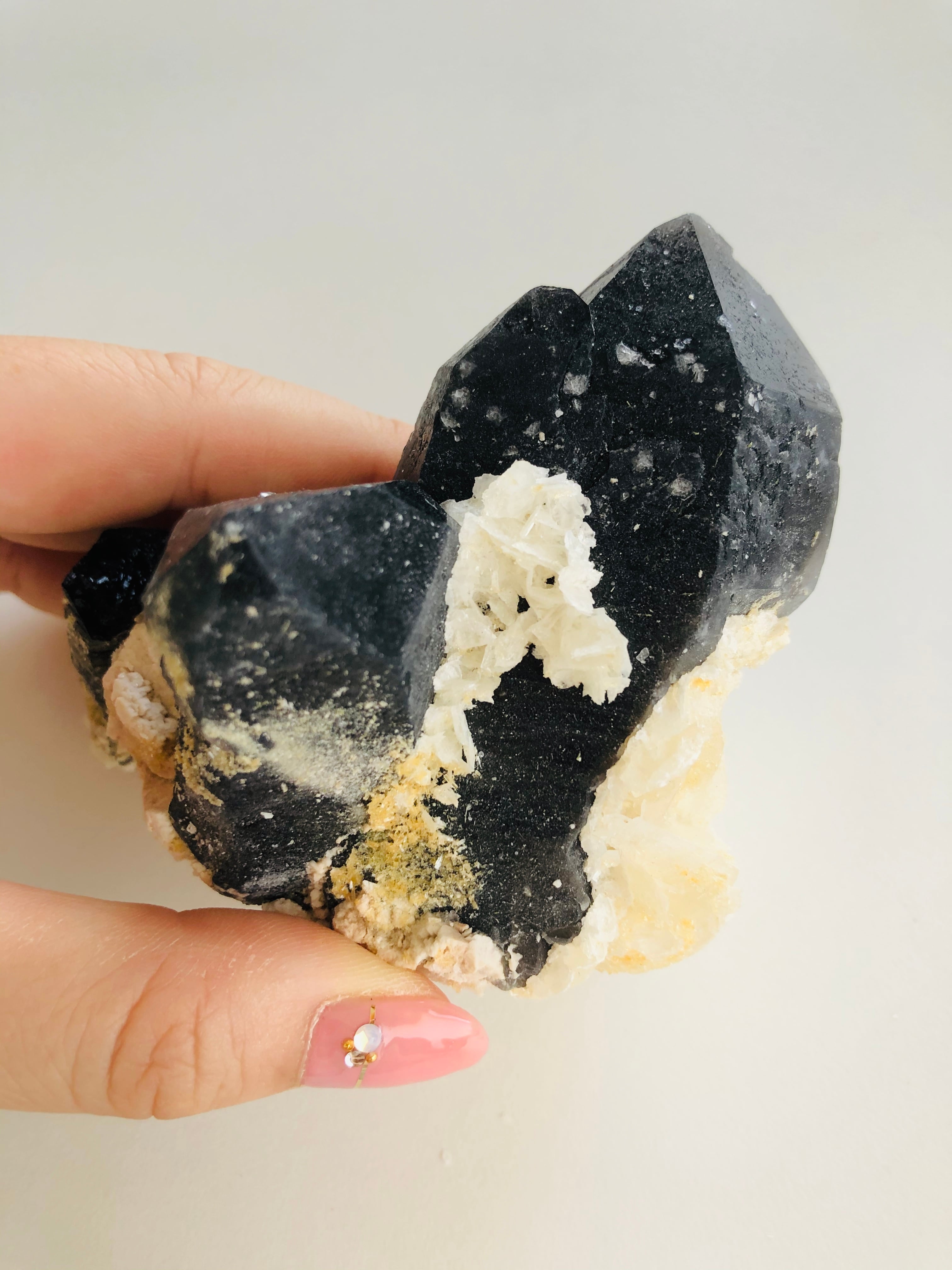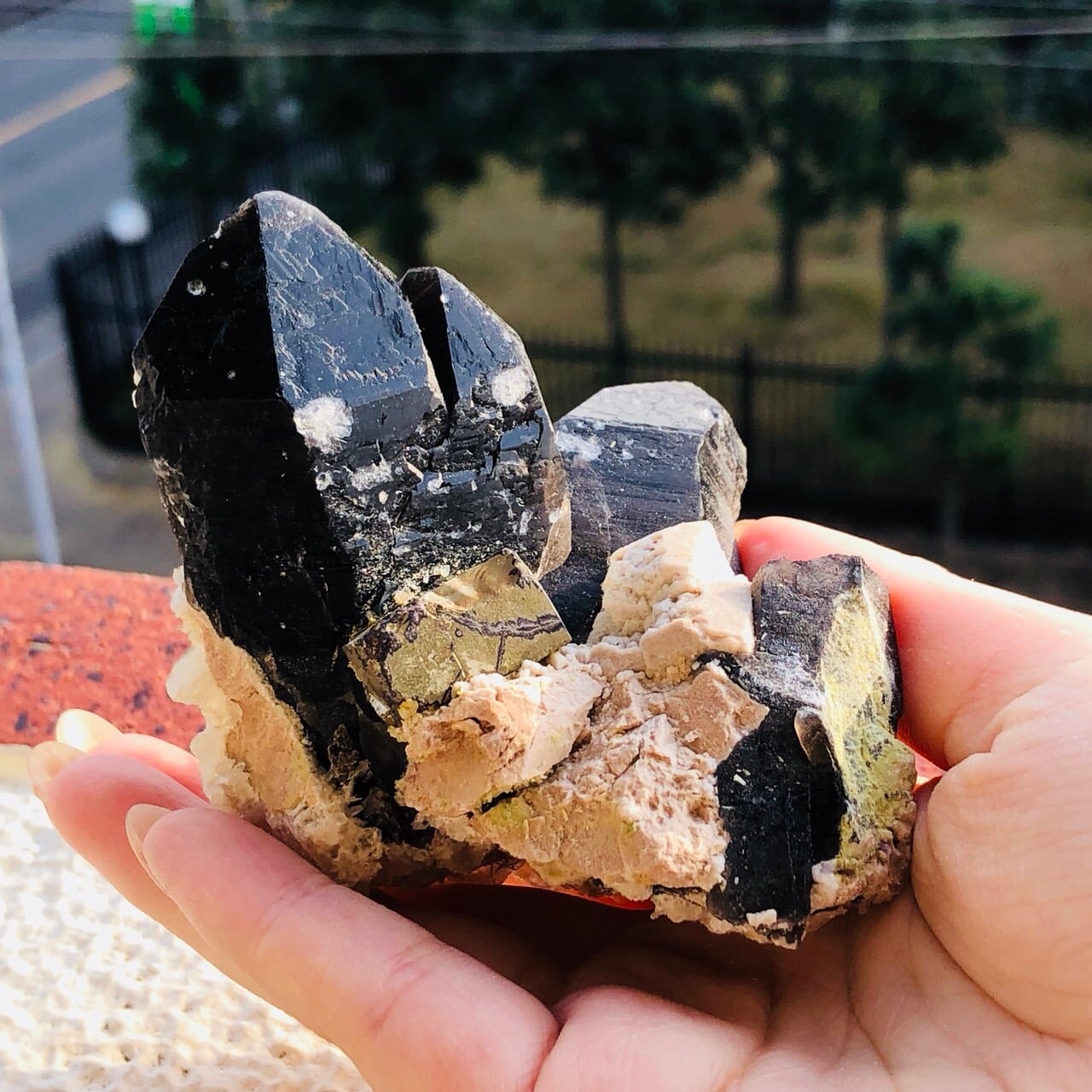 モリオン(黒水晶)クラスター!未加工の天然パイライト付き