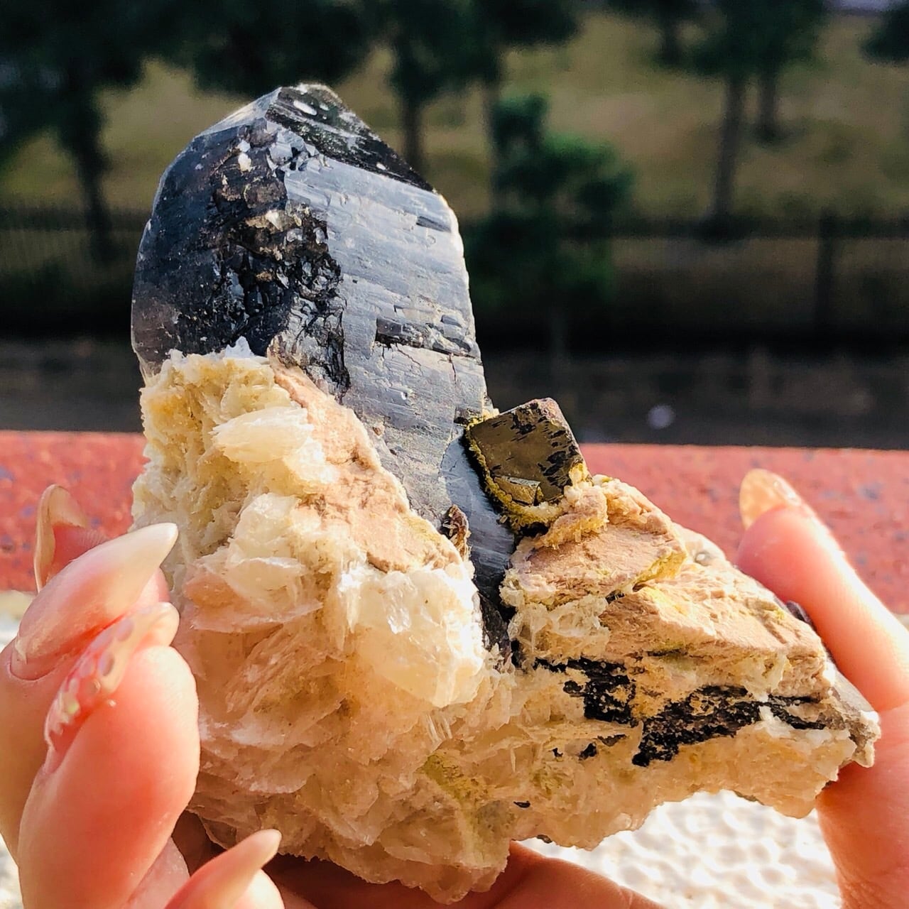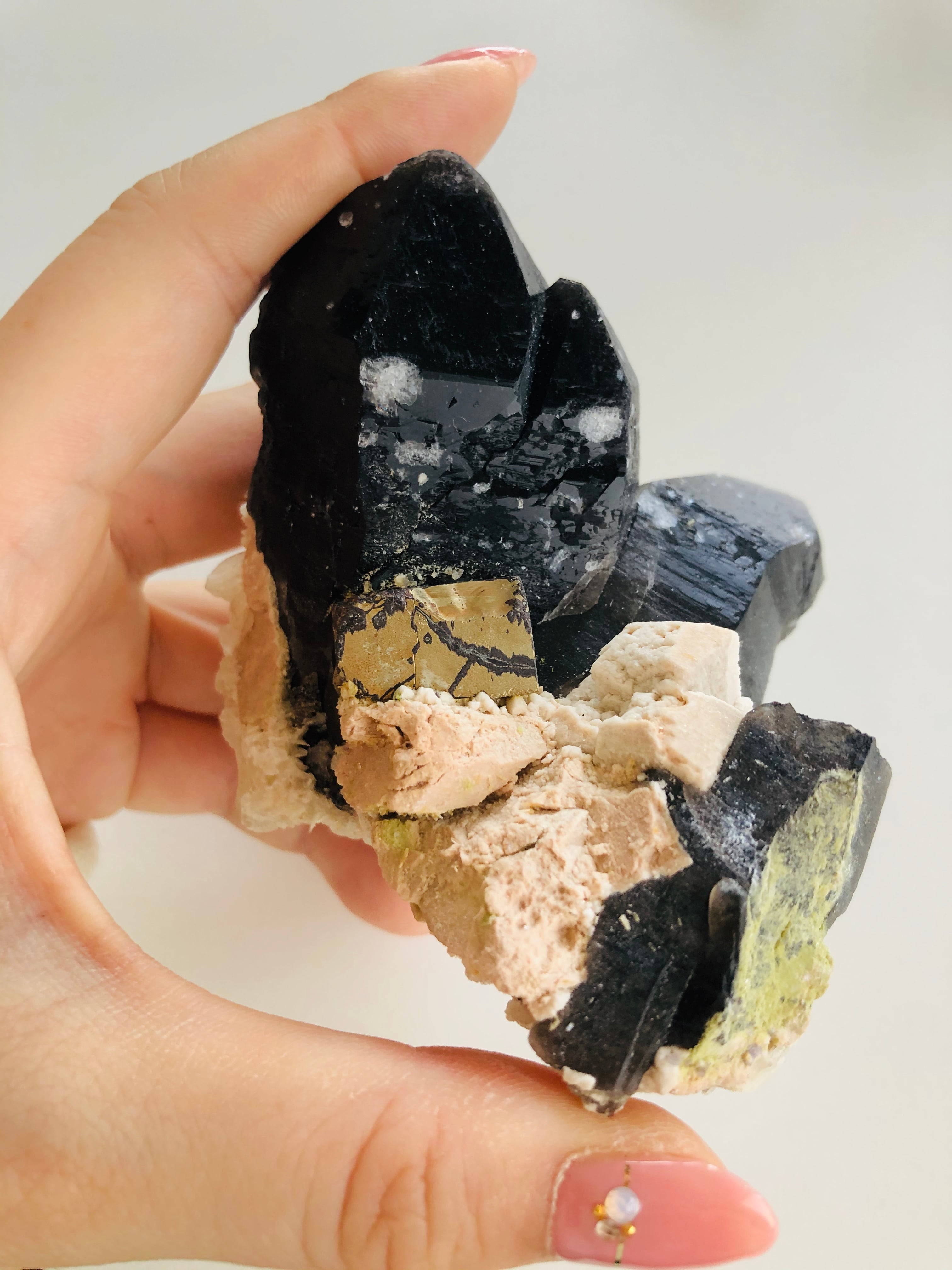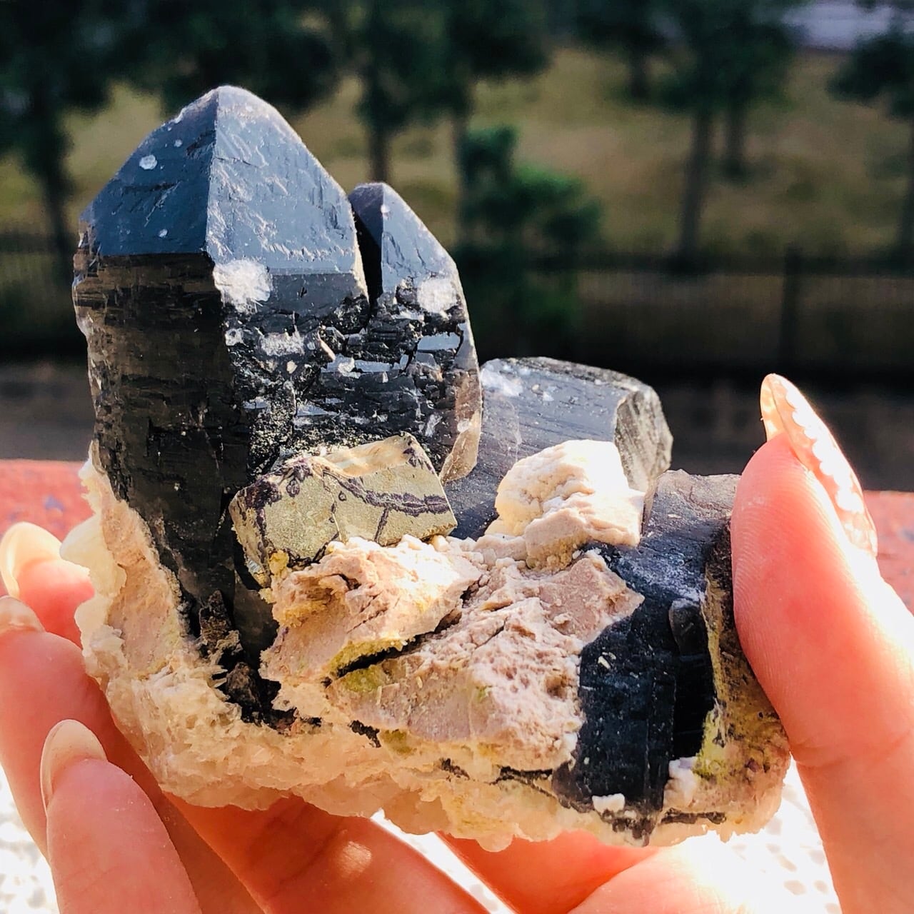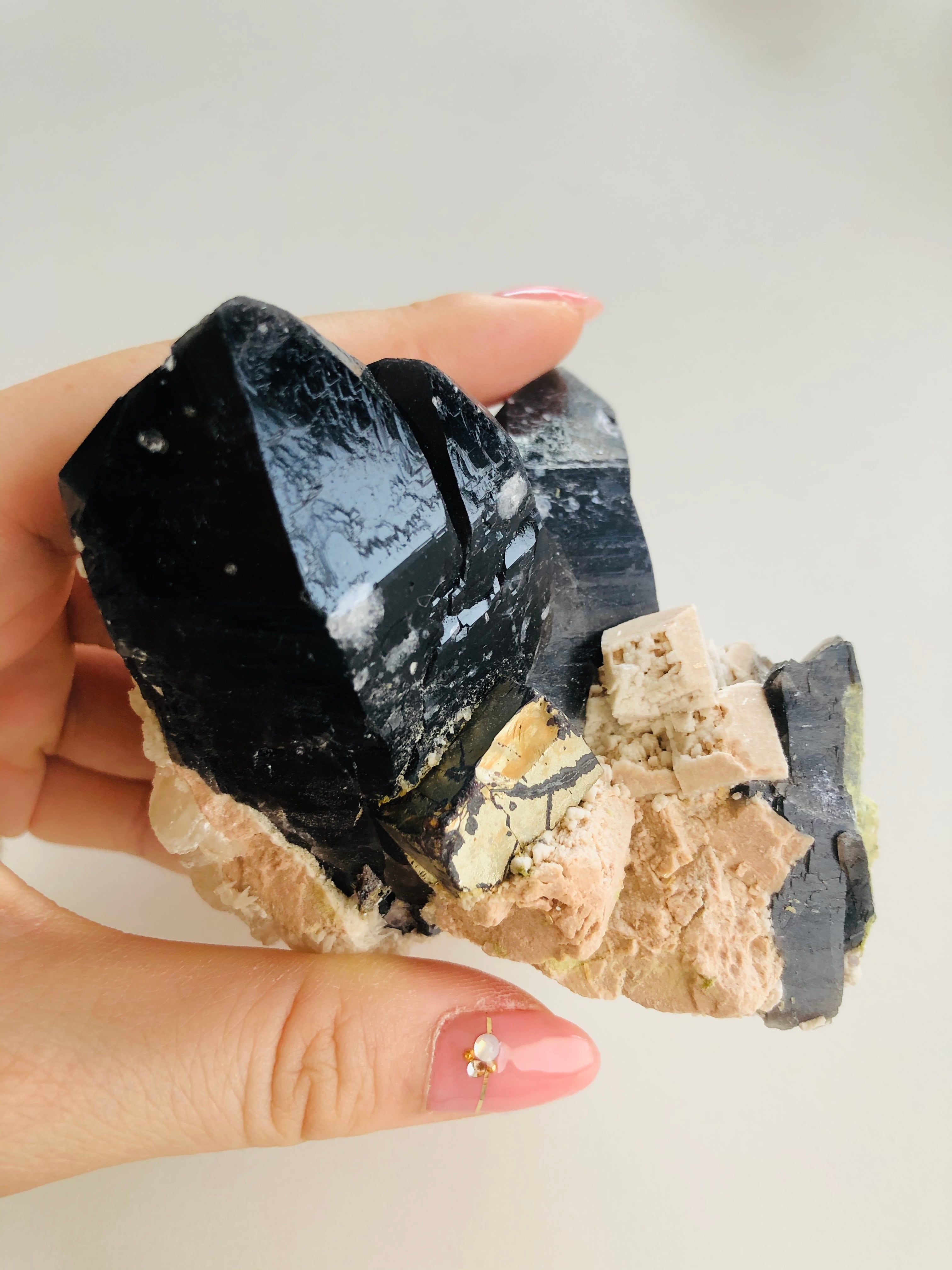モリオン(黒水晶)クラスター!未加工の天然パイライト付き