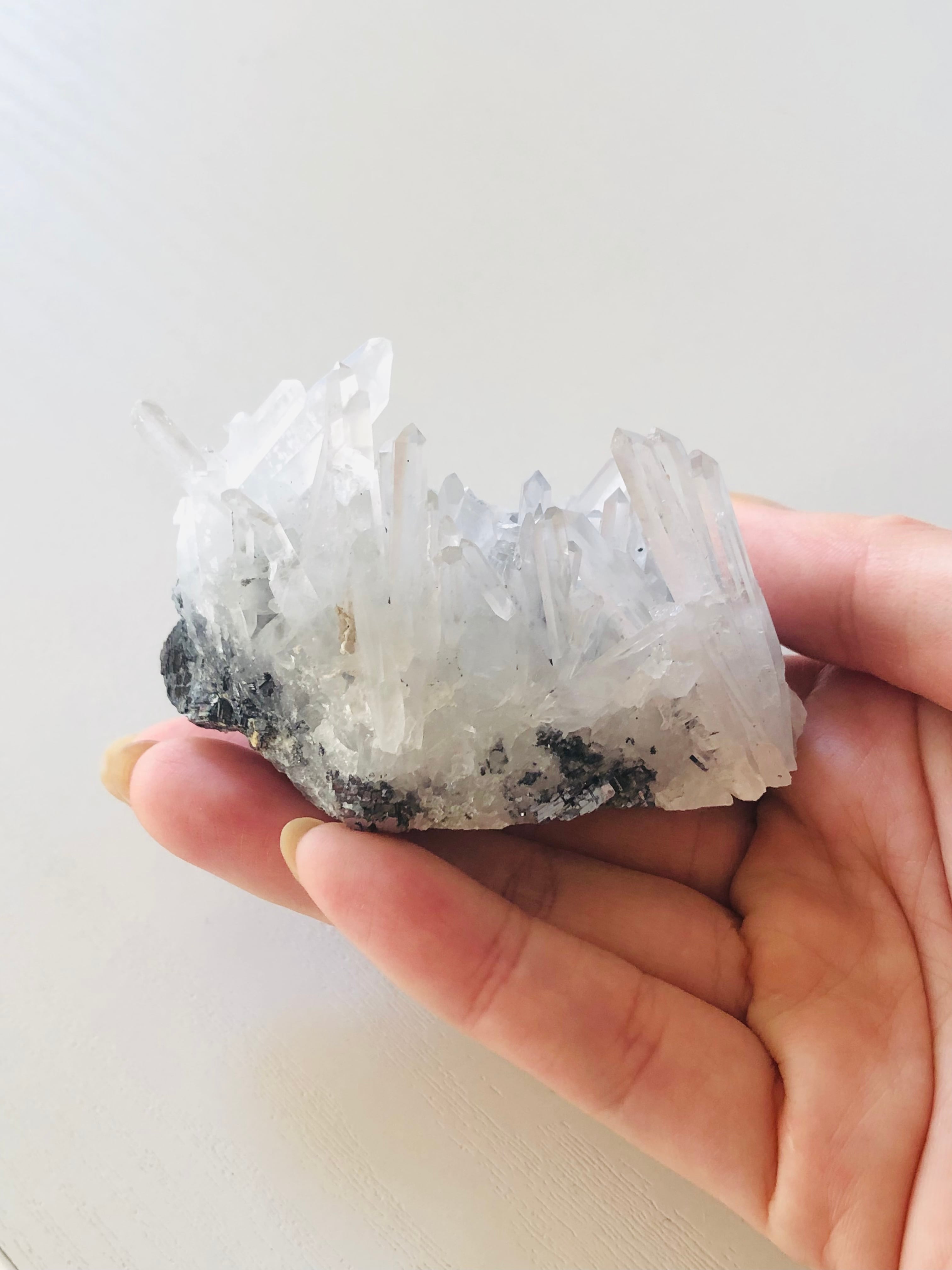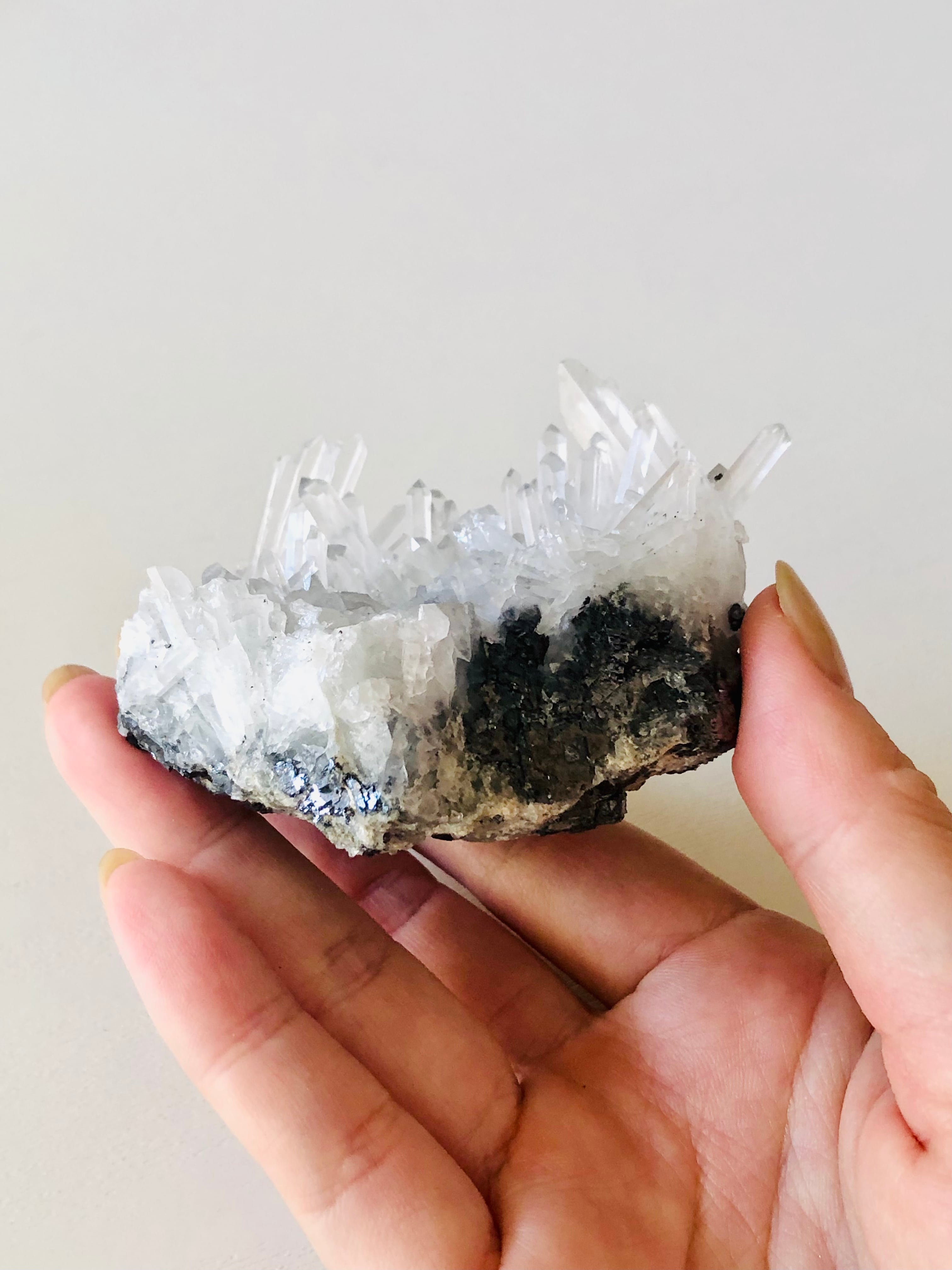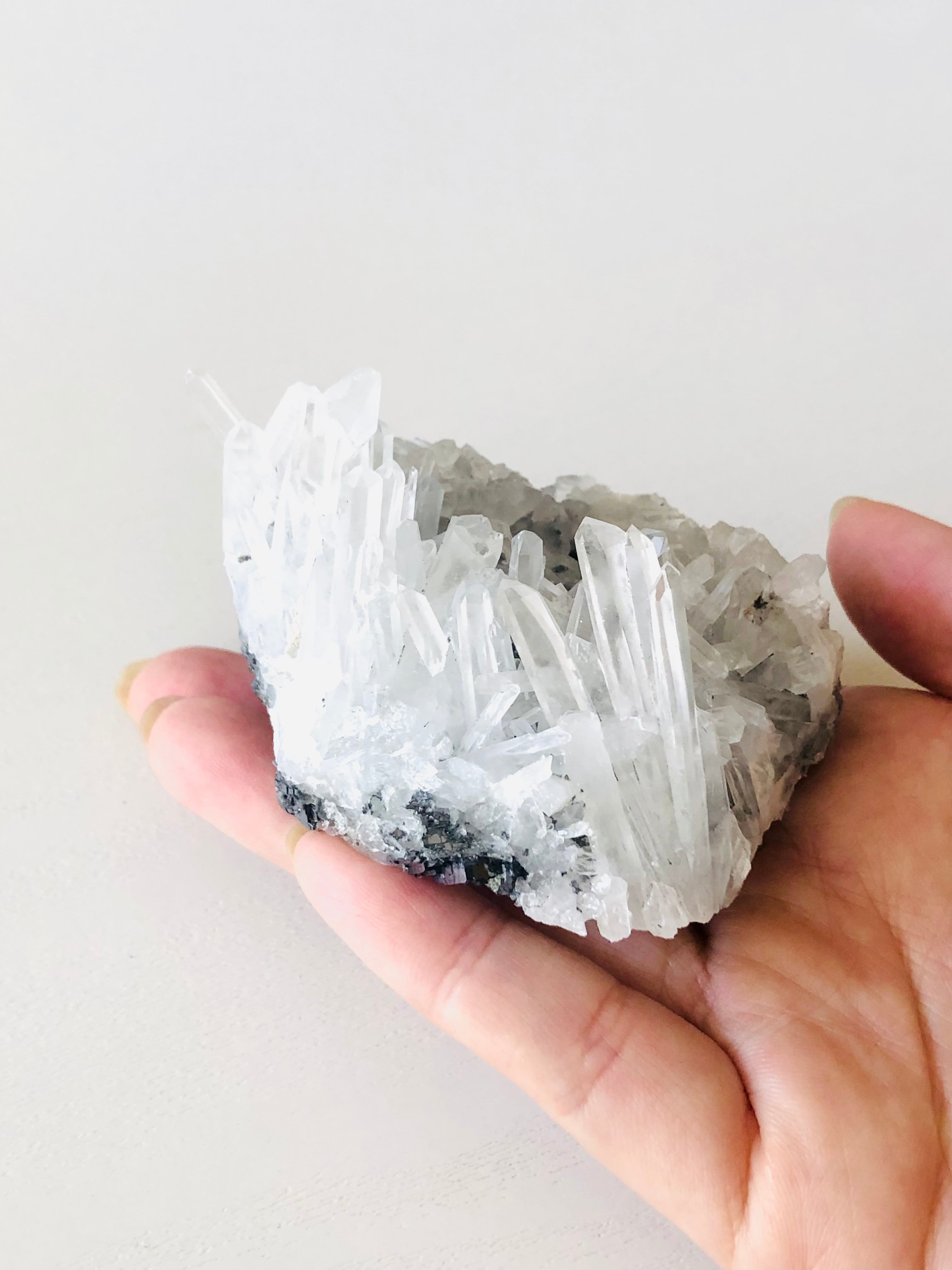 すりガラスのような独特な美しさが特徴のブルガリア産水晶クラスター。