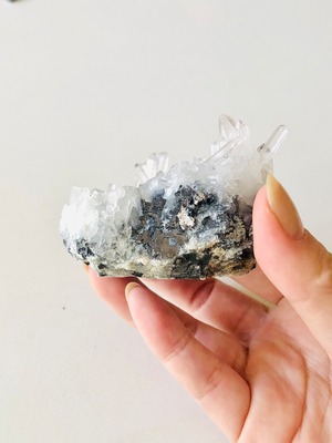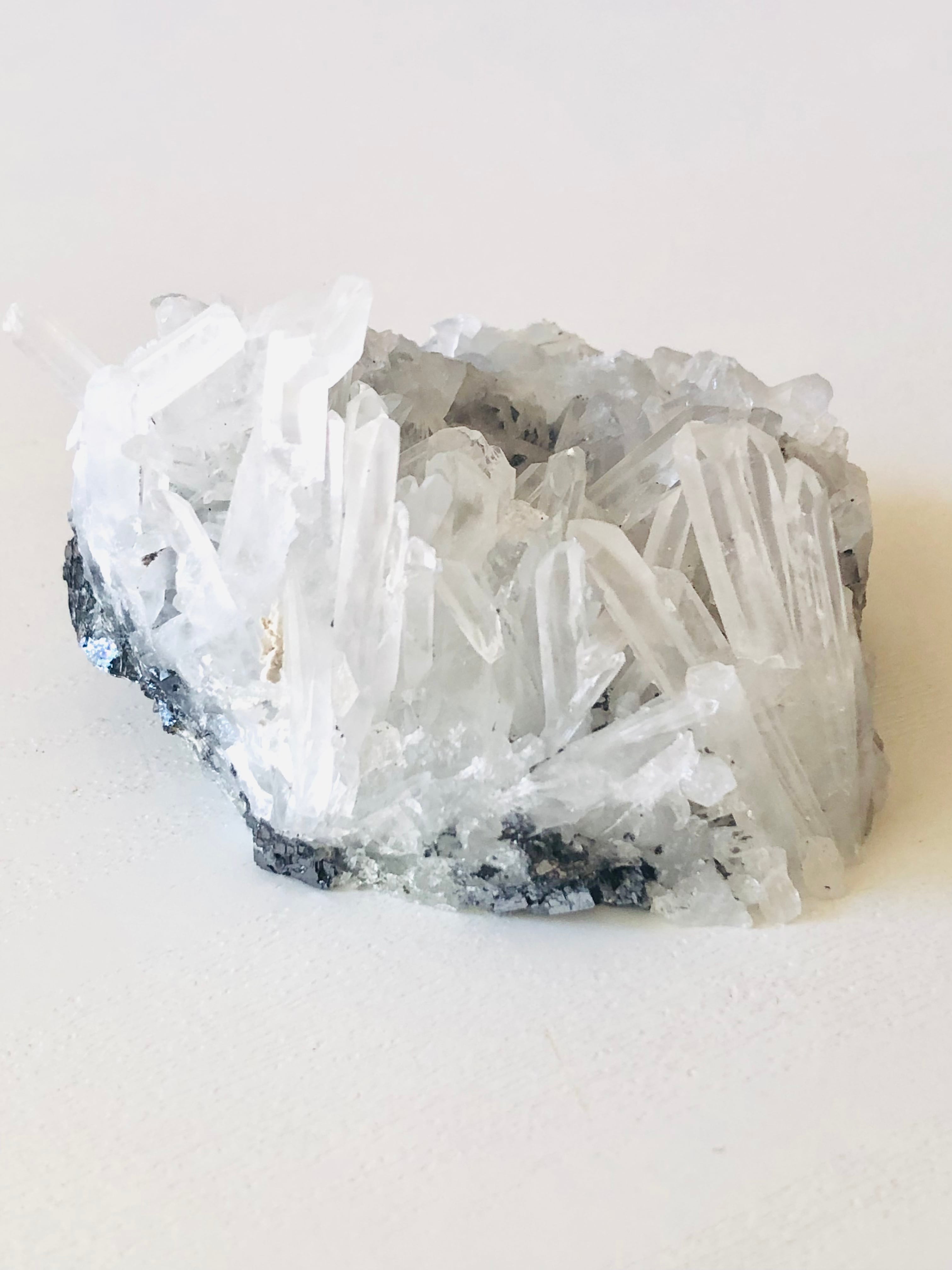 すりガラスの質感の水晶とガレーナのメタリックな輝きが
