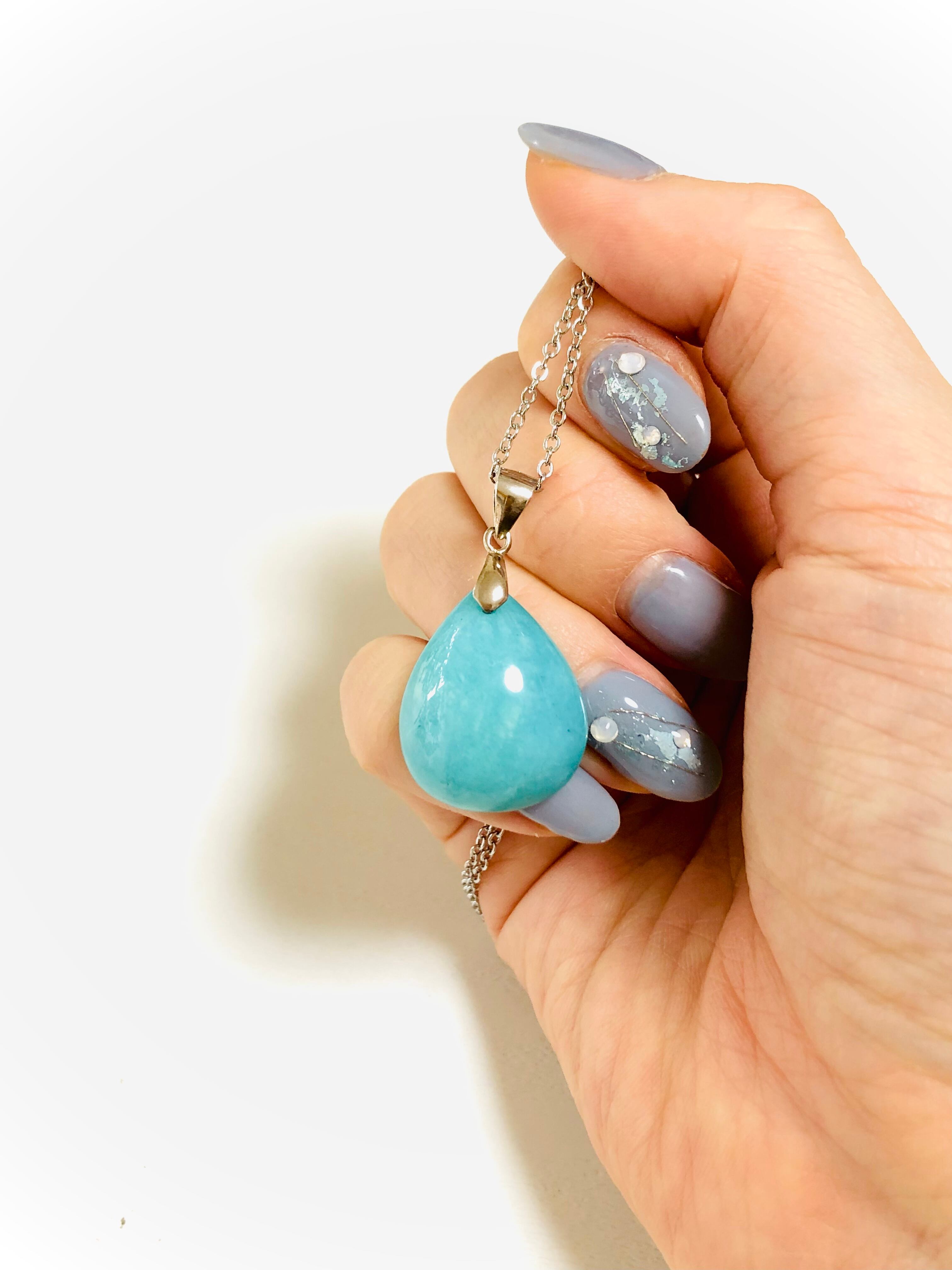 鮮やかなブルーグリーンの美しいアマゾナイトネックレスです。