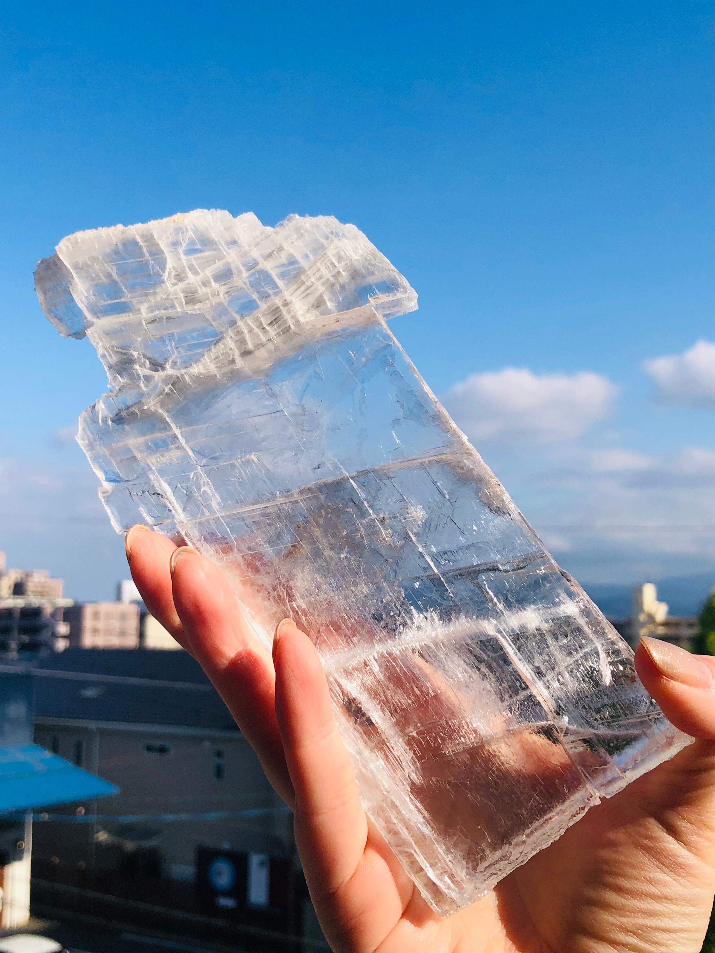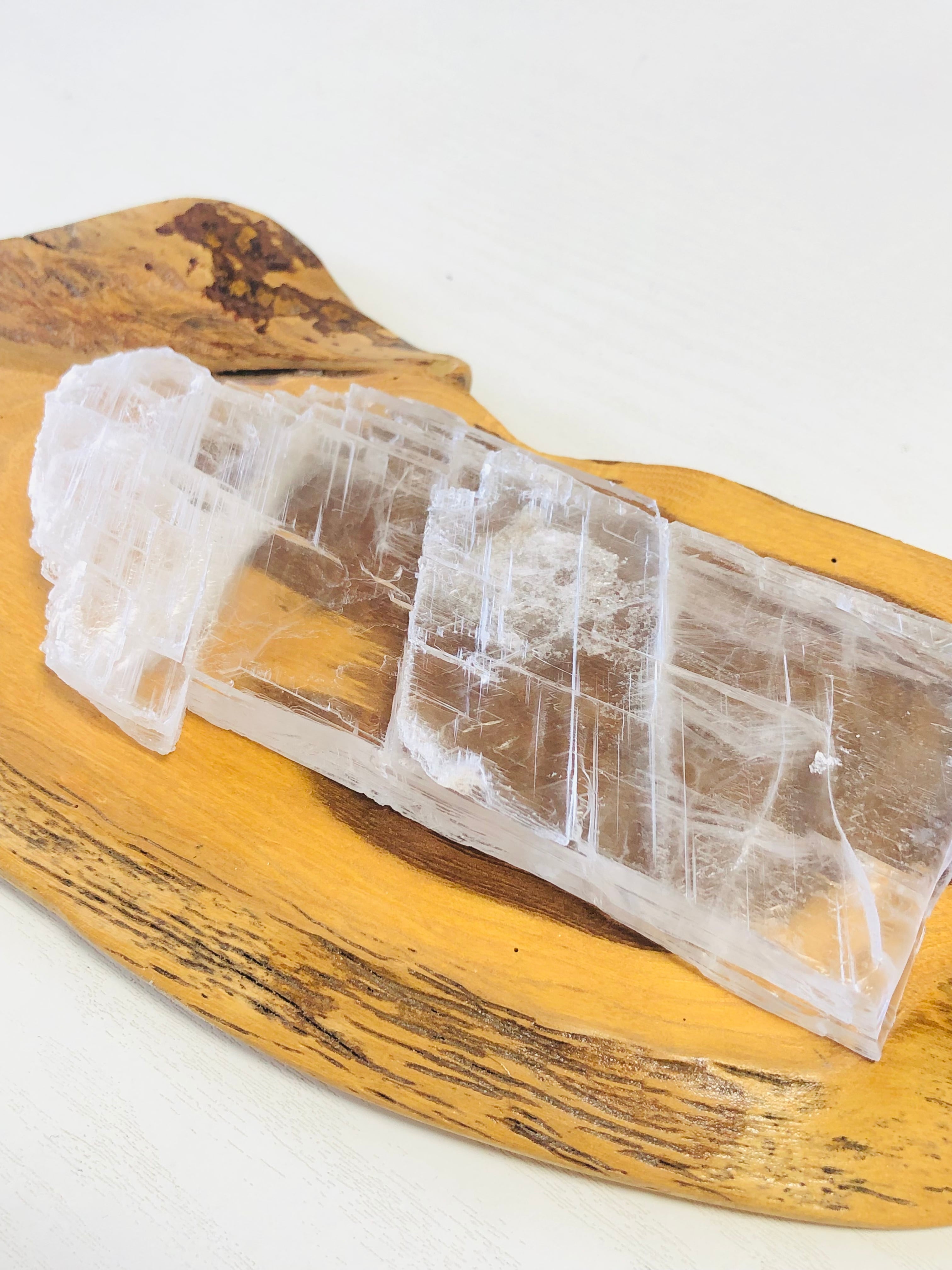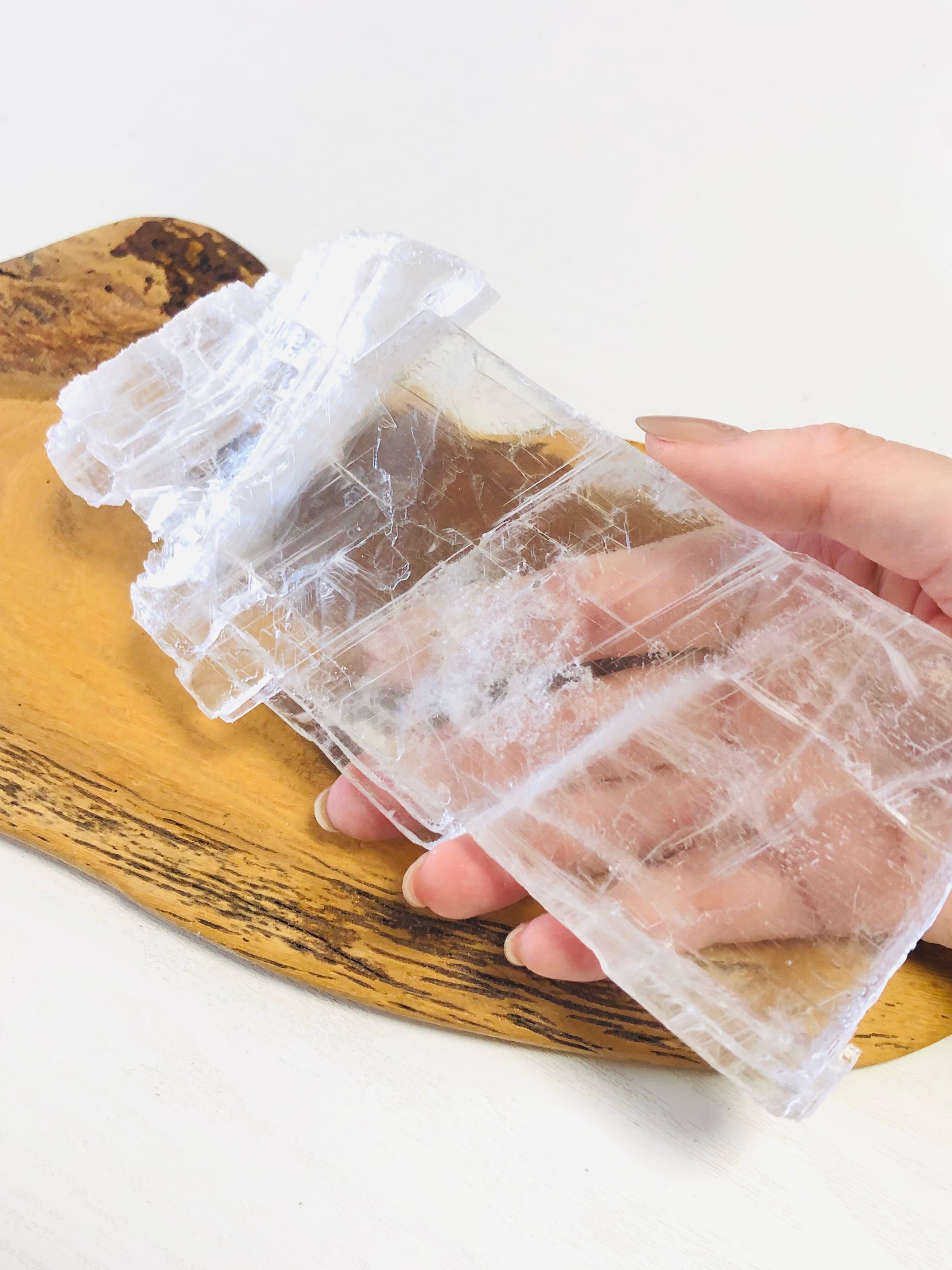 まるで水晶のようにクリアで大変美しいセレナイトのプレート状の結晶になります。