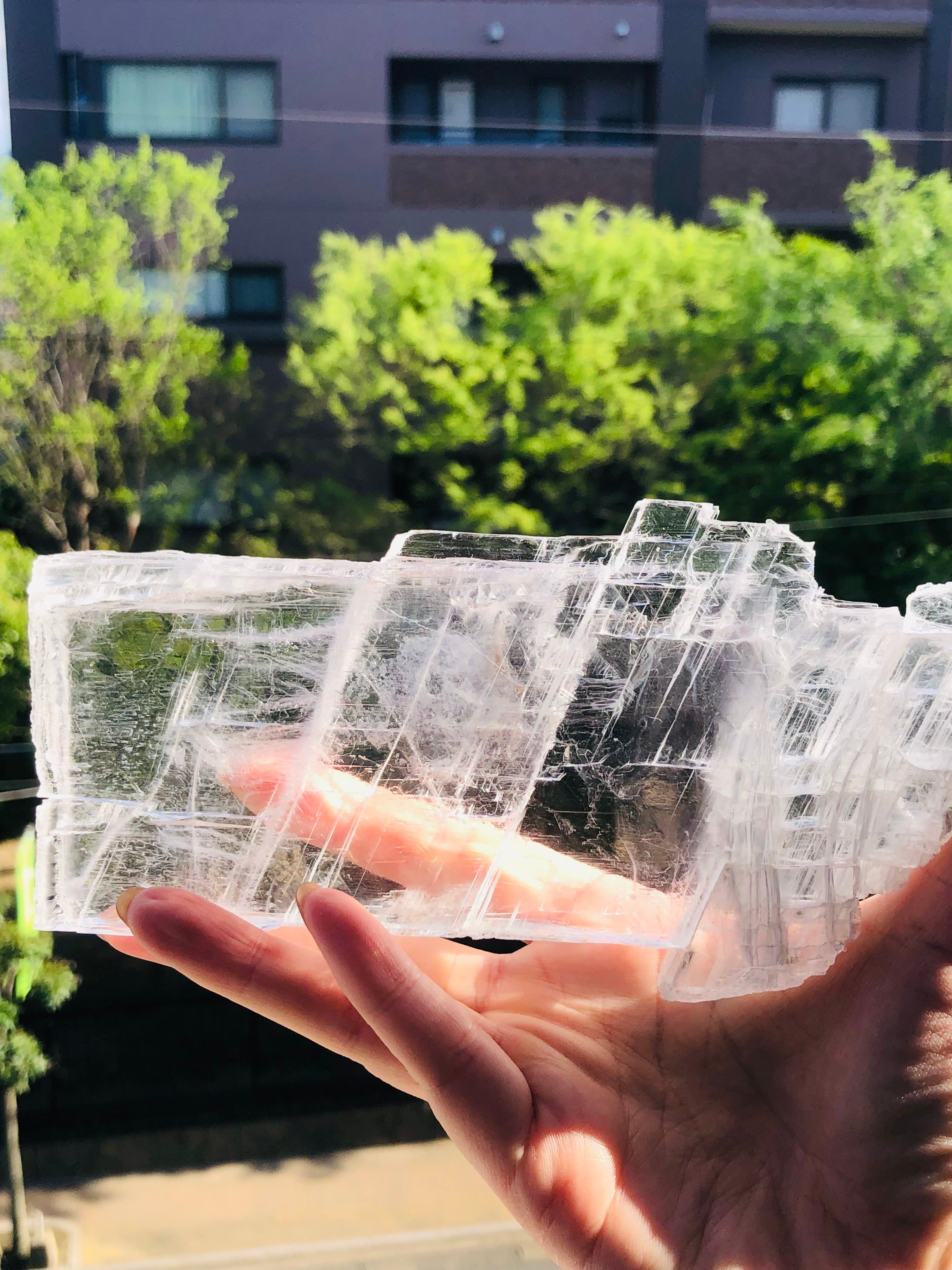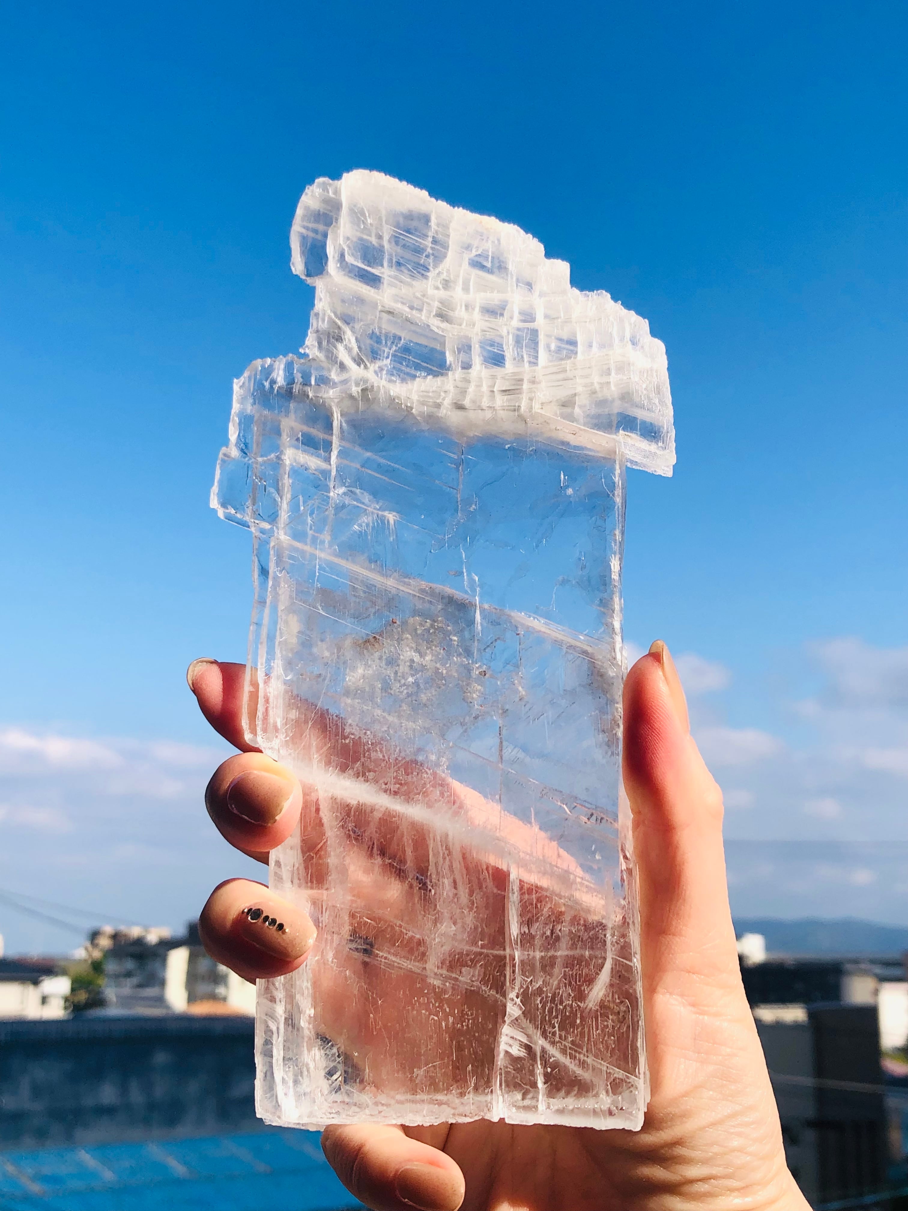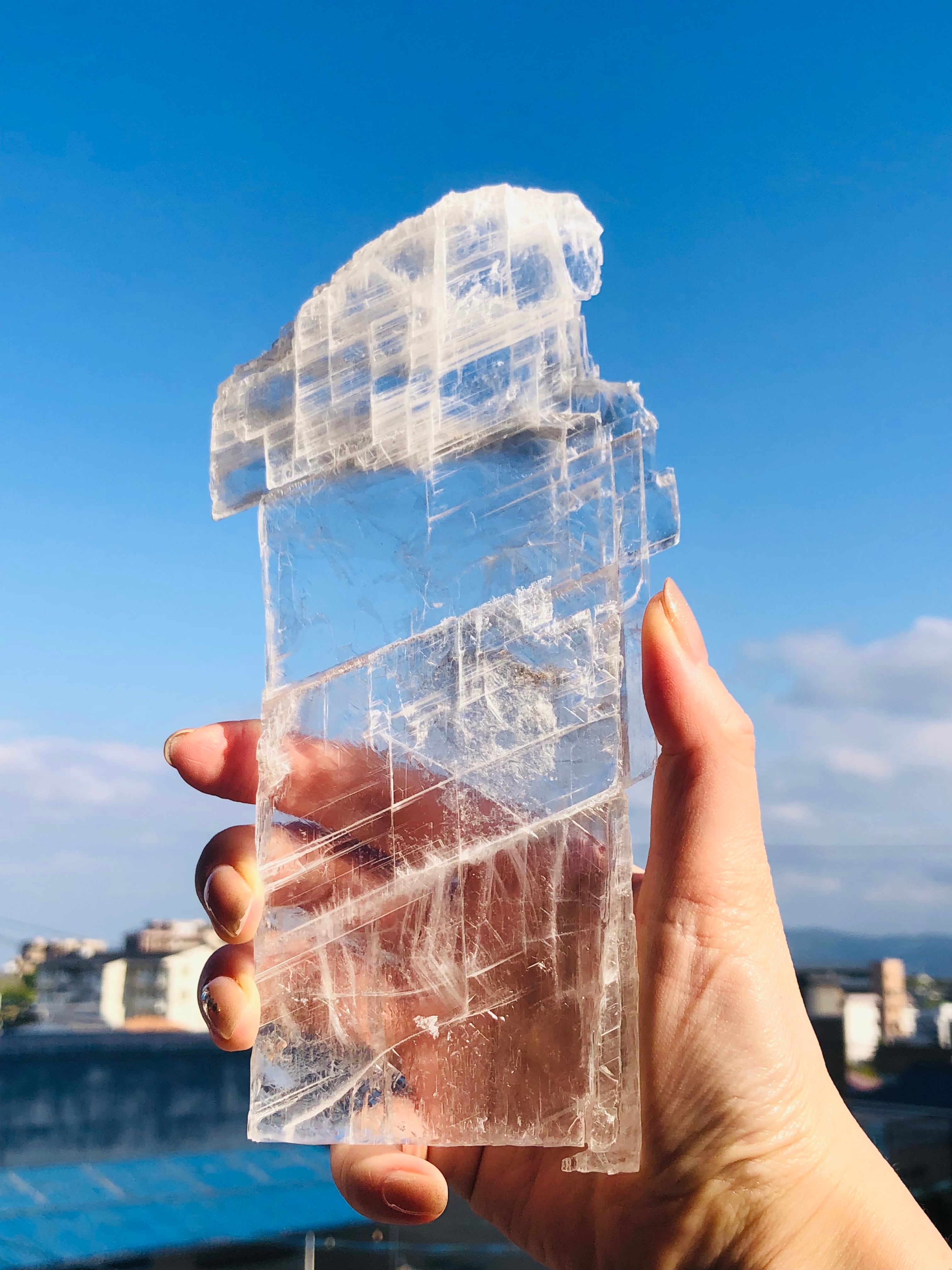 まるで水晶のようにクリアで大変美しいセレナイトのプレート状の結晶になります。