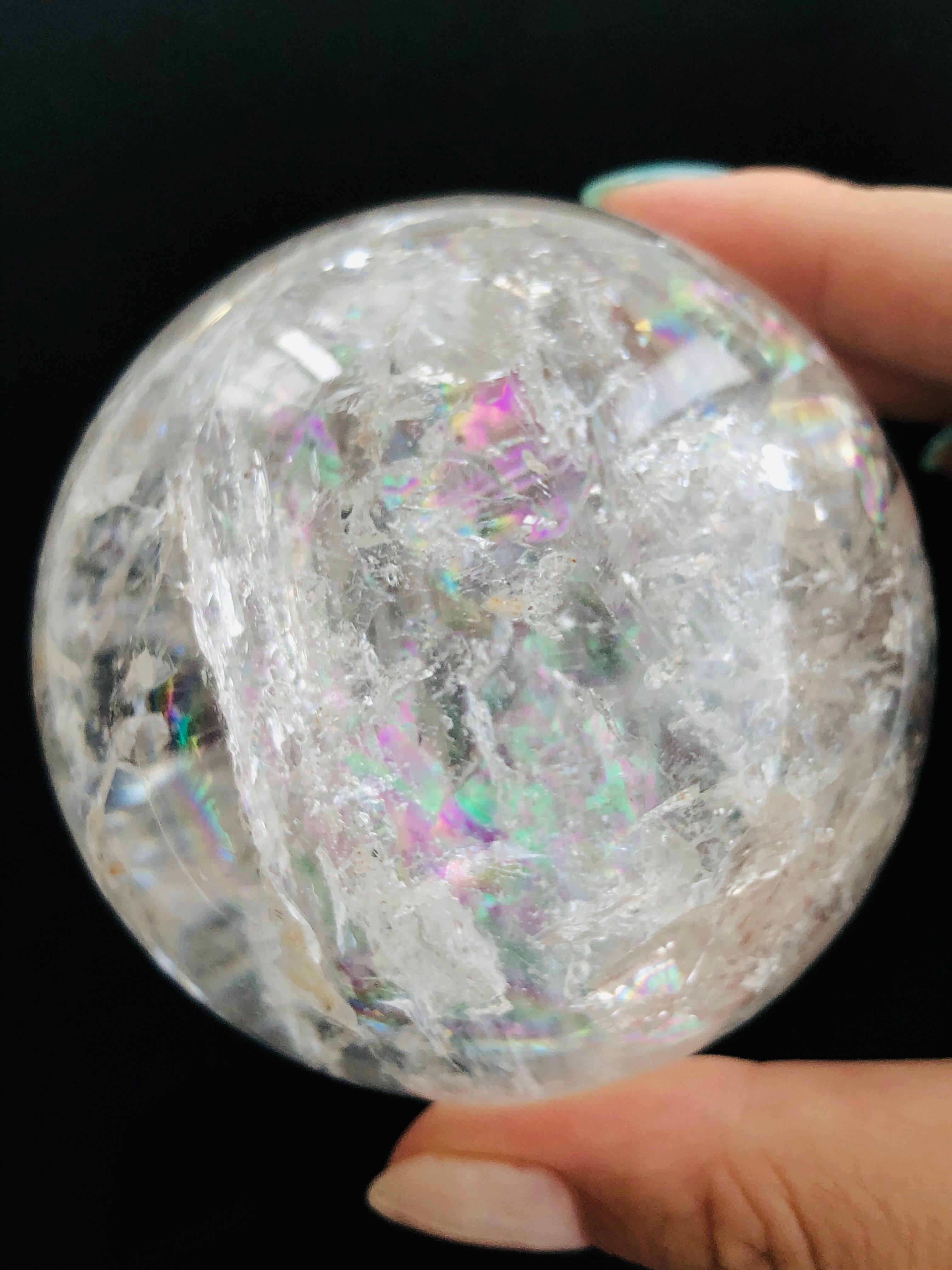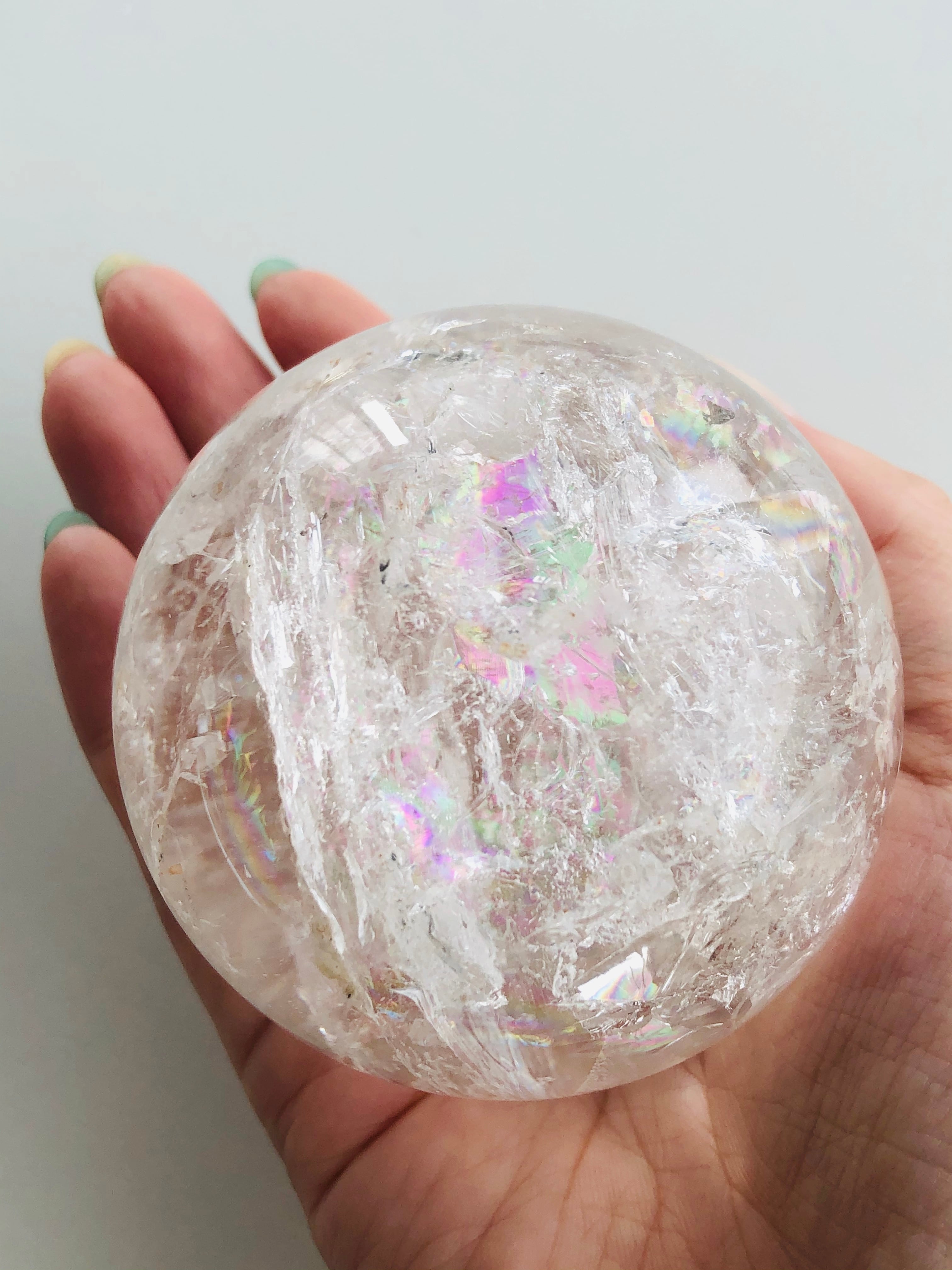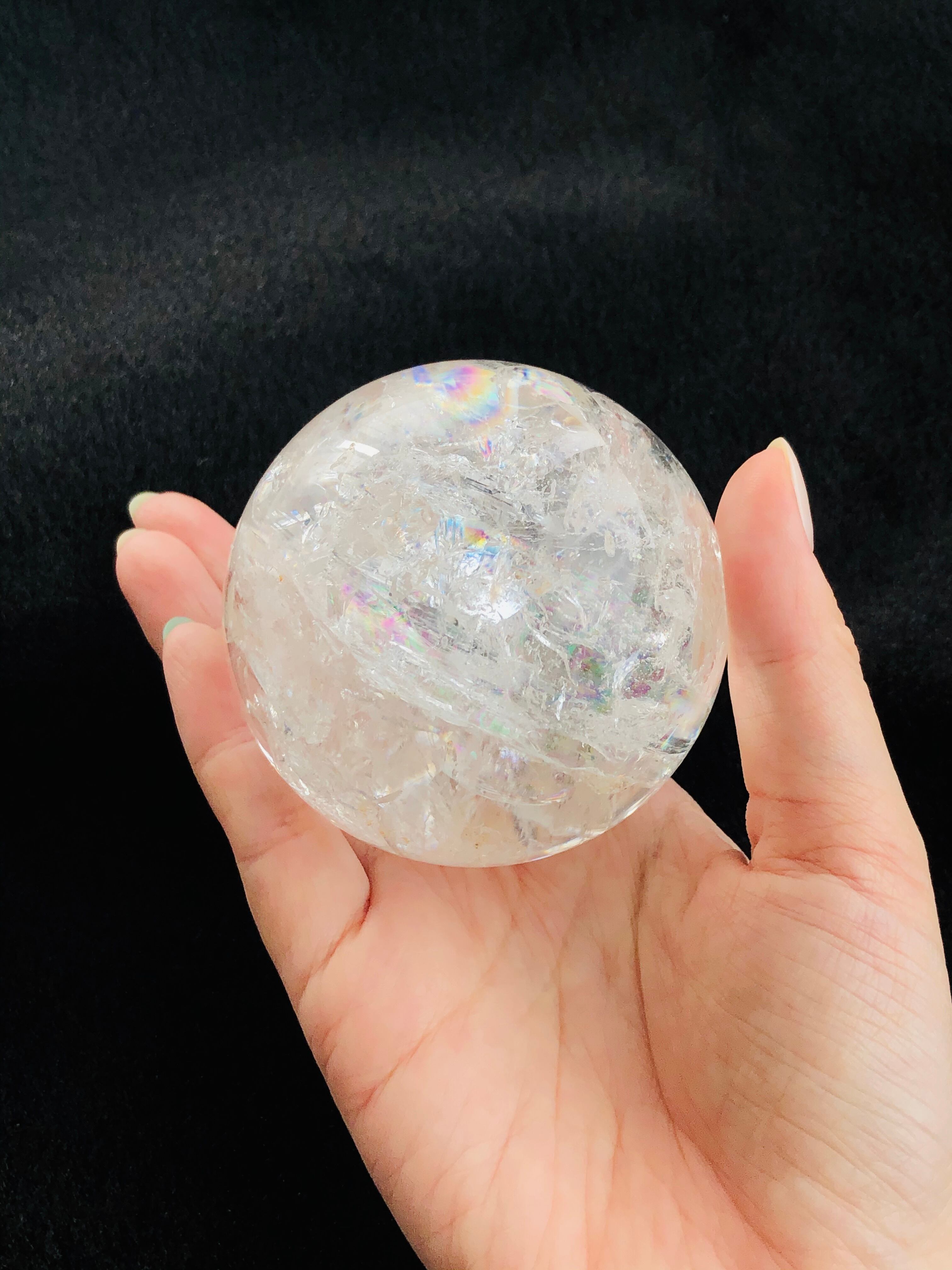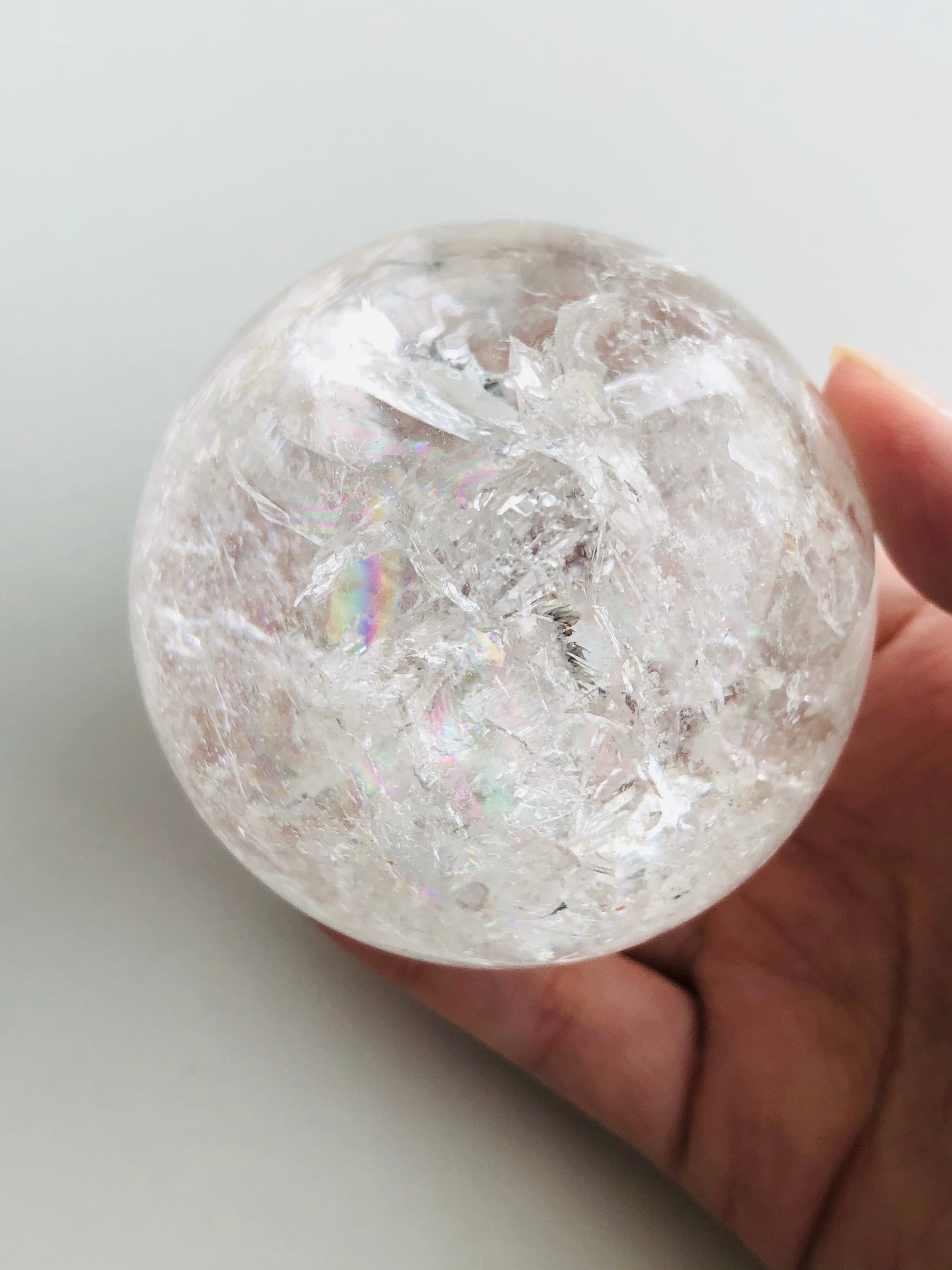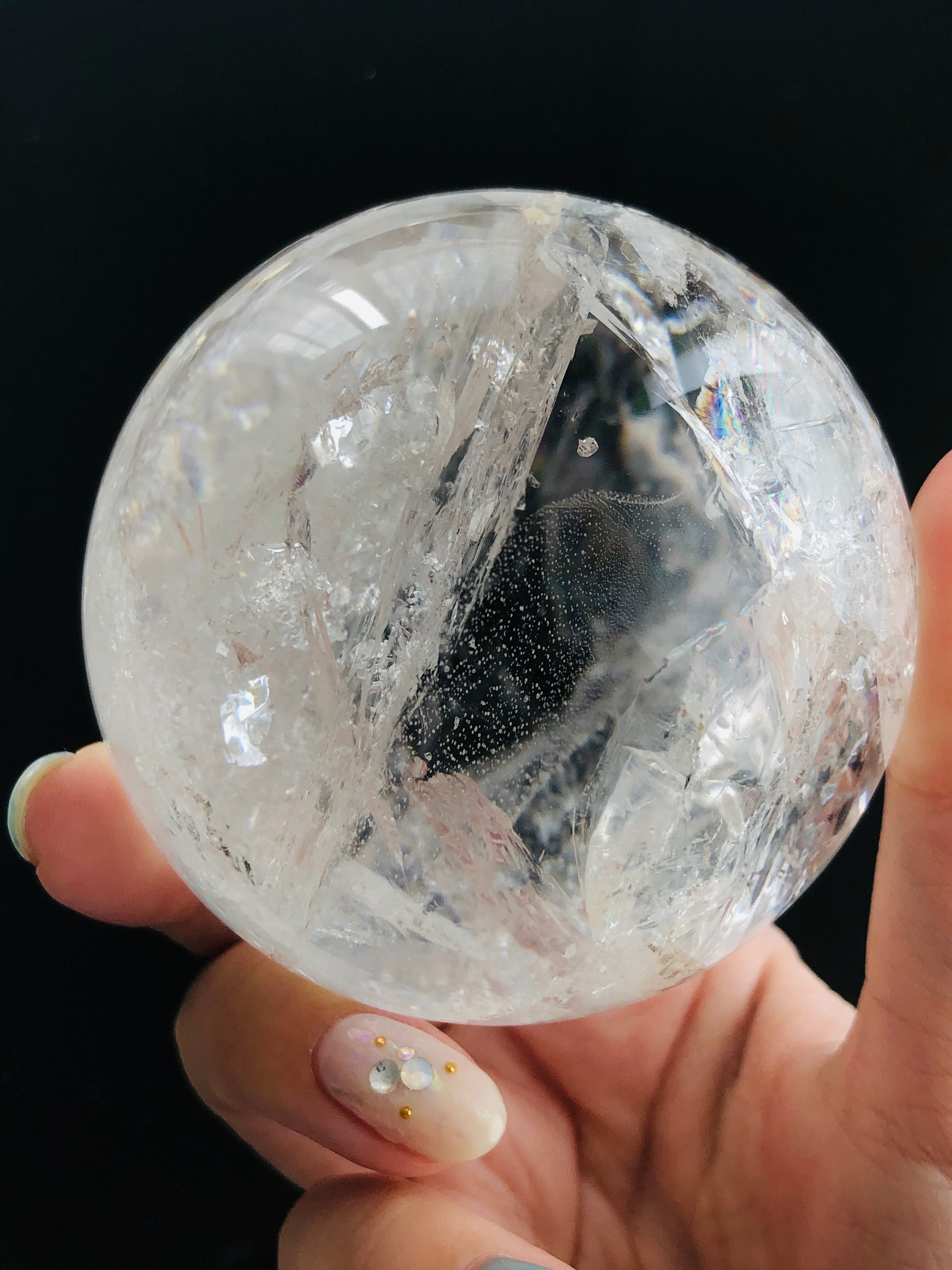 大粒!!幸せを呼ぶ♡虹入り水晶の丸玉(72mm)