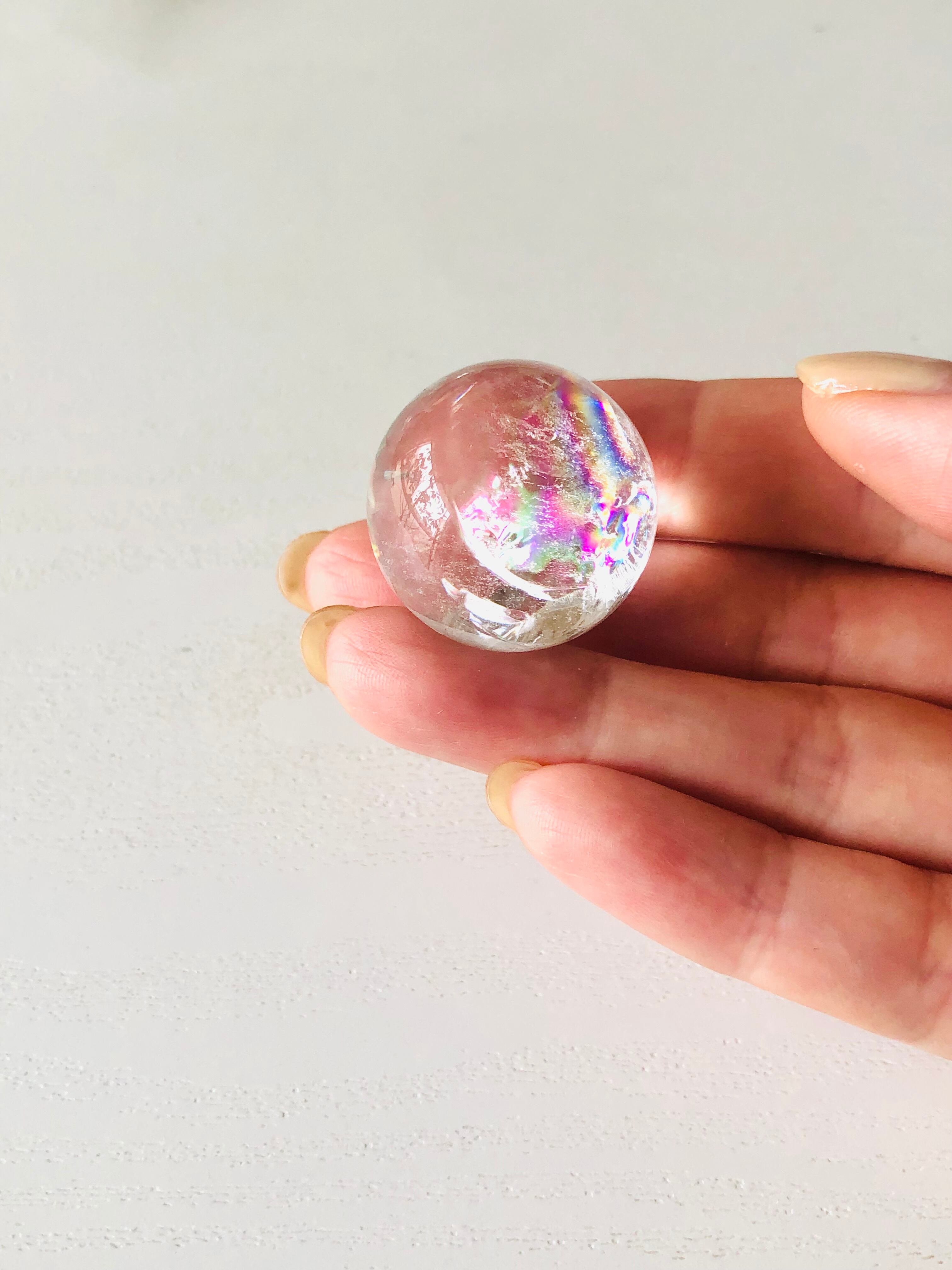 幸せを呼ぶ!虹入り水晶の丸玉(約26mm)