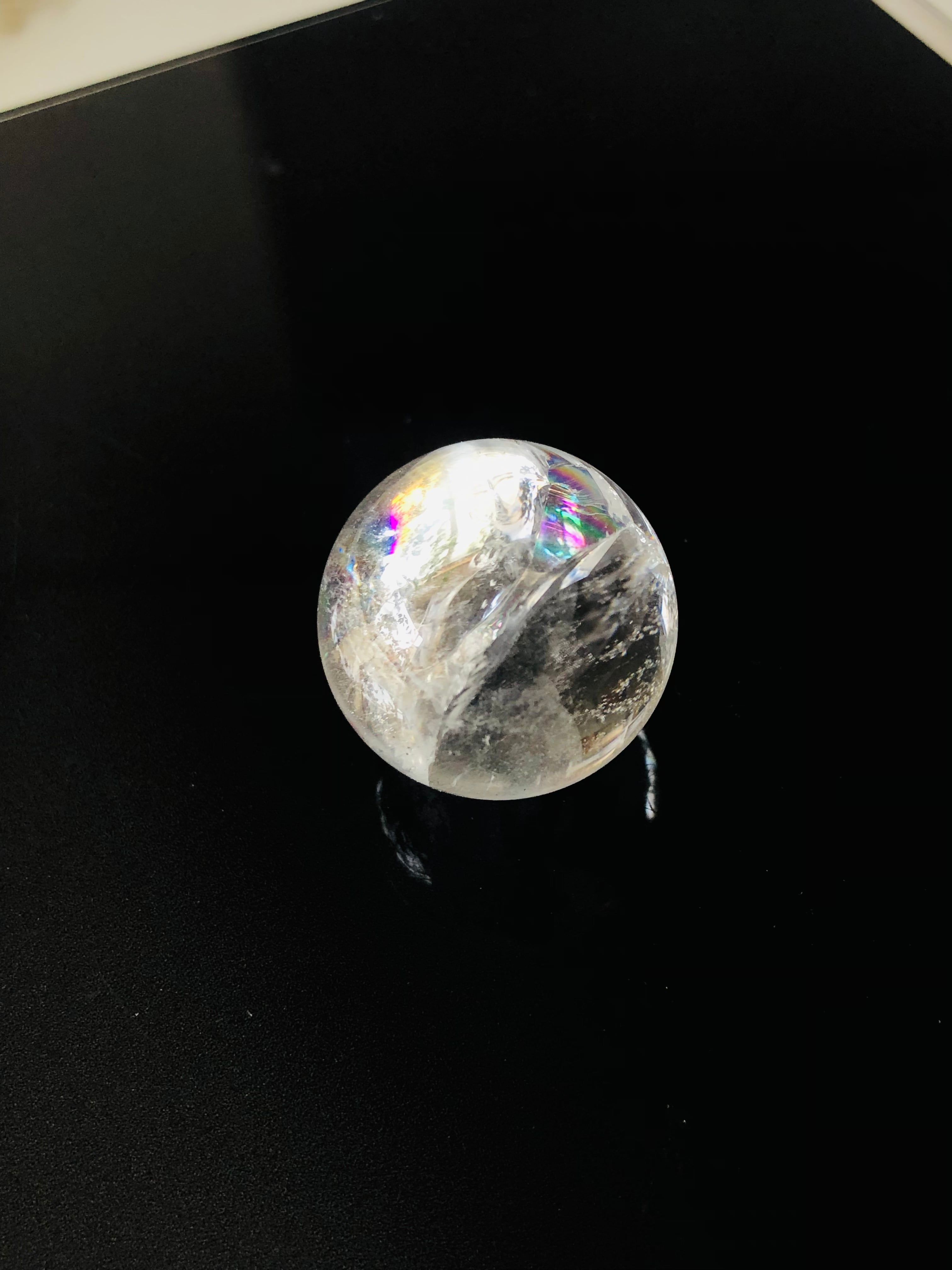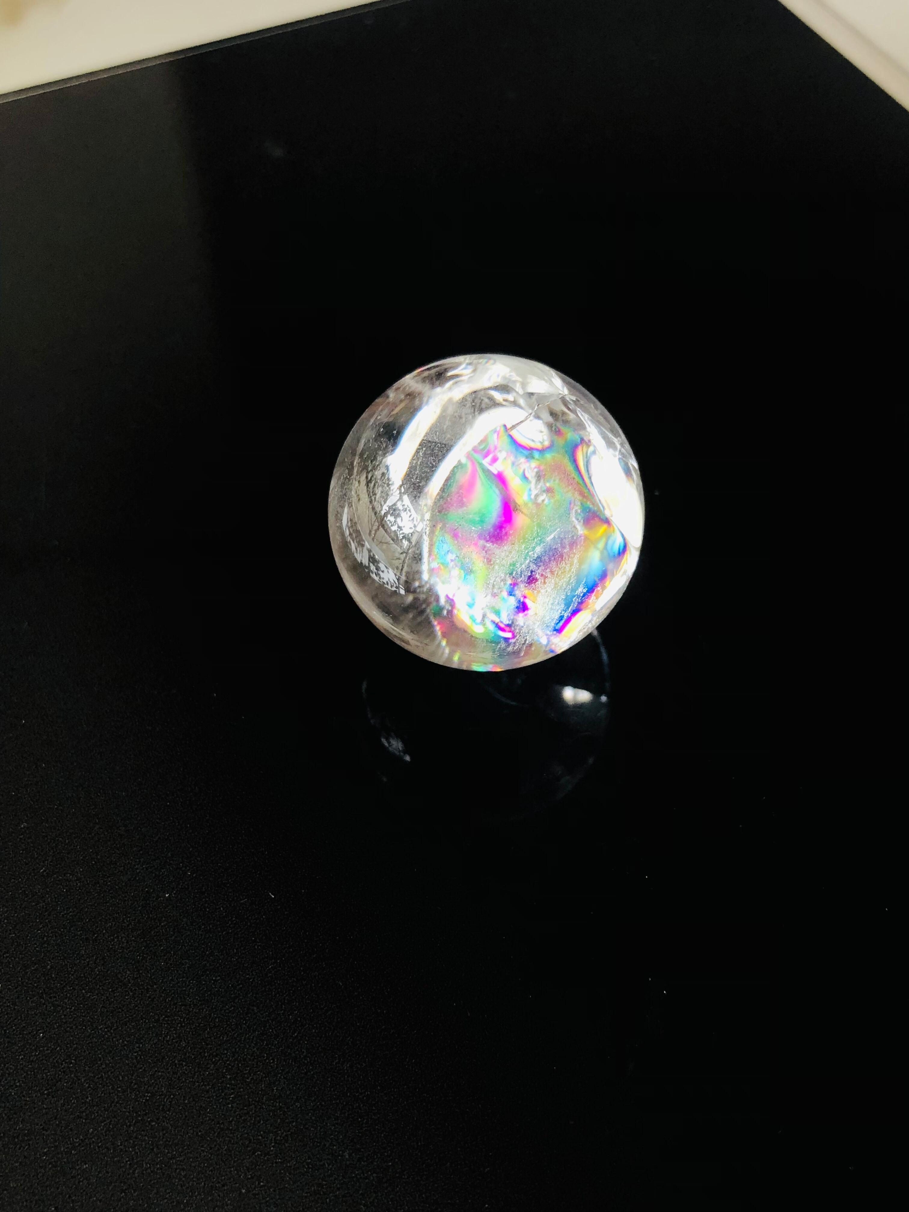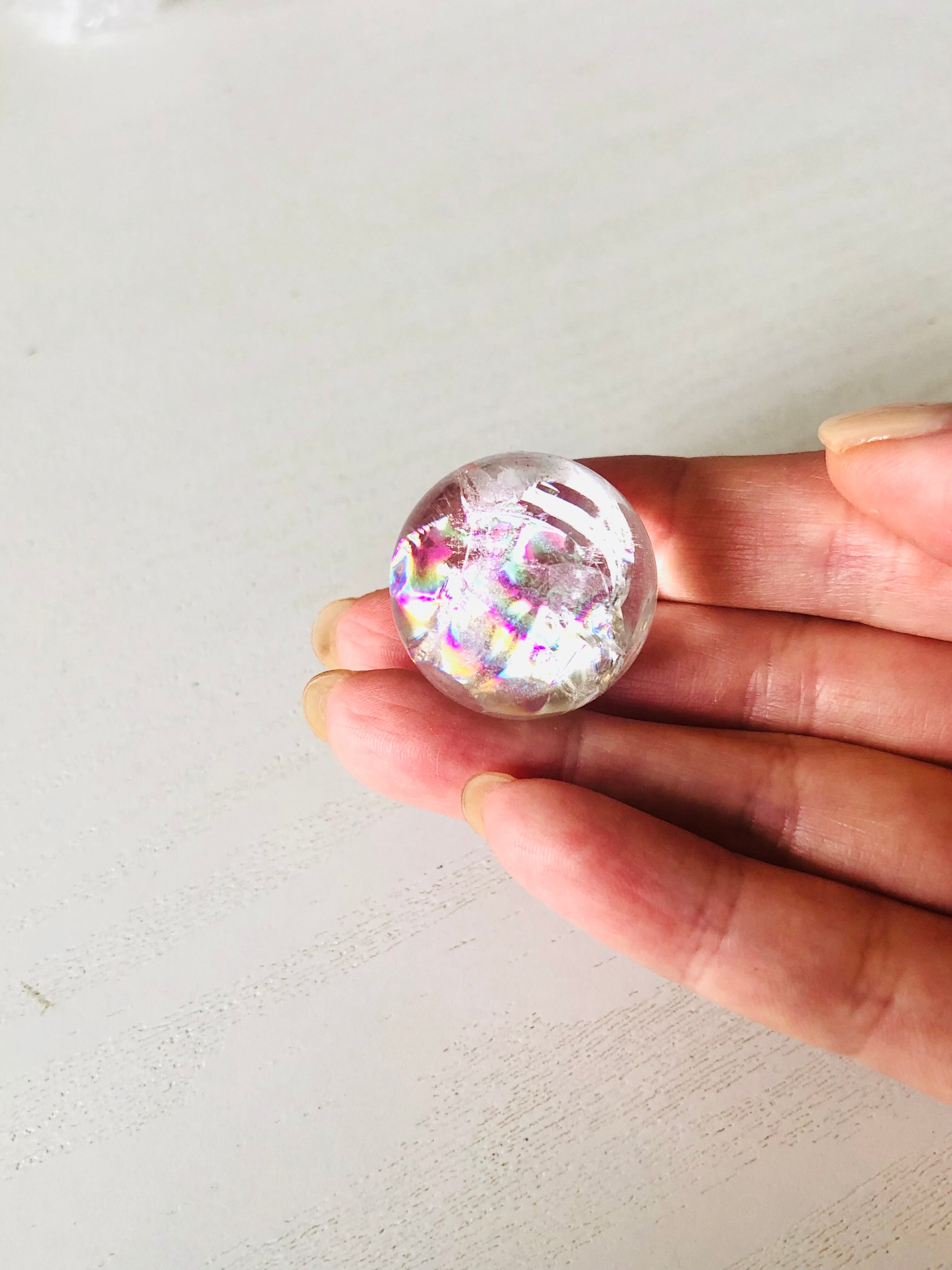 幸せを呼ぶ!虹入り水晶の丸玉(約26mm)