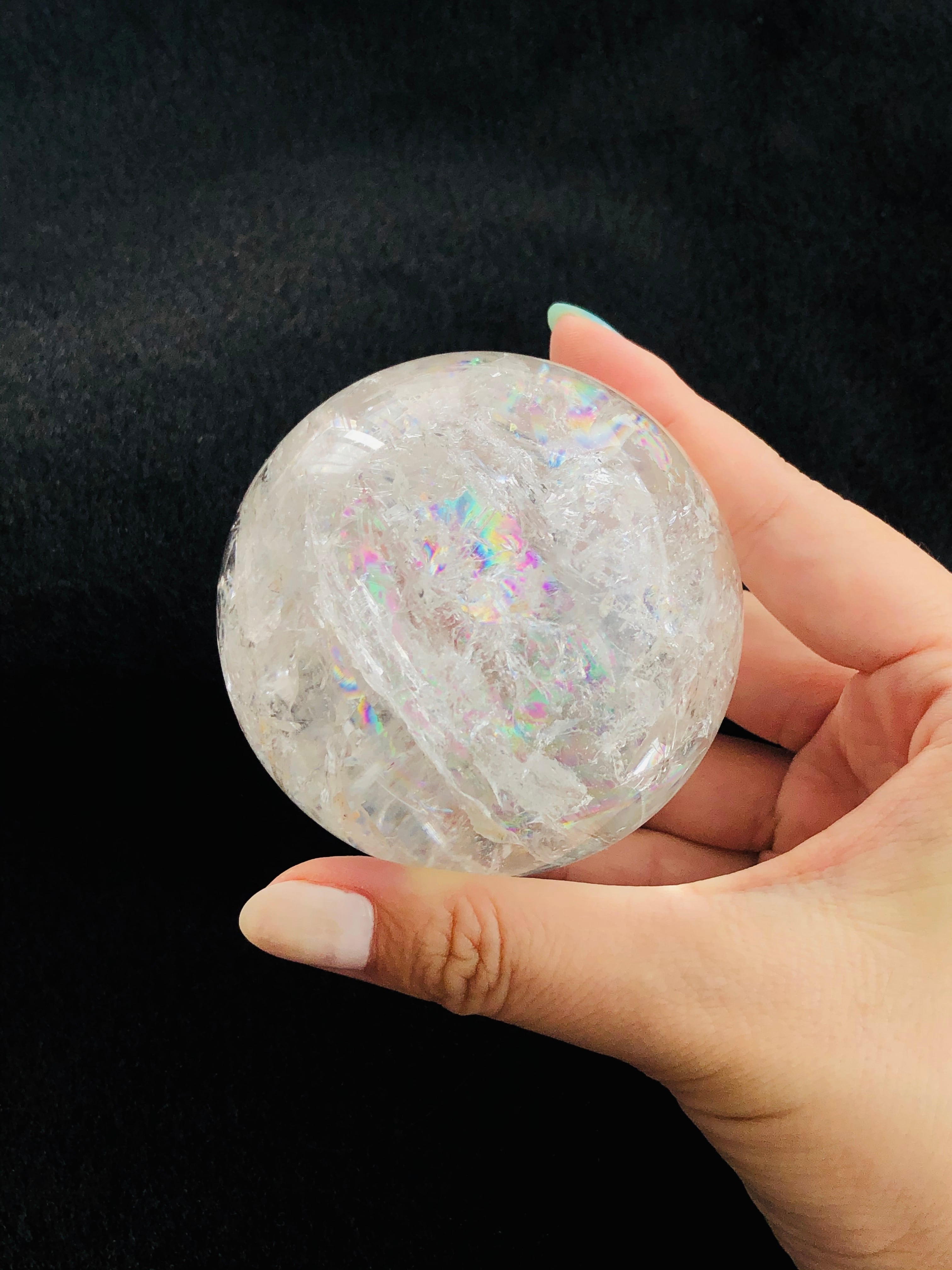 大粒!!幸せを呼ぶ♡虹入り水晶の丸玉(72mm)