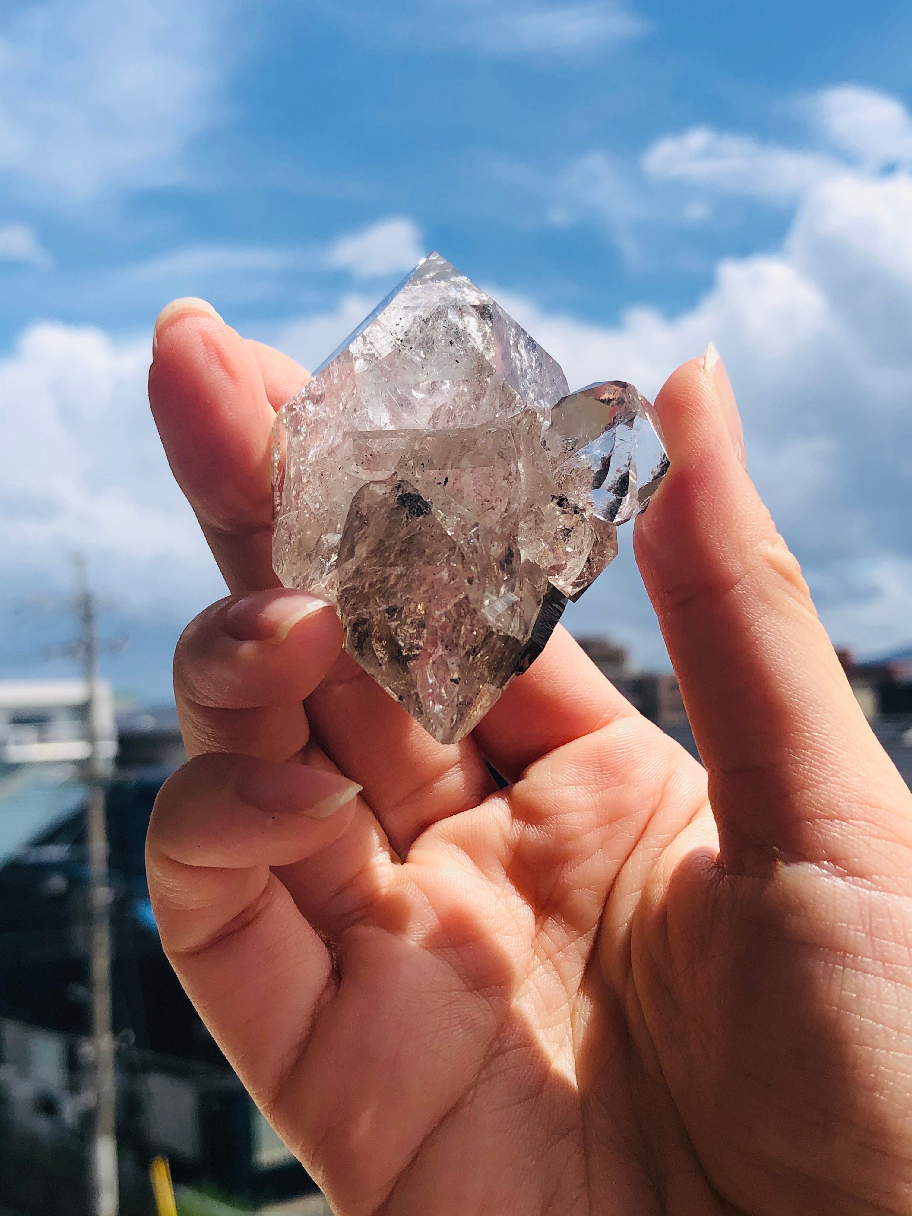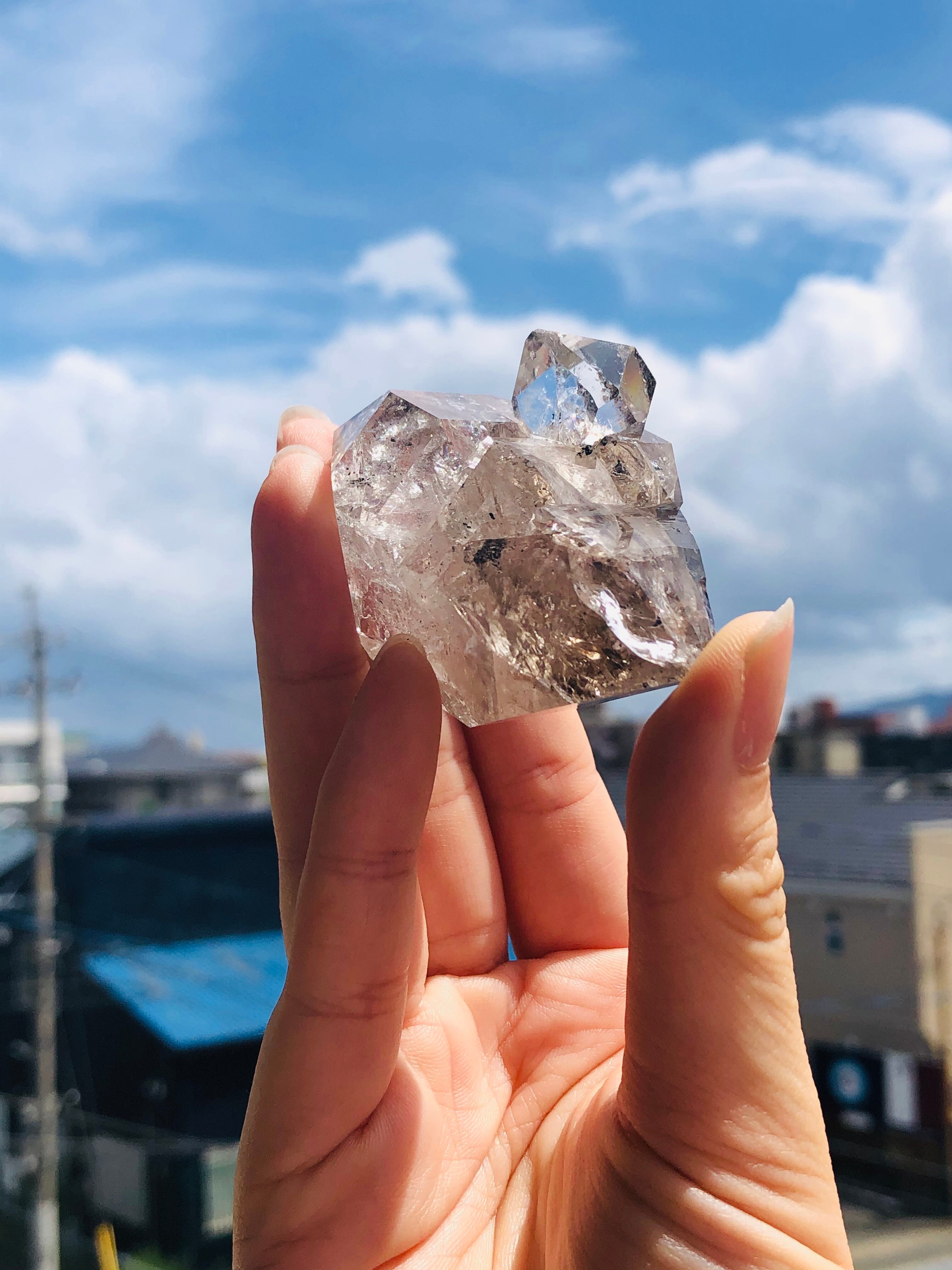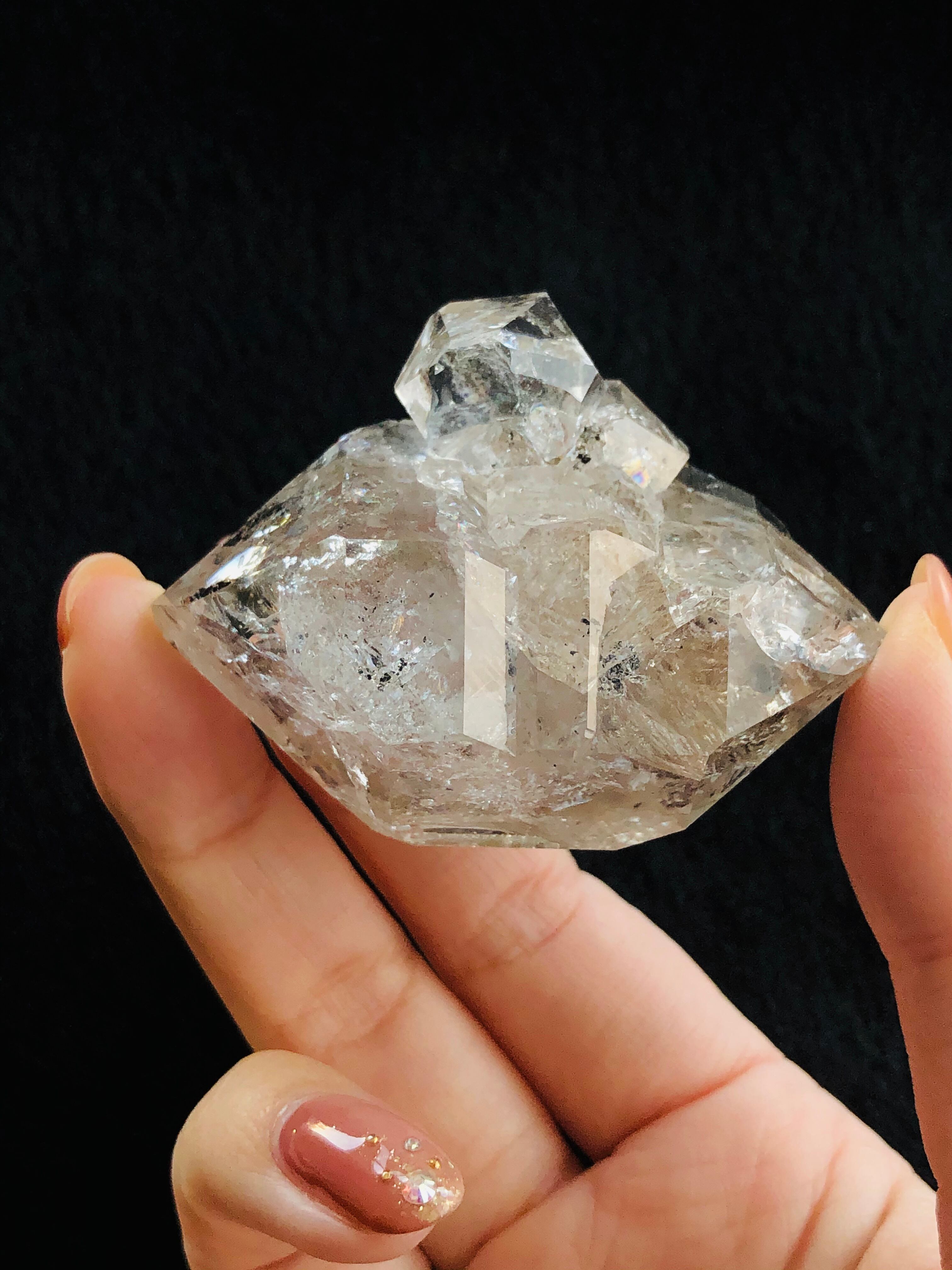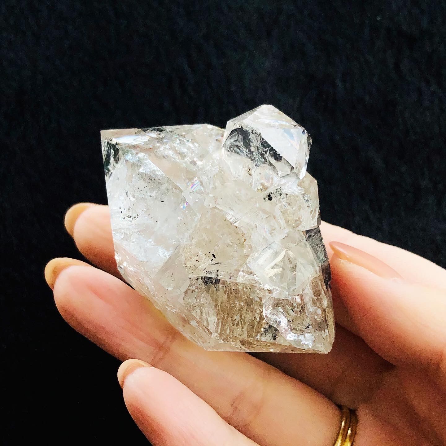 特別な水晶!虹入りハーキマーダイヤモンド原石(赤ちゃんのってます)
