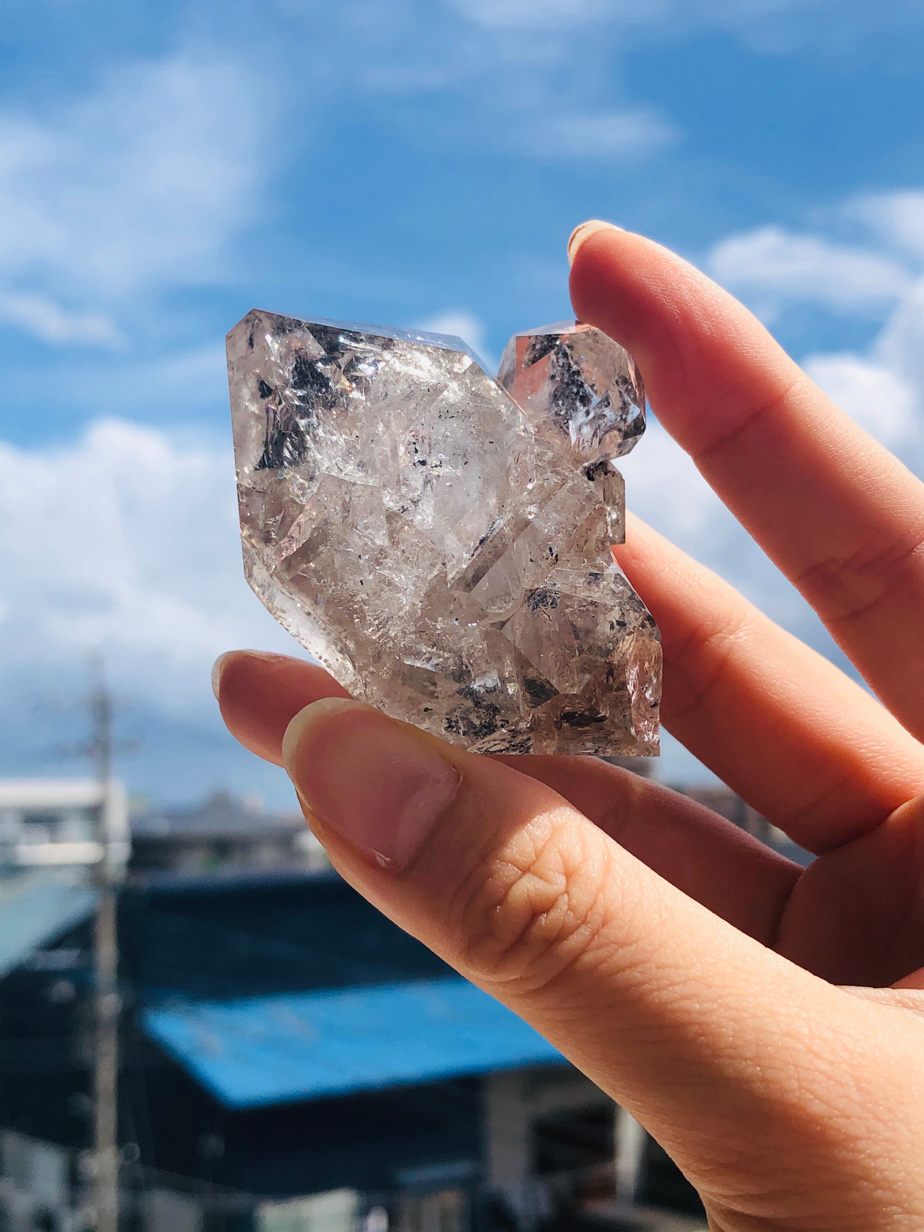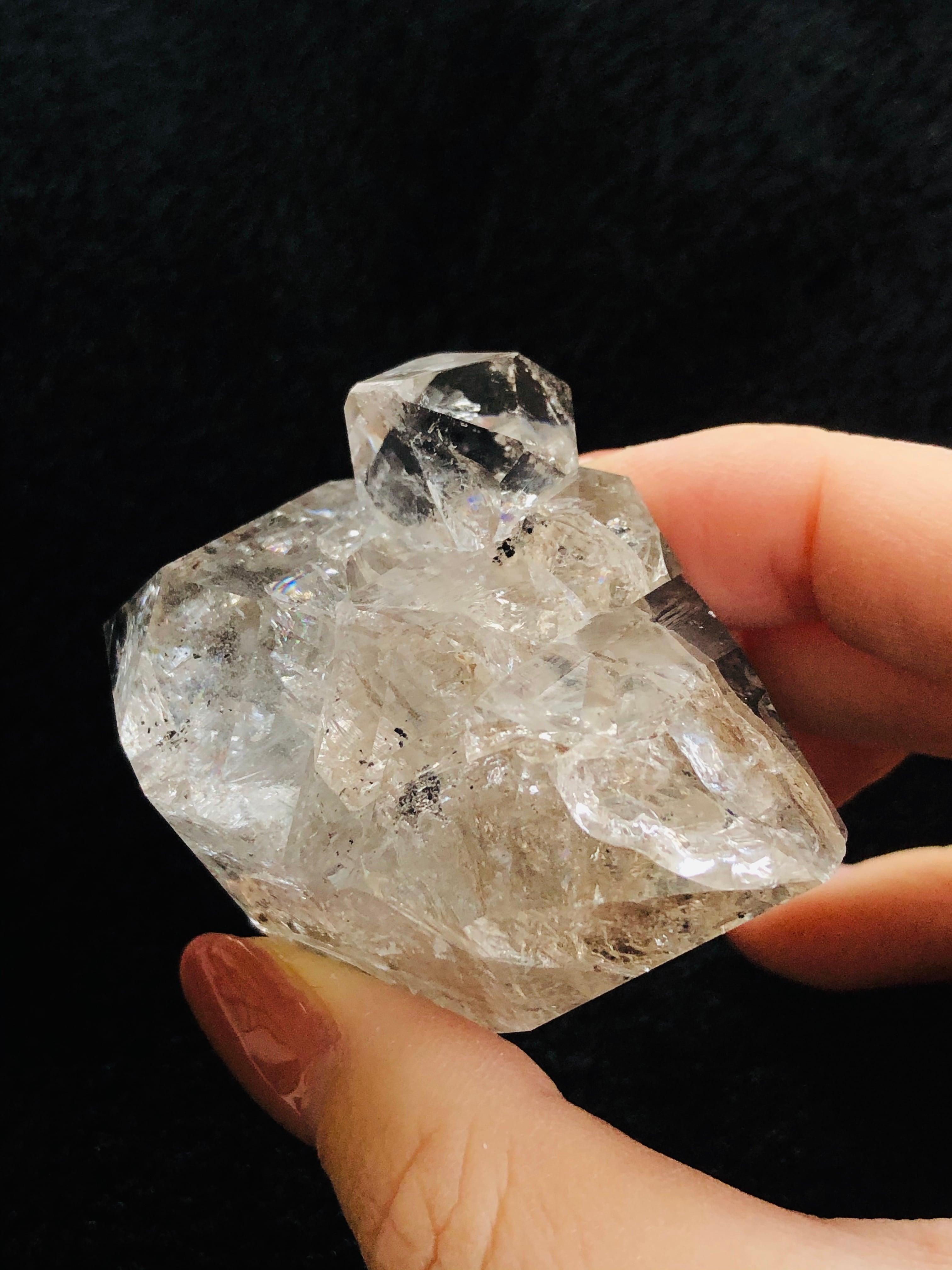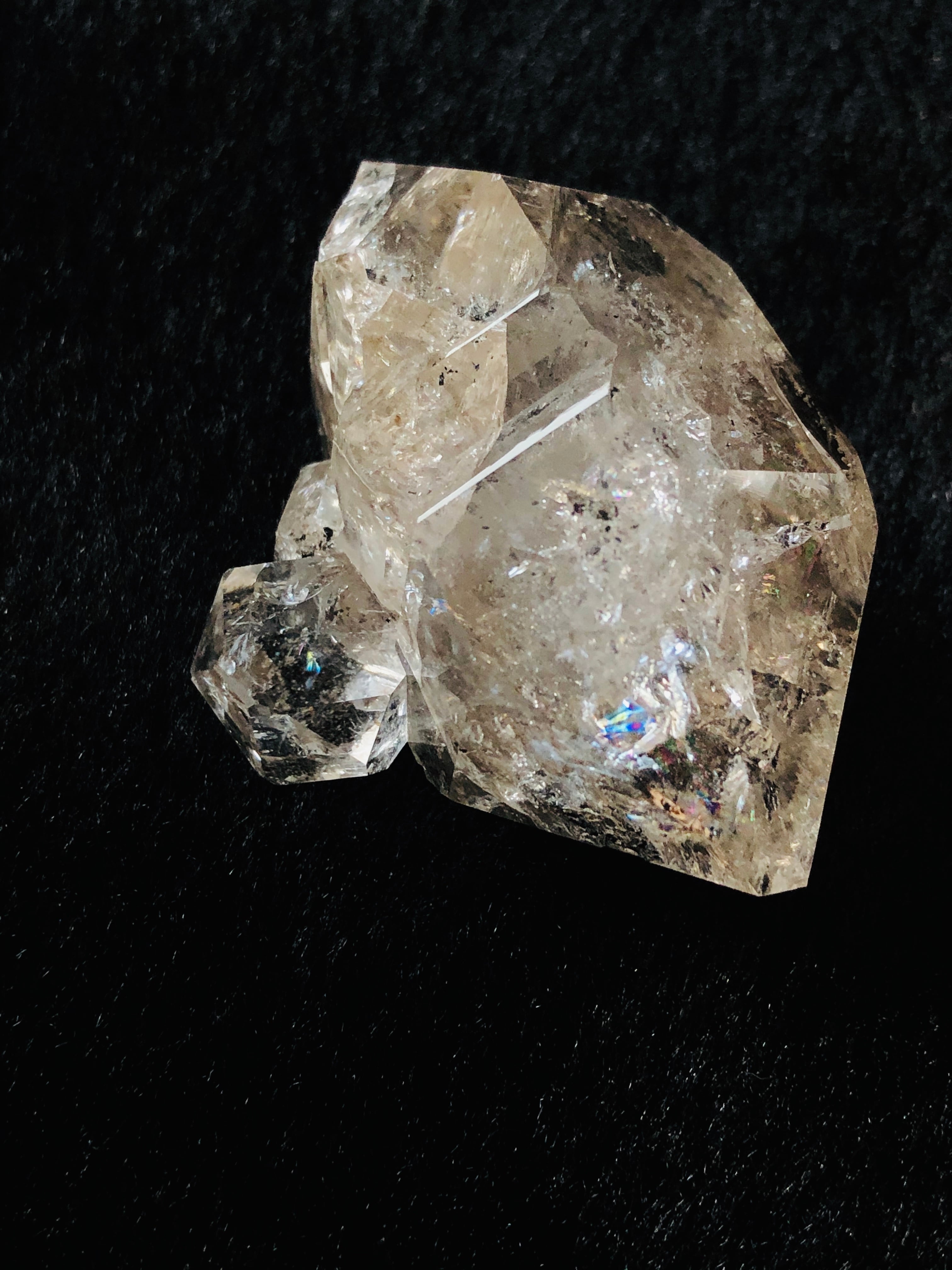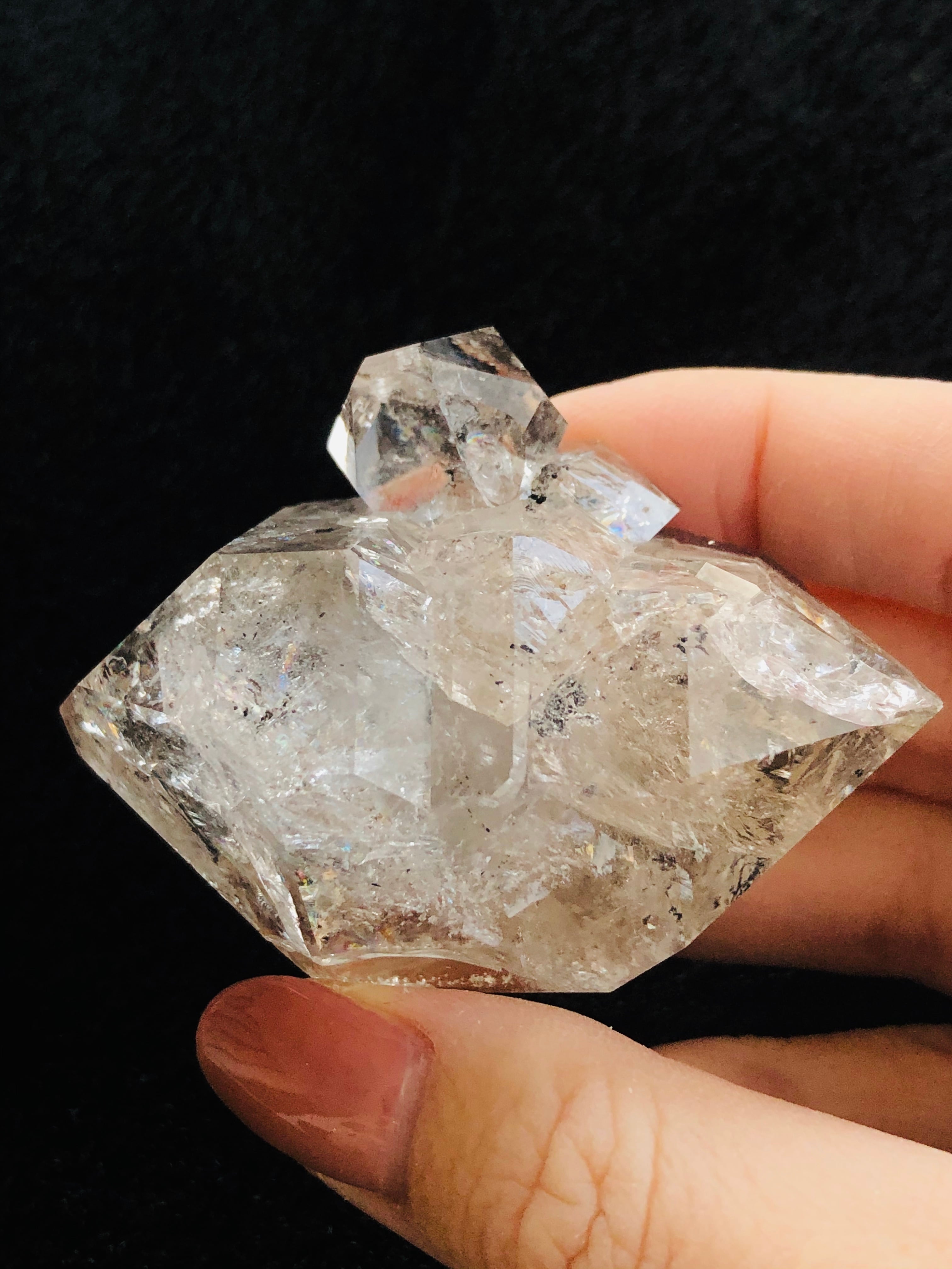 特別な水晶!虹入りハーキマーダイヤモンド原石(赤ちゃんのってます)