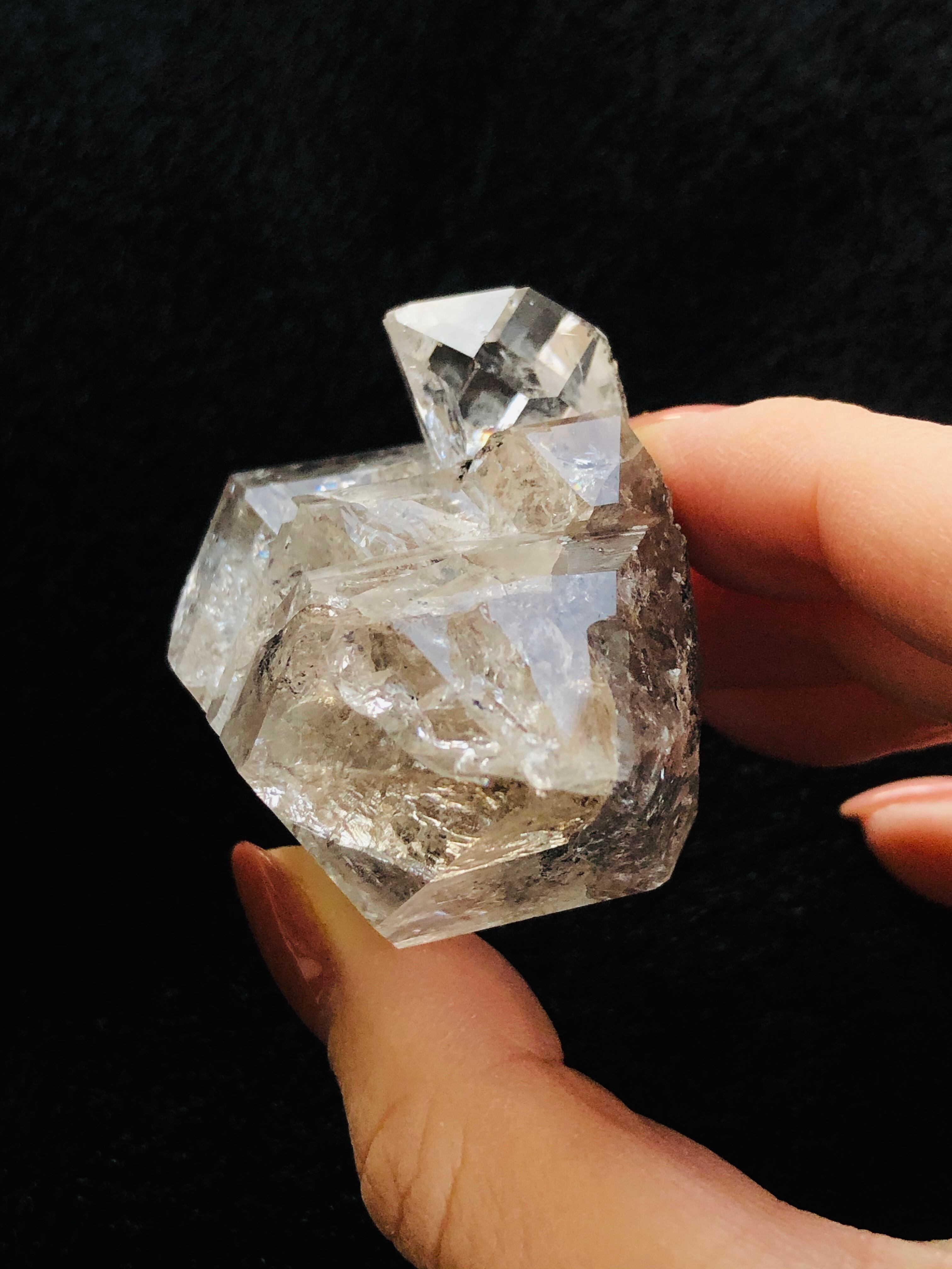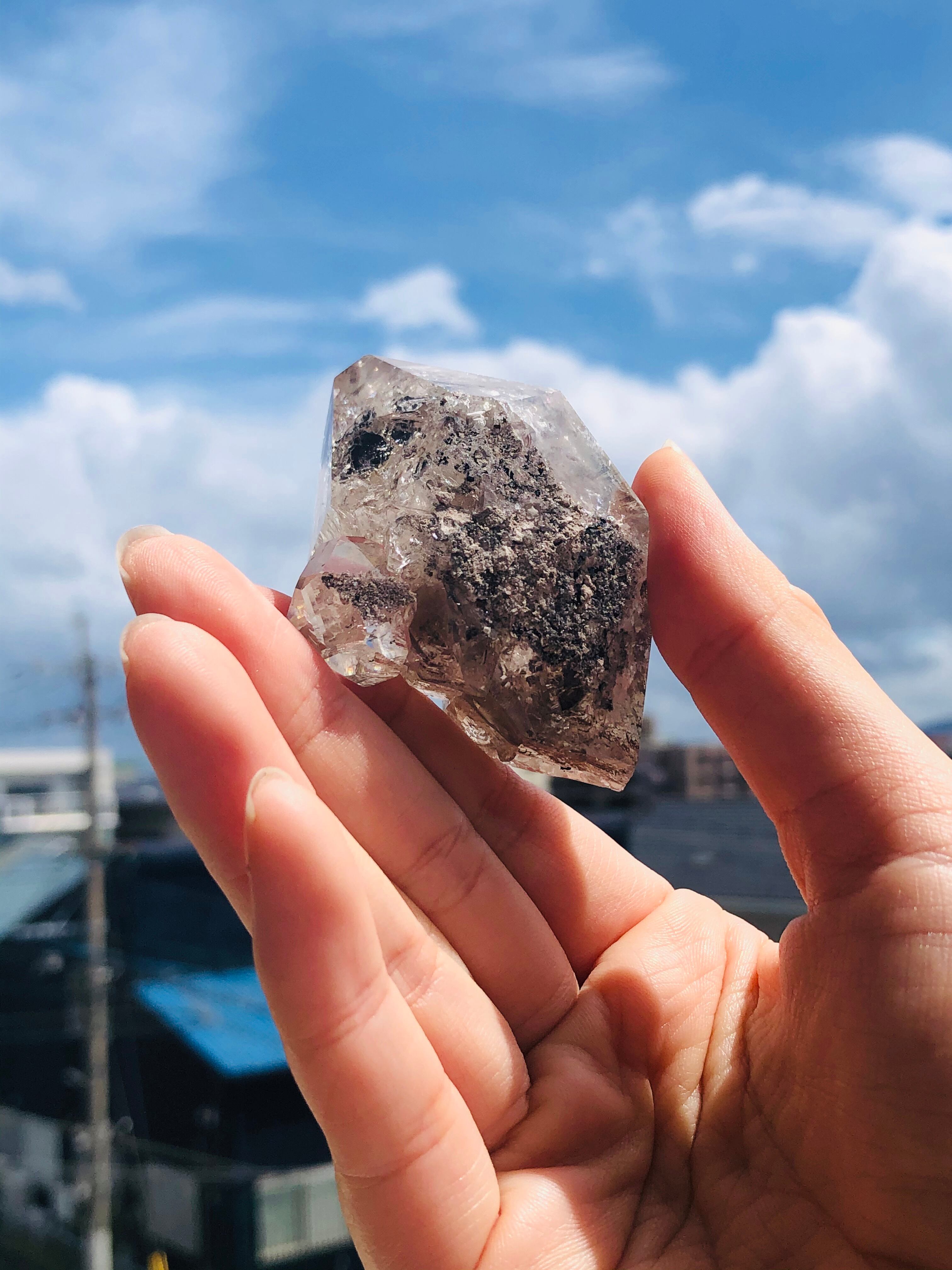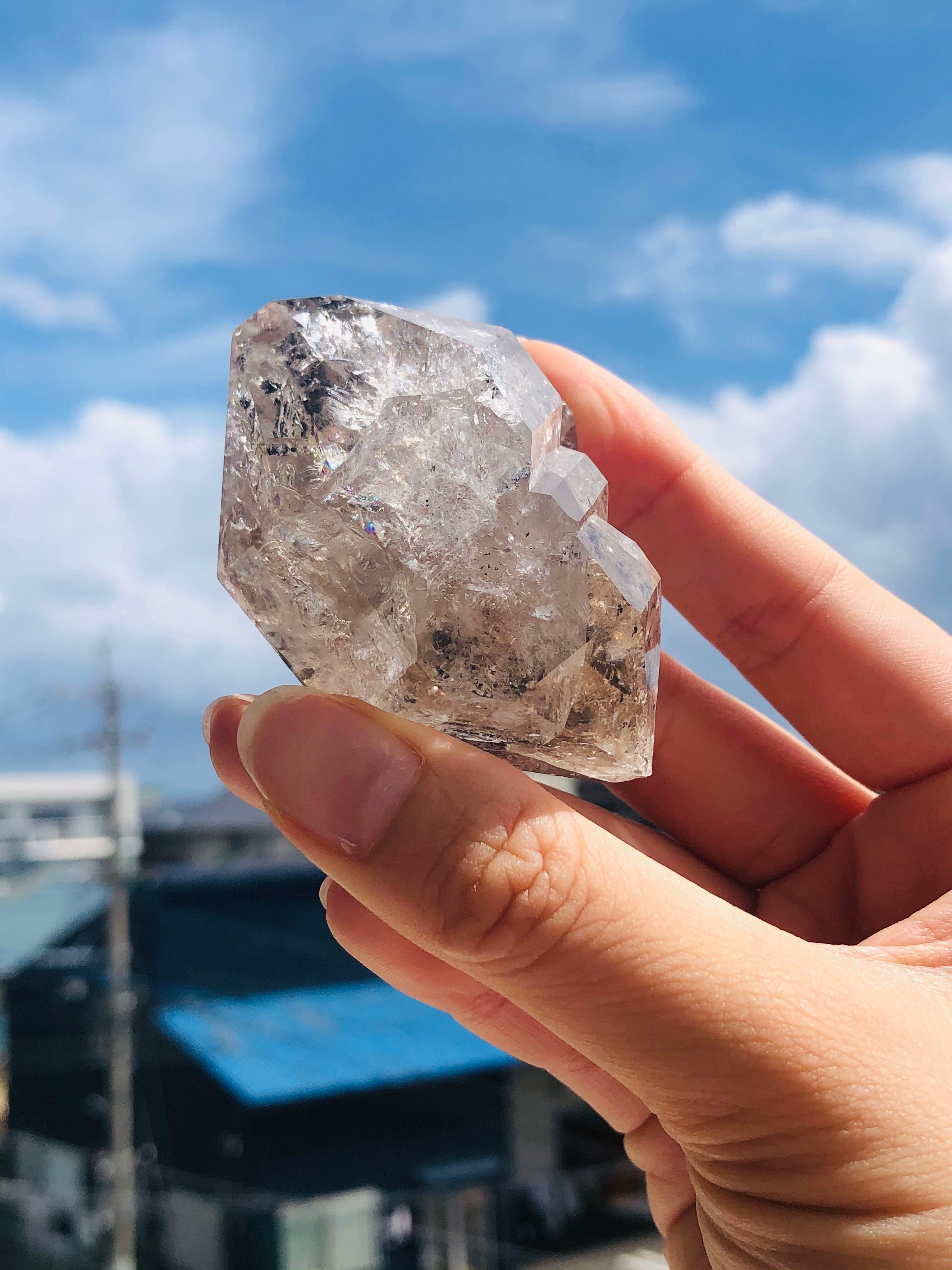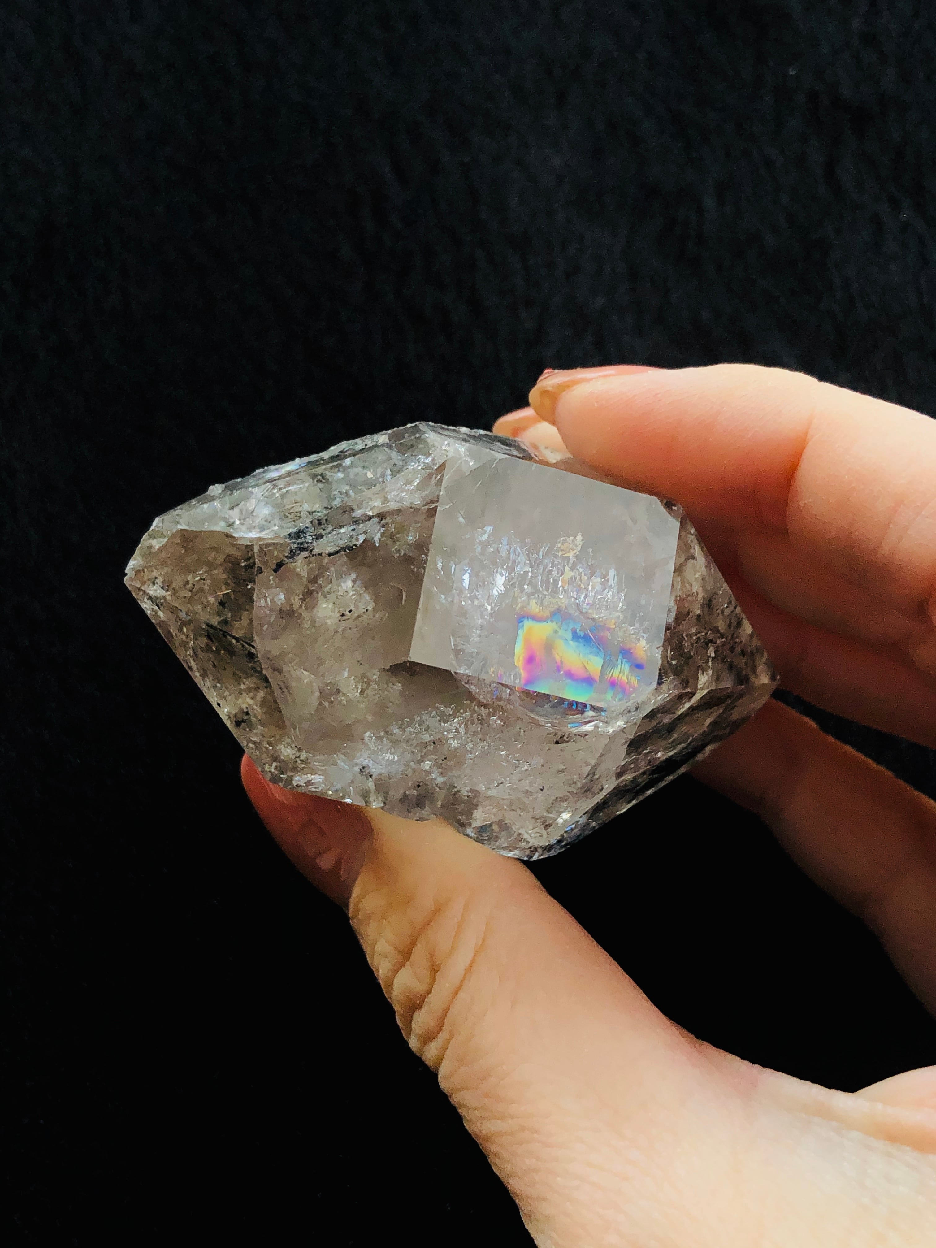 特別な水晶!虹入りハーキマーダイヤモンド原石(赤ちゃんのってます)