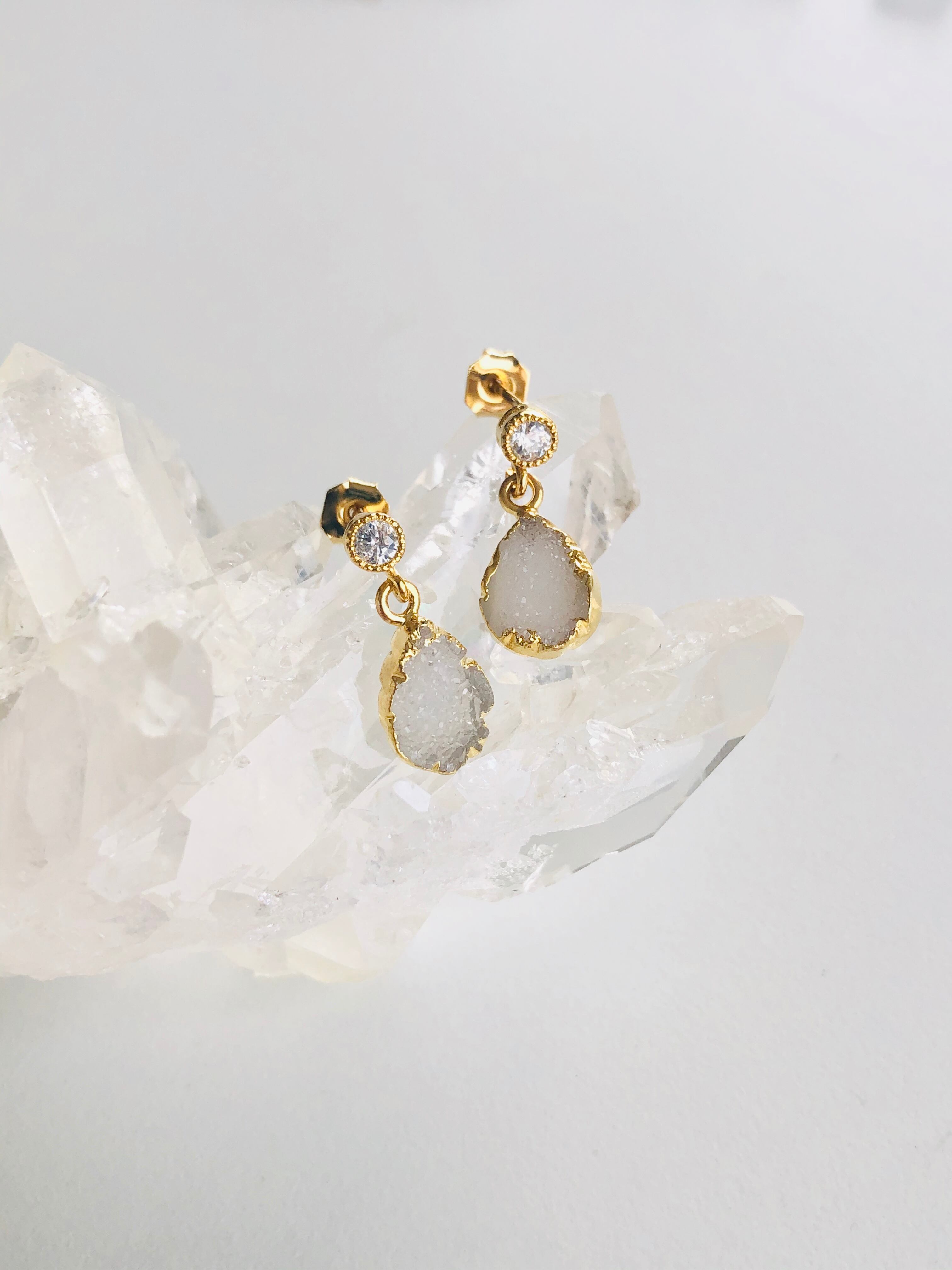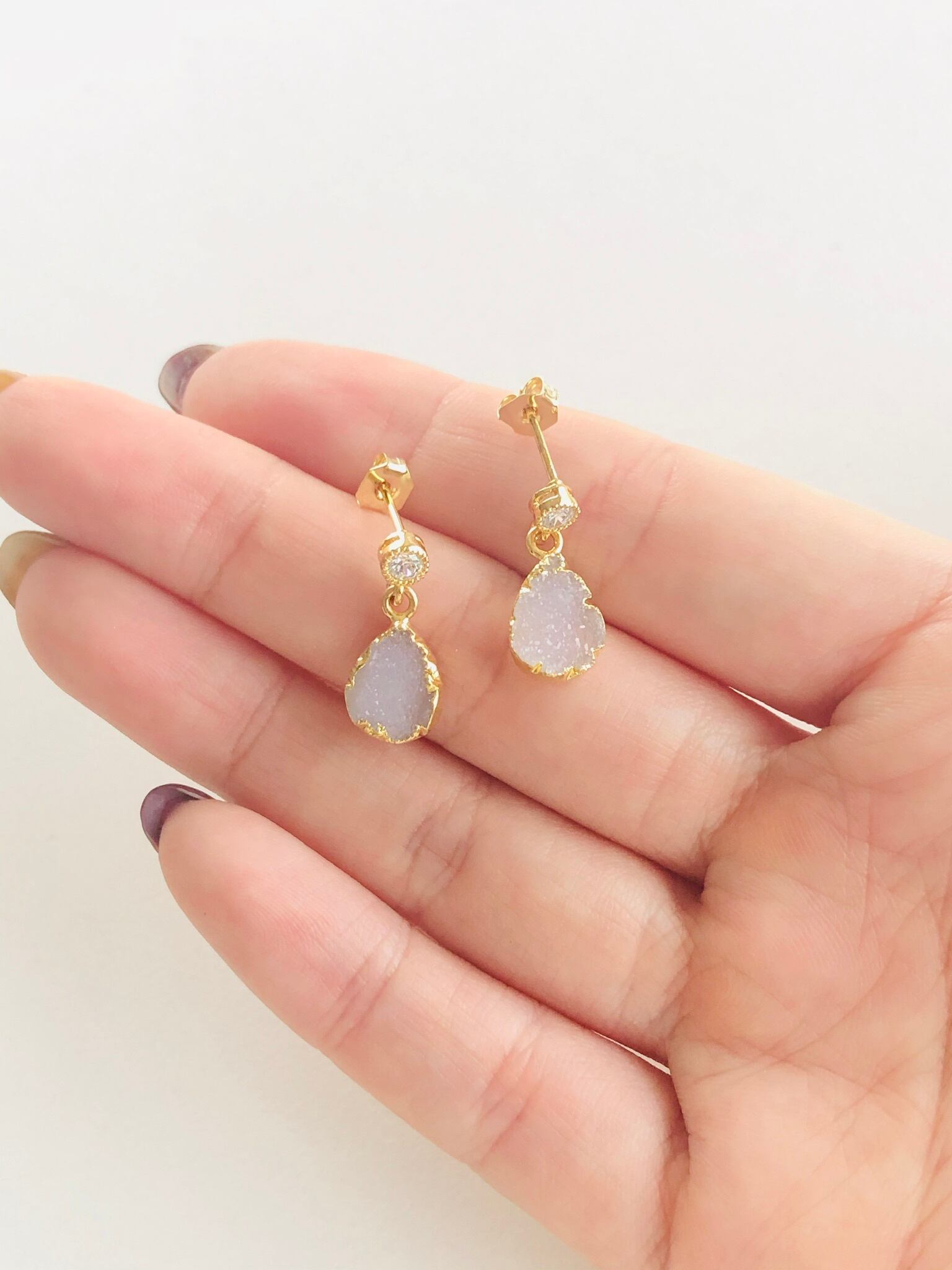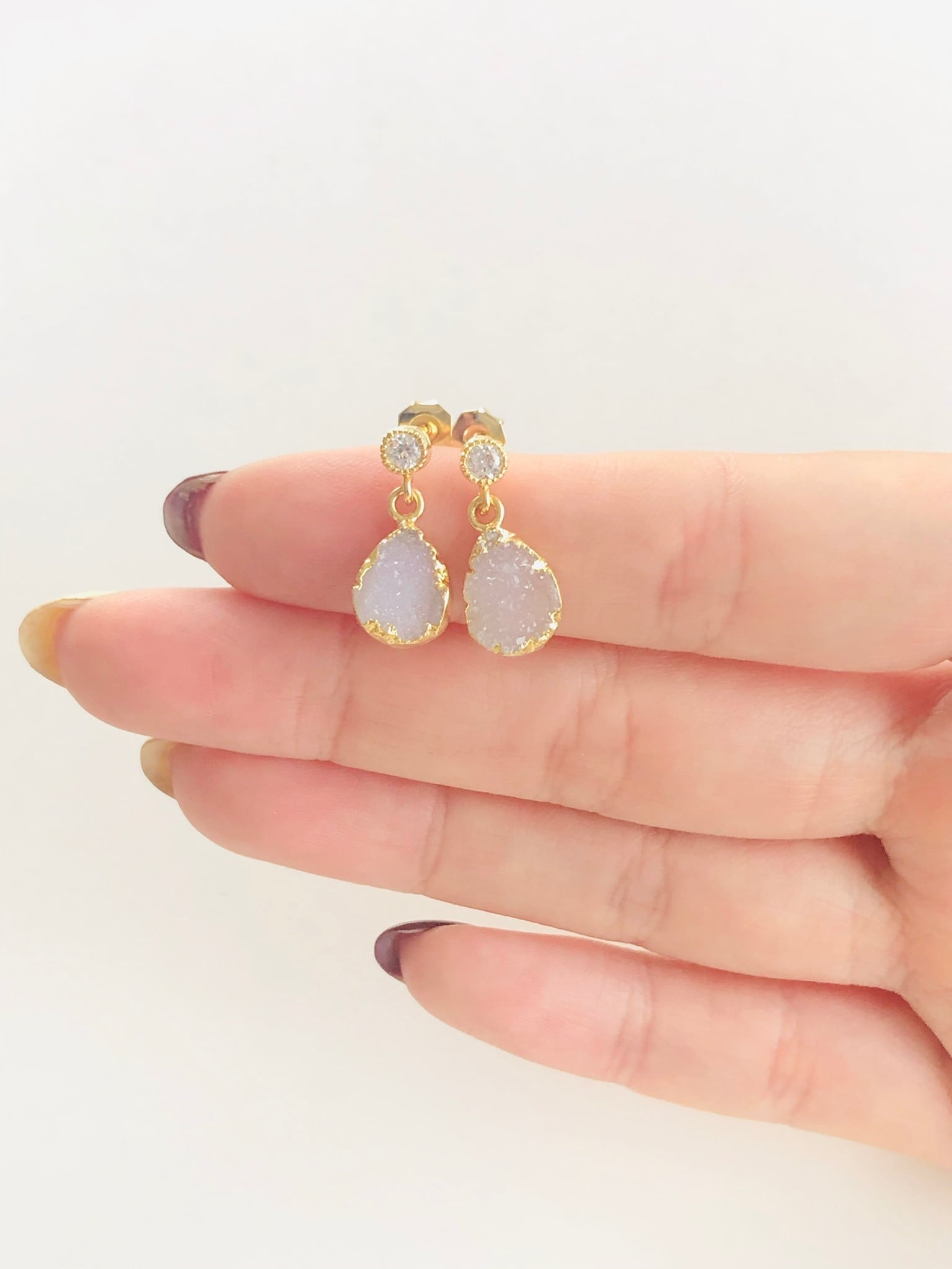 砂糖のようなキラキラ結晶♡ドゥルージーのピアス(雫型)