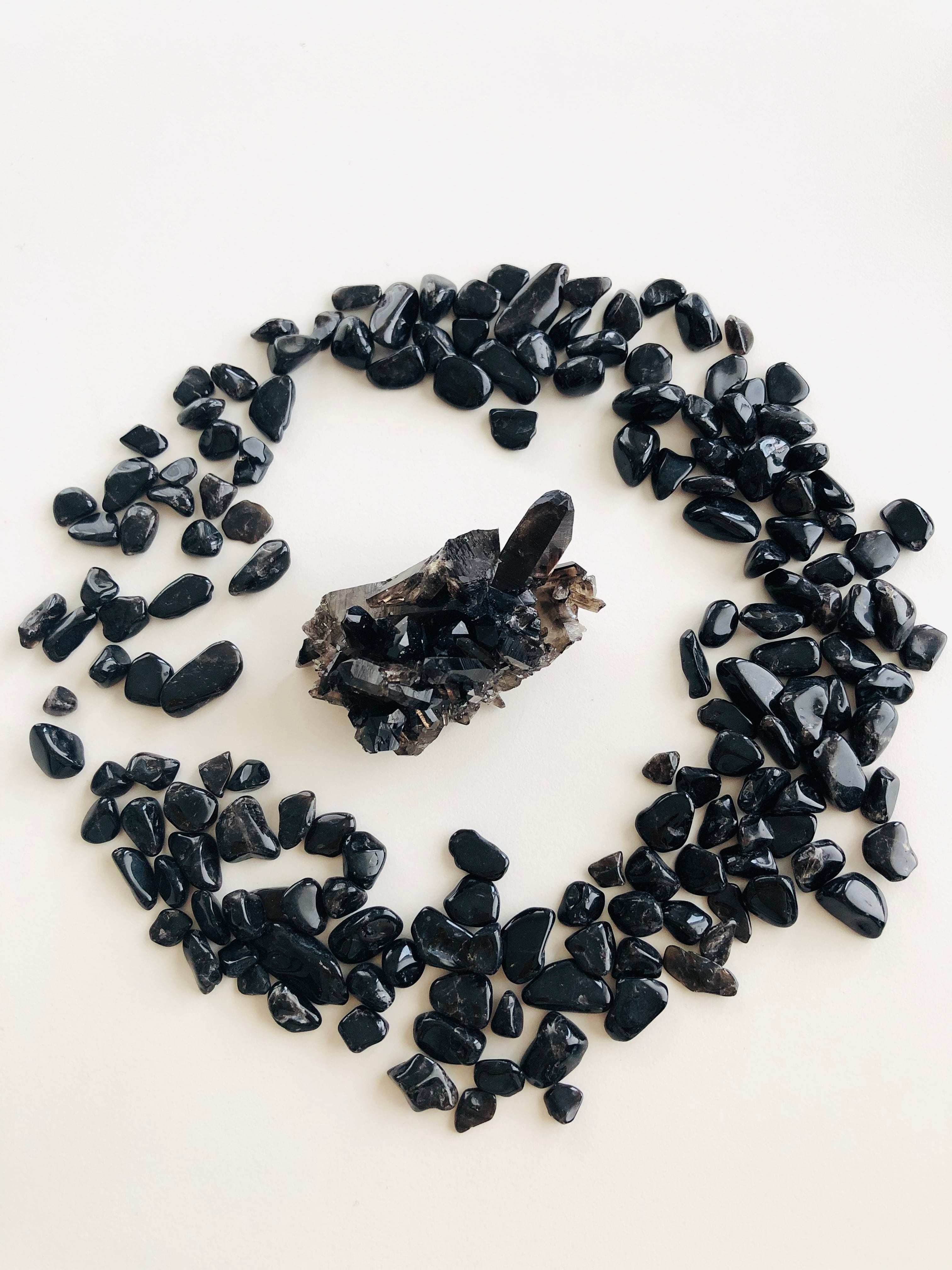黒水晶(モリオン)のクラスター&さざれ石セット。