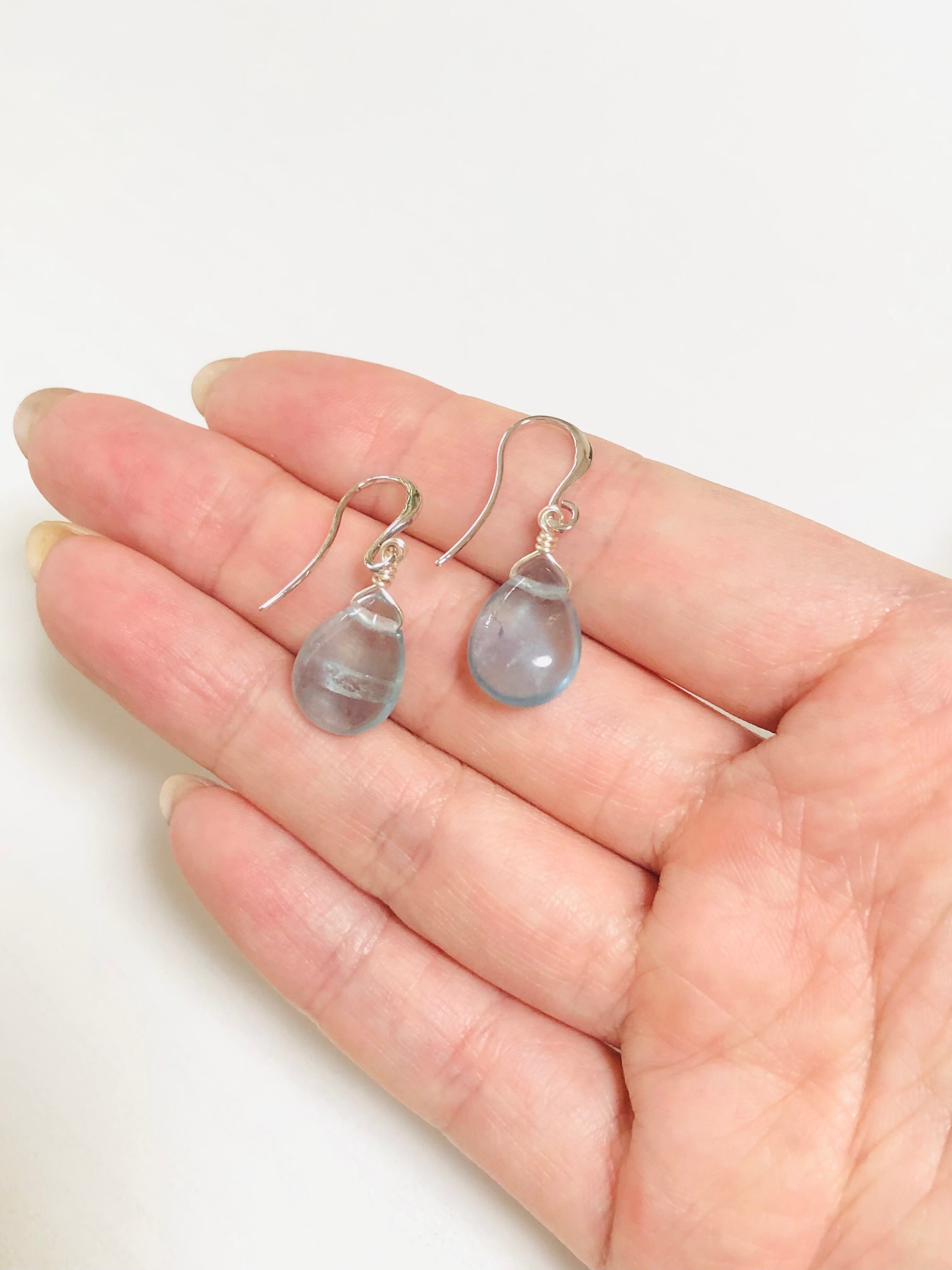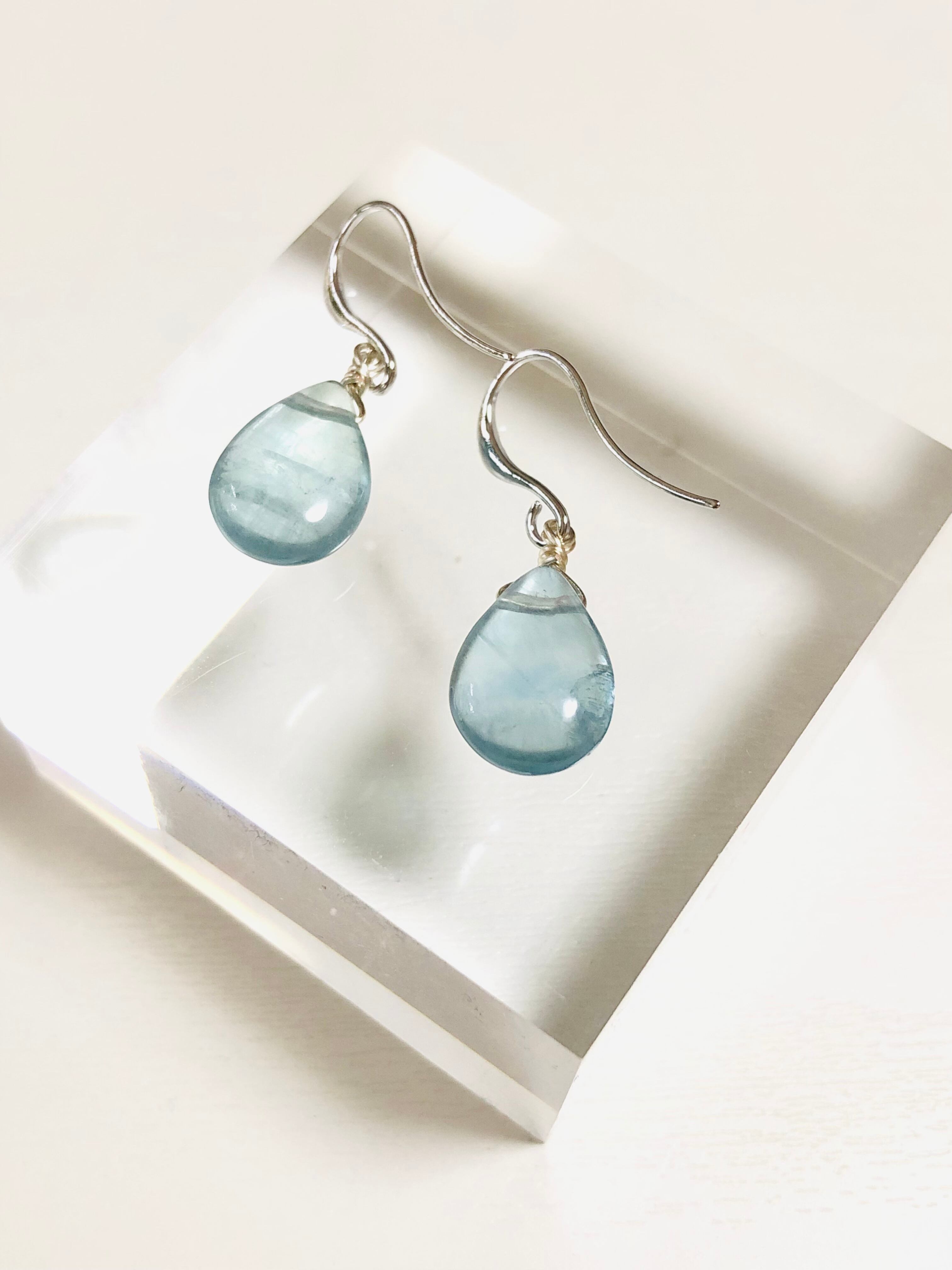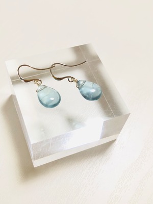 涼しげなブルーフローライトの大きめな雫ピアスです。
