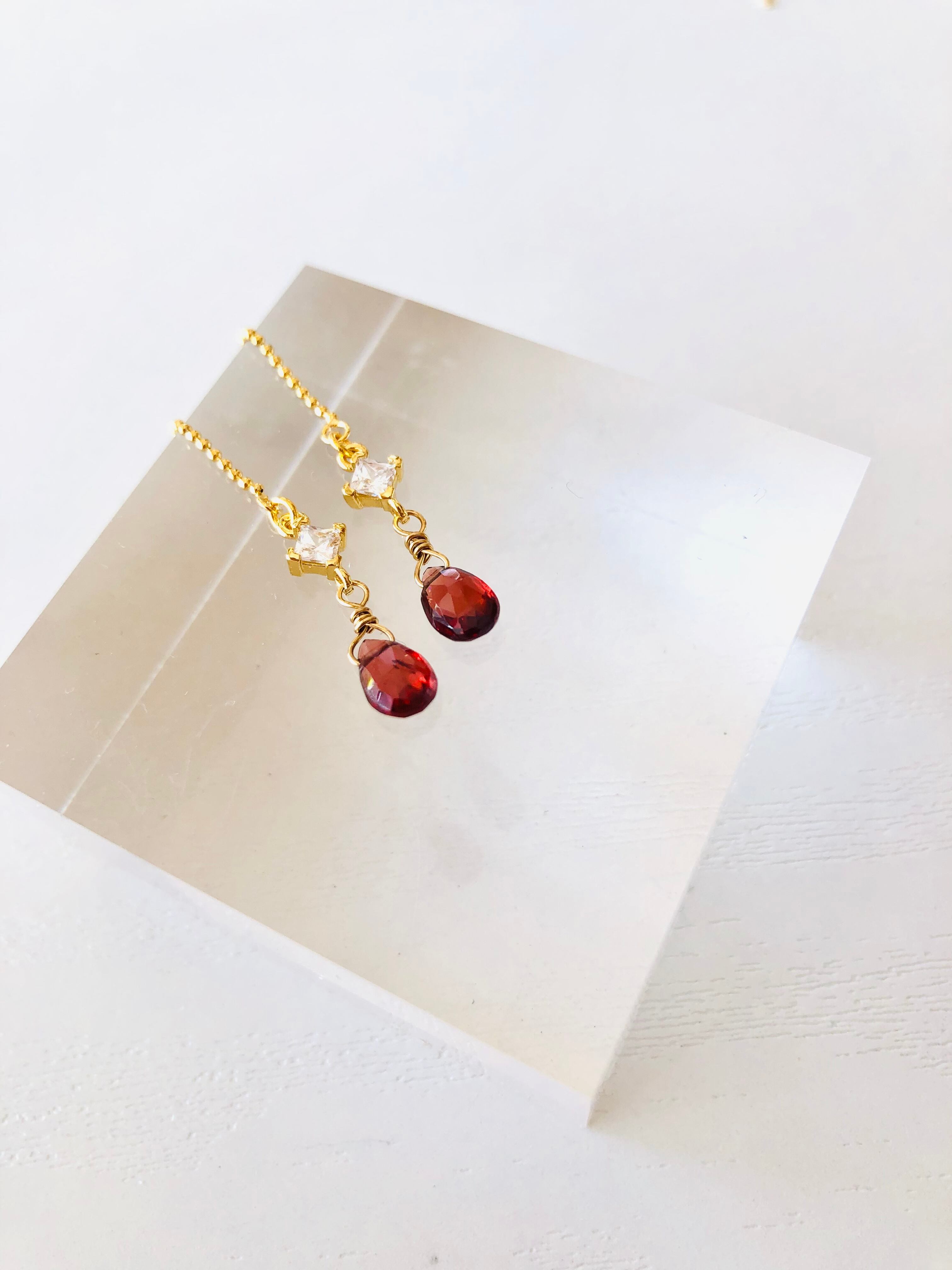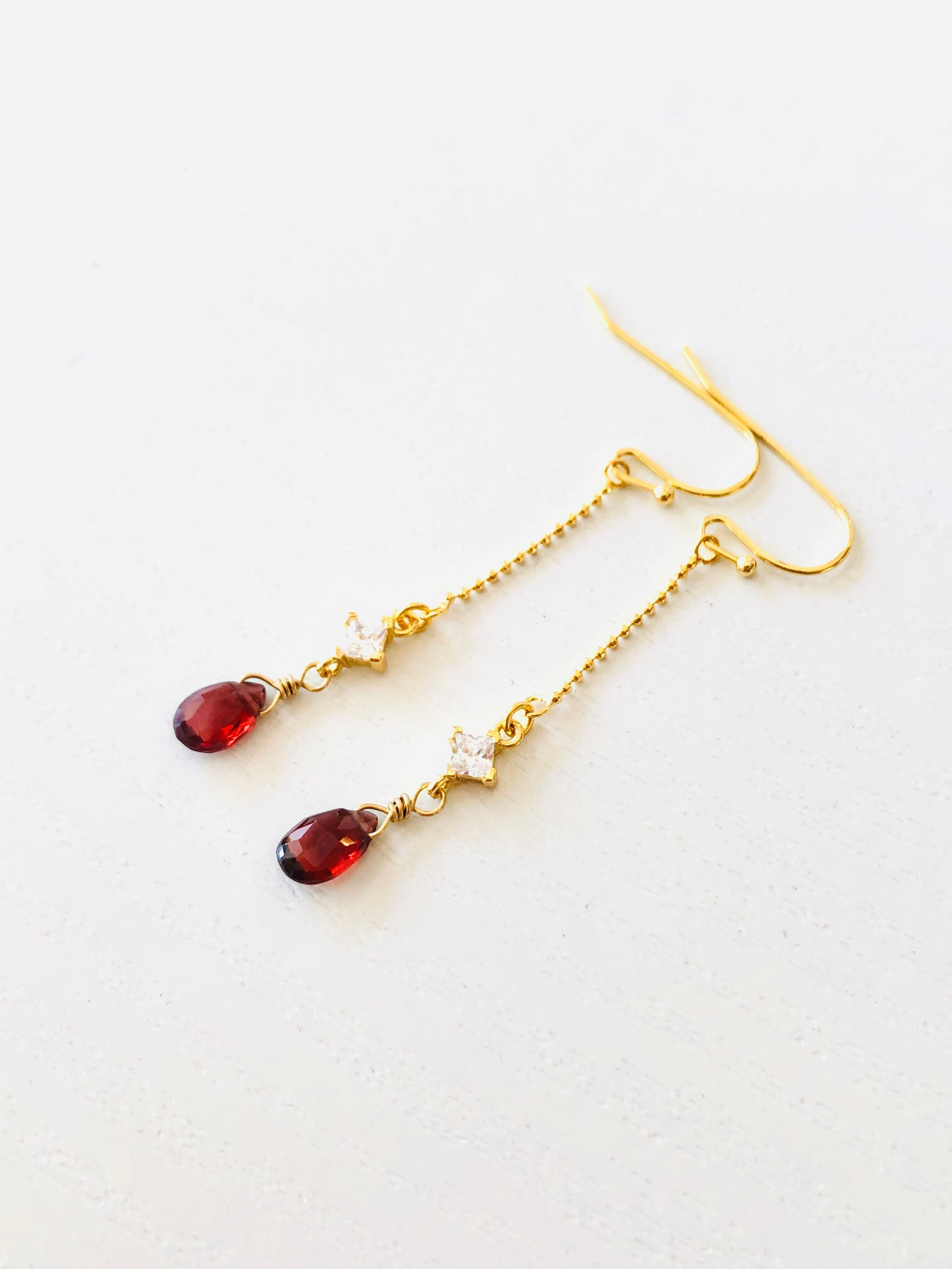宝石質ガーネットのゆらゆらピアス