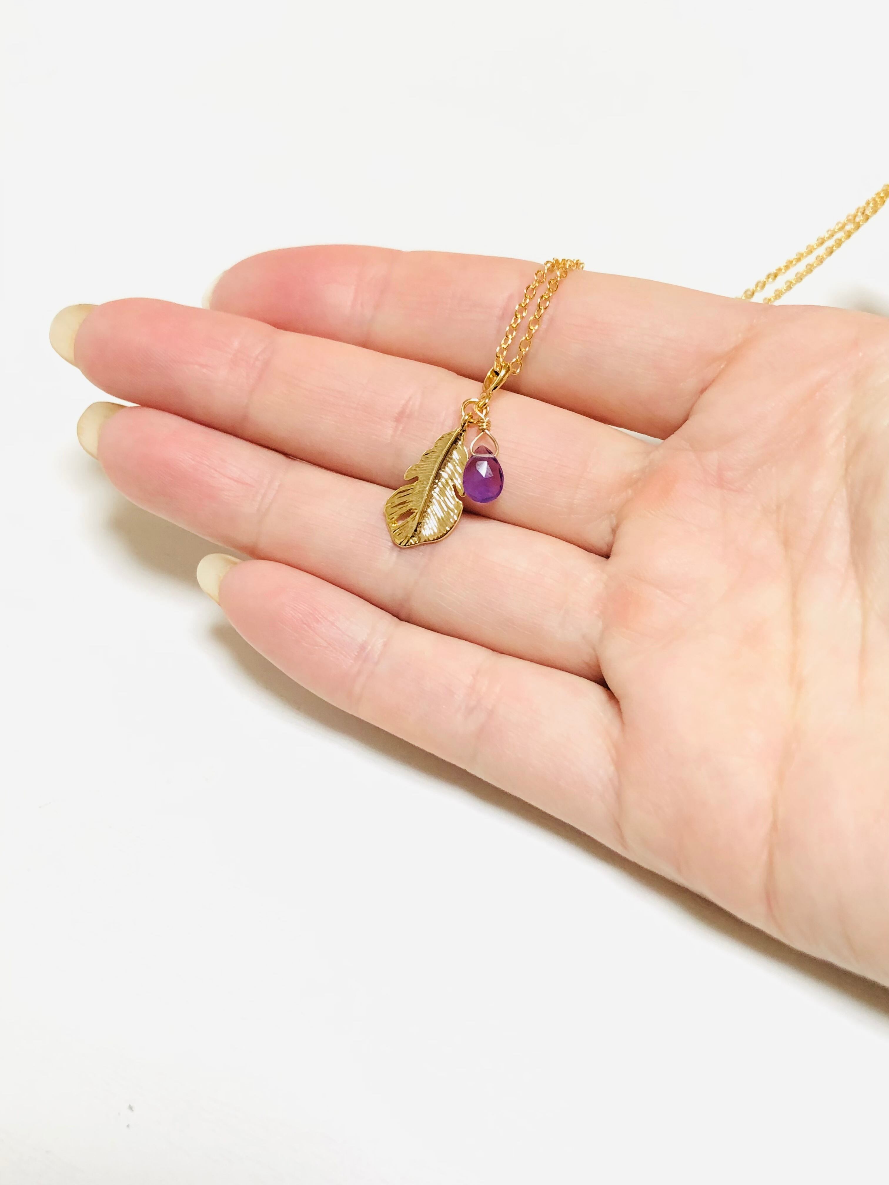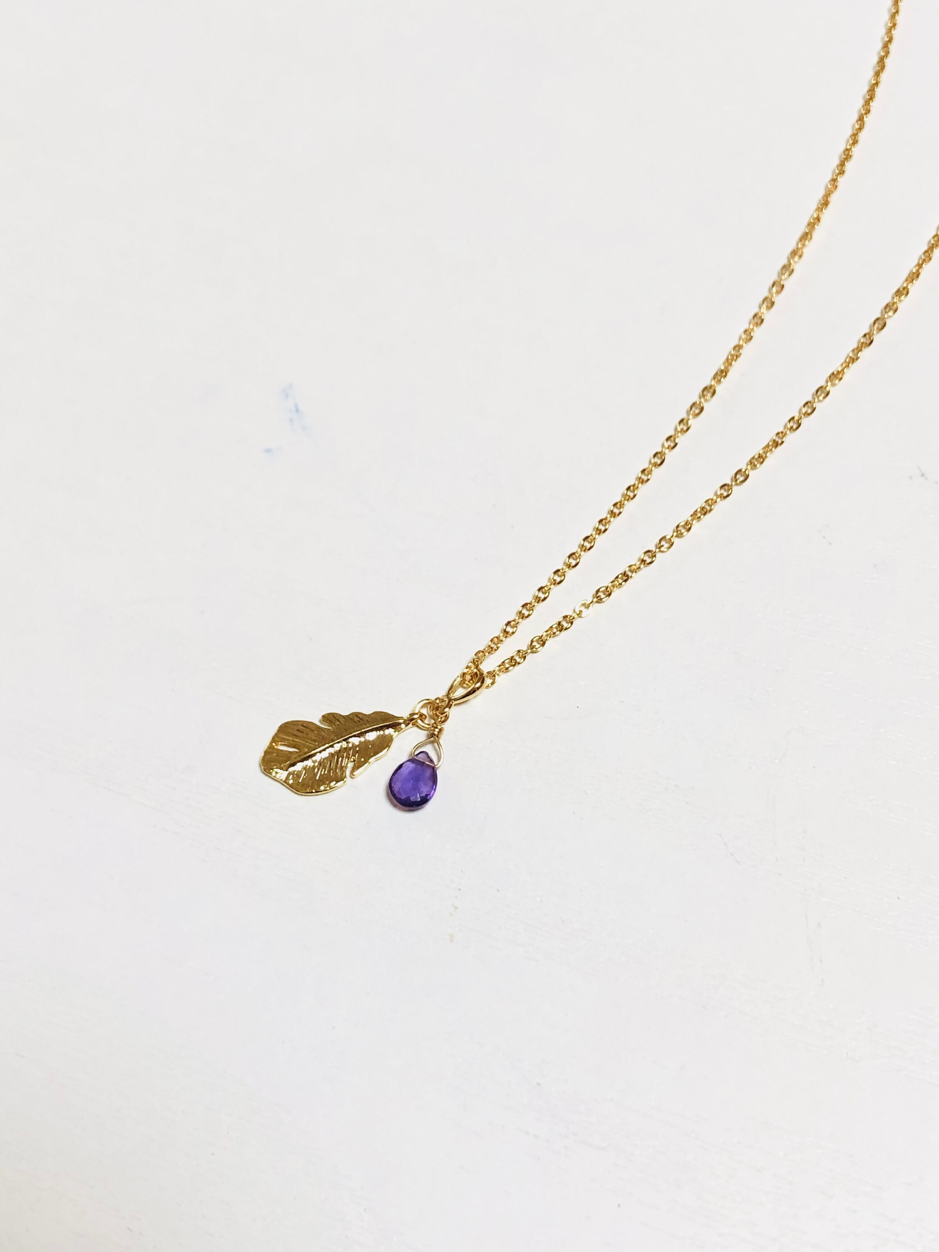 宝石質アメジストと羽根のネックレス