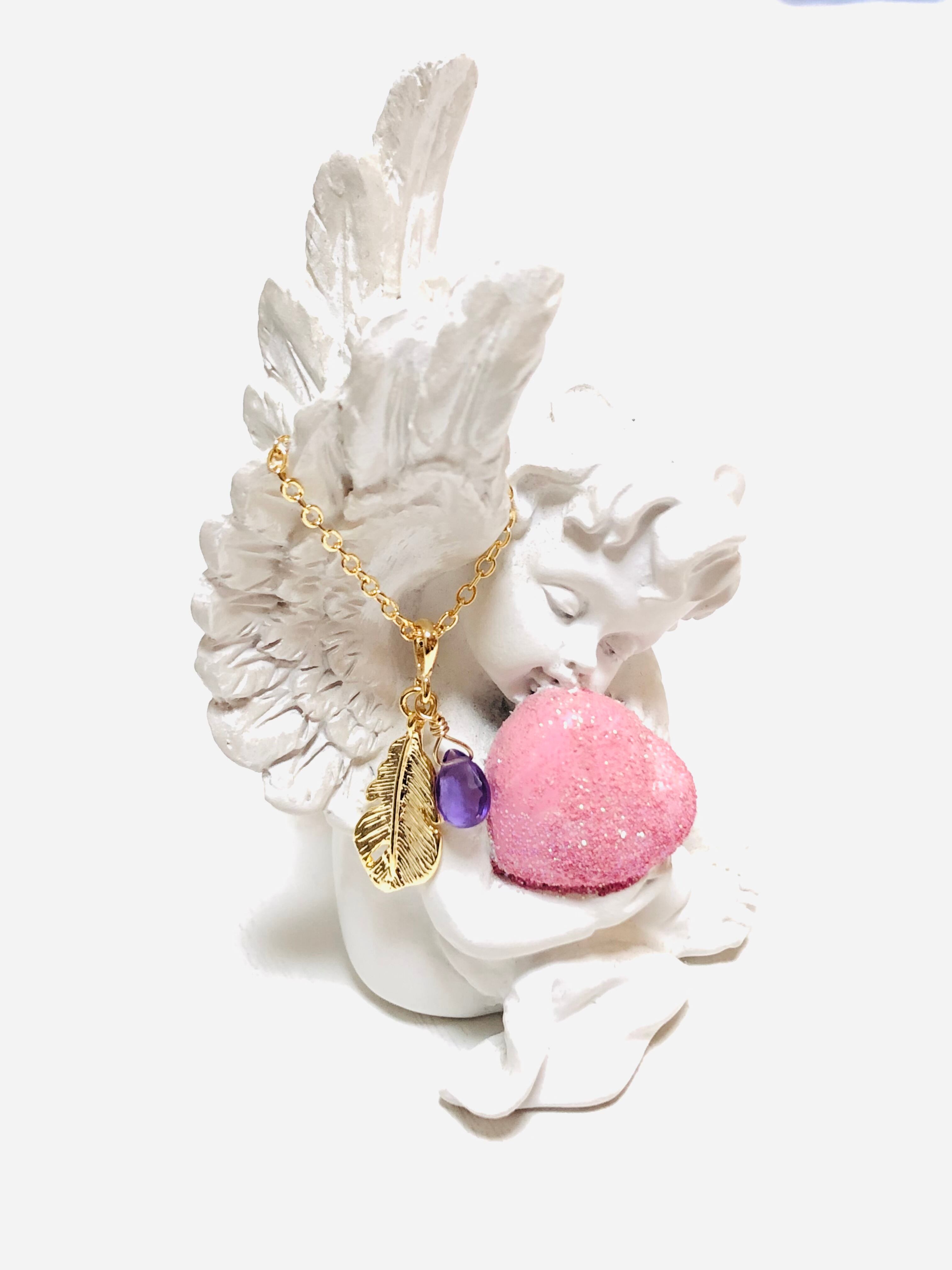 アメジストと羽根のネックレスです。