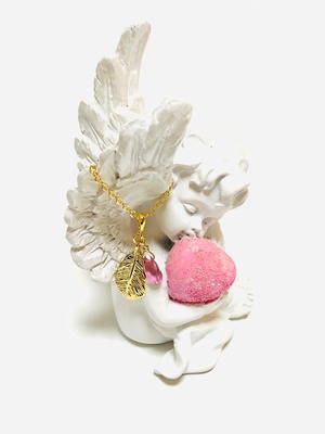 ピンクトパーズと羽根のネックレスです。