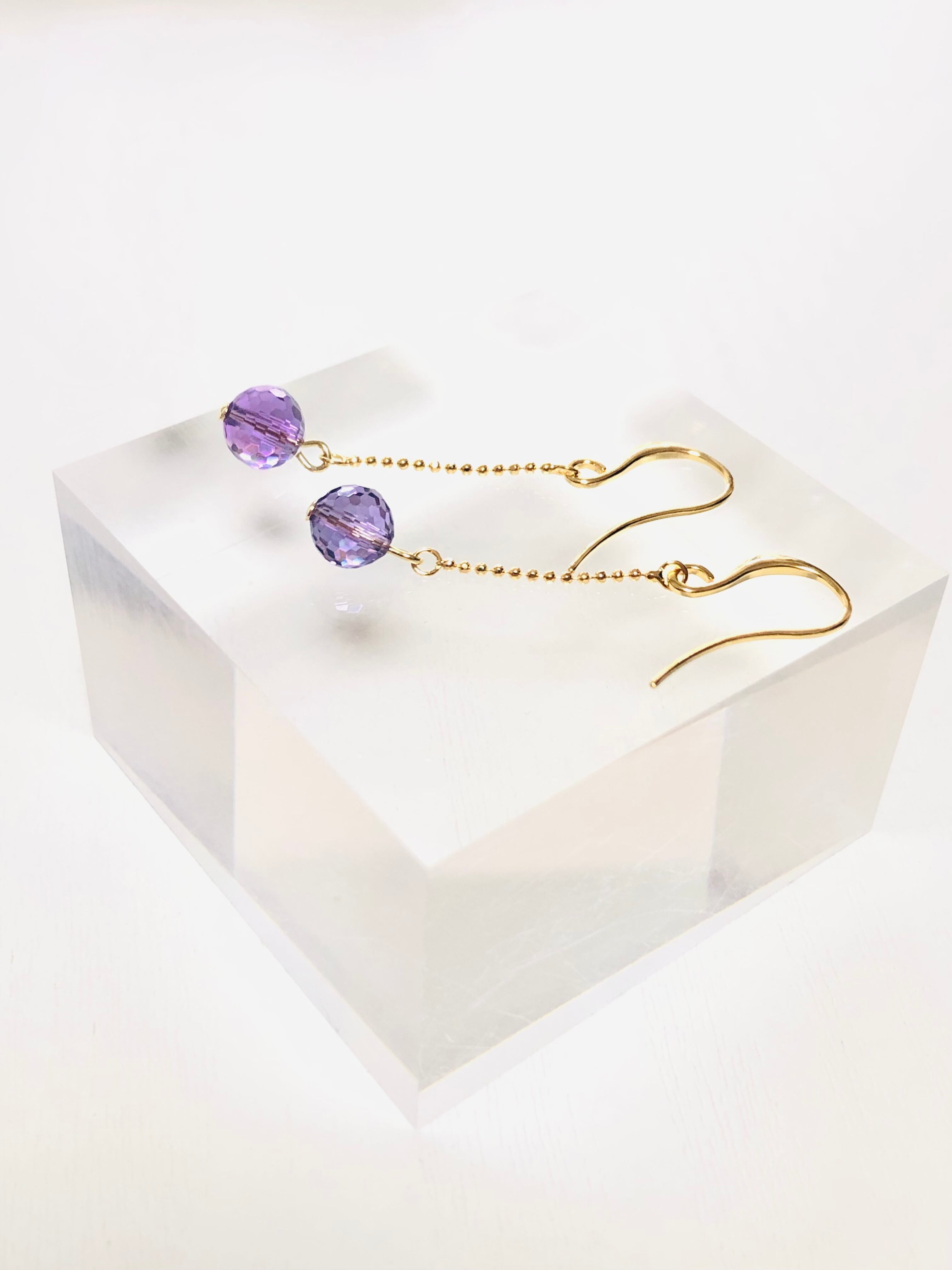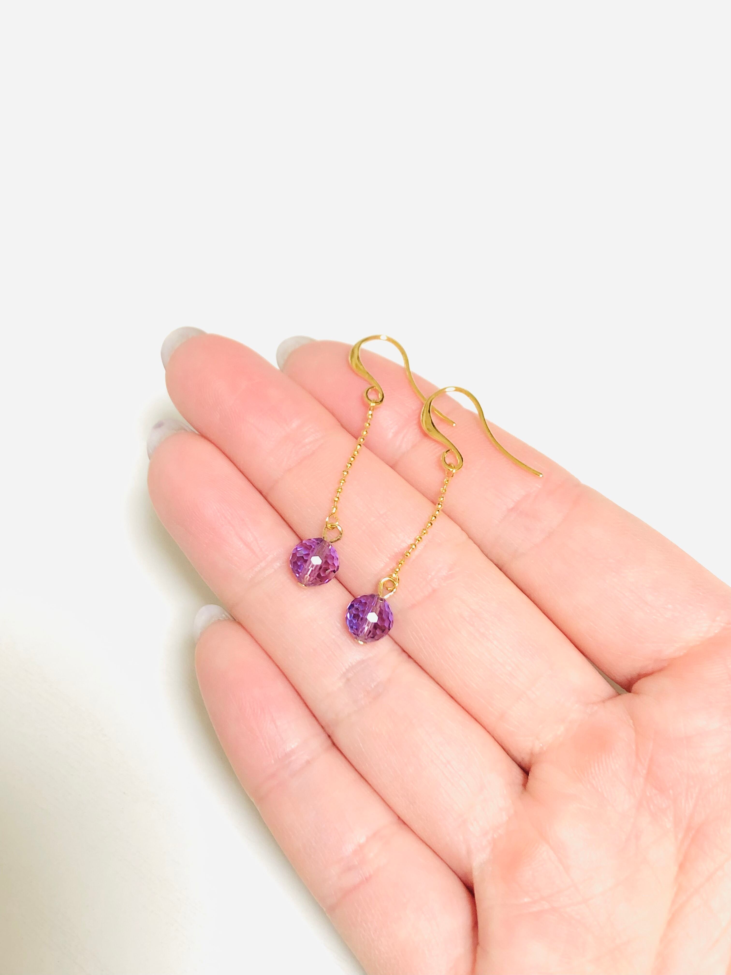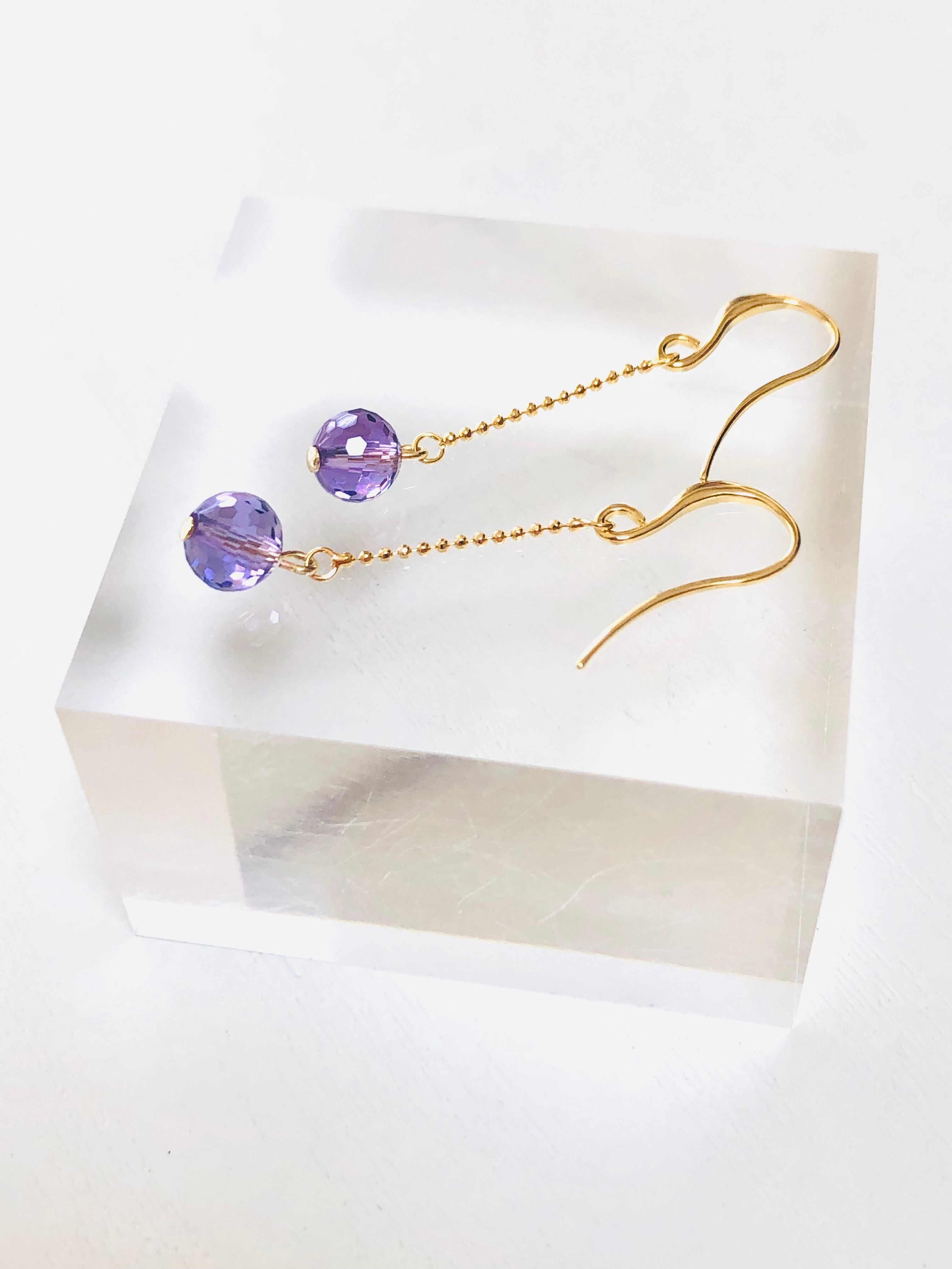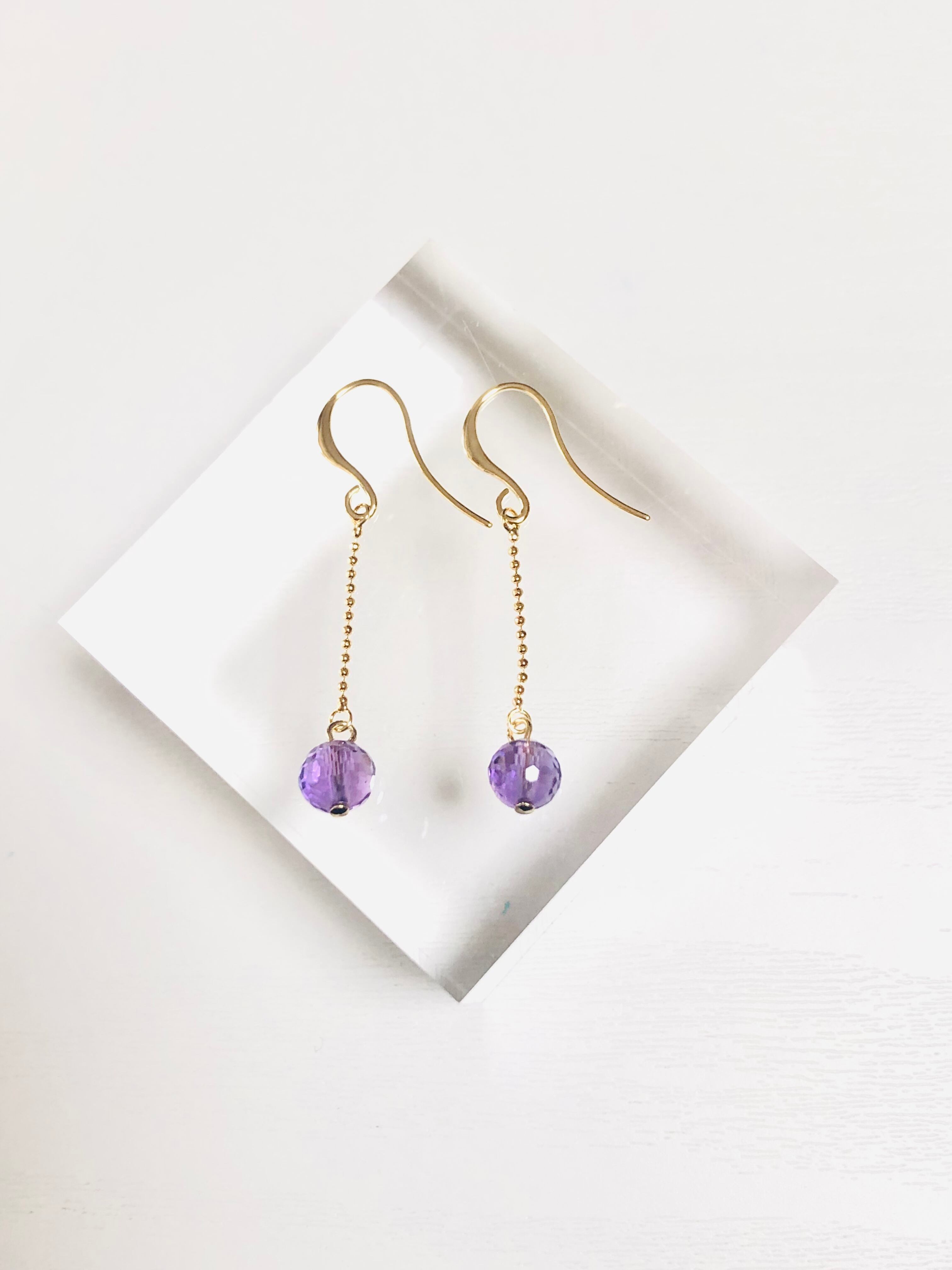 アメジストのミラーボールピアス(ゴールド金具)