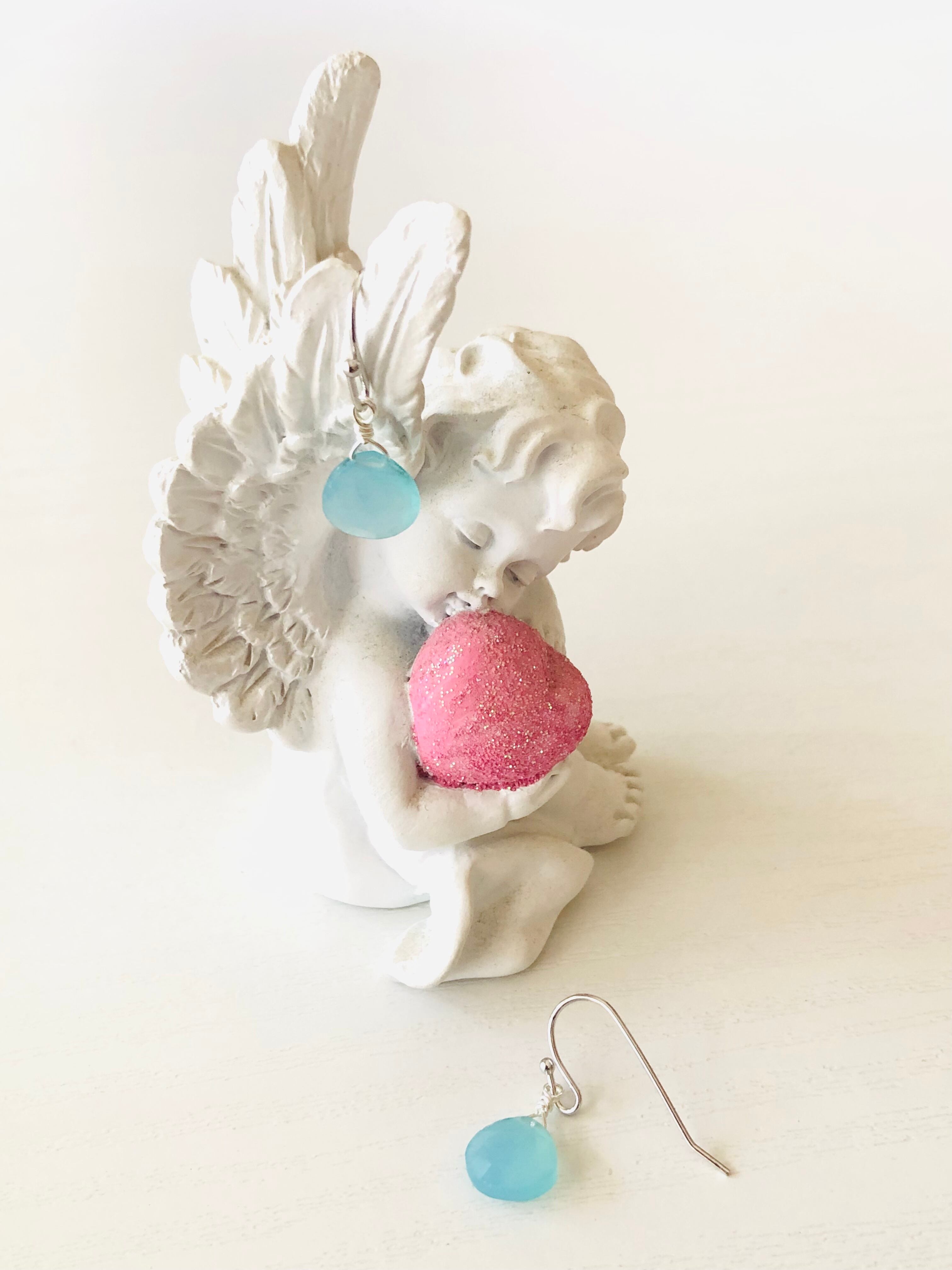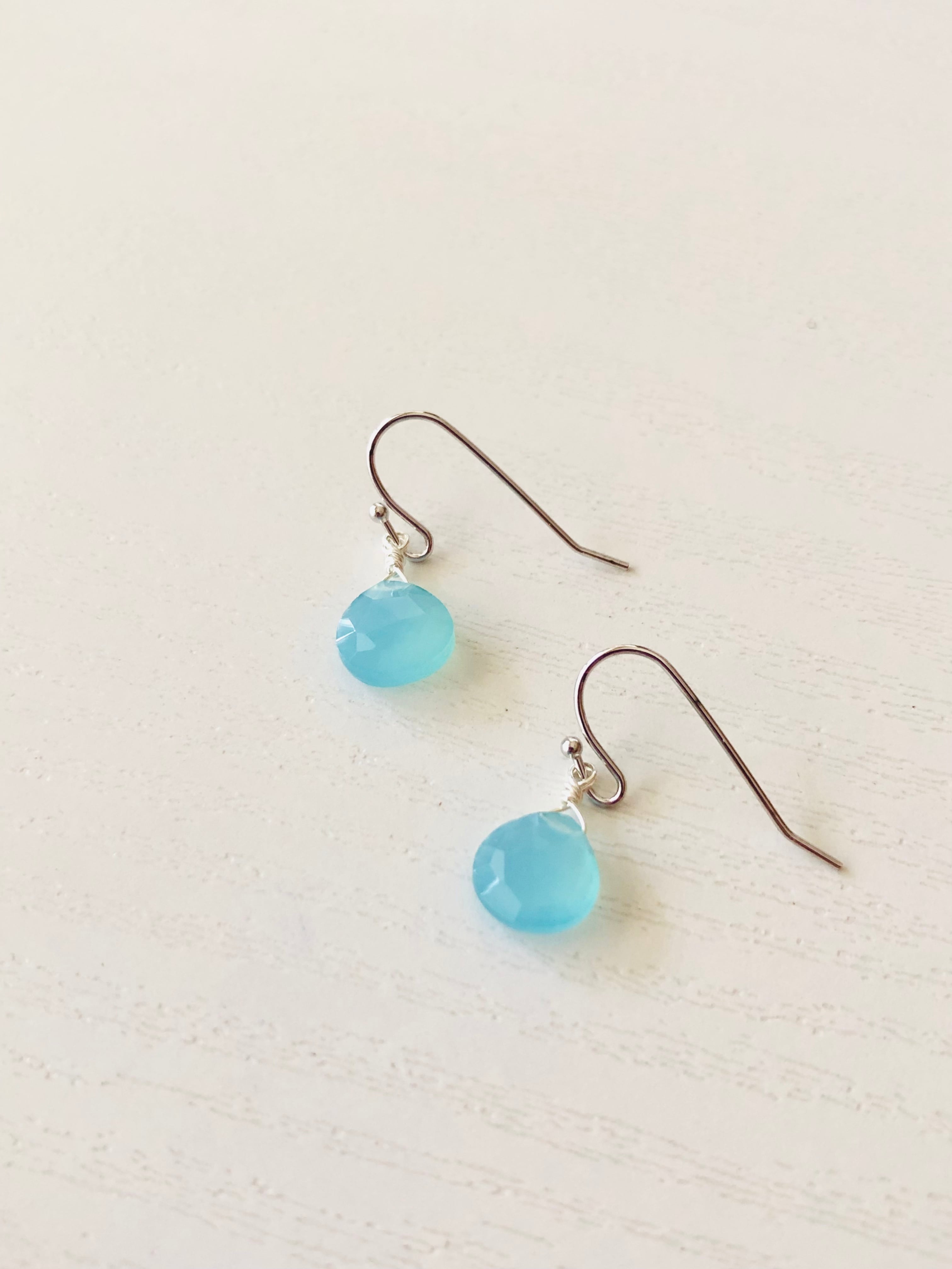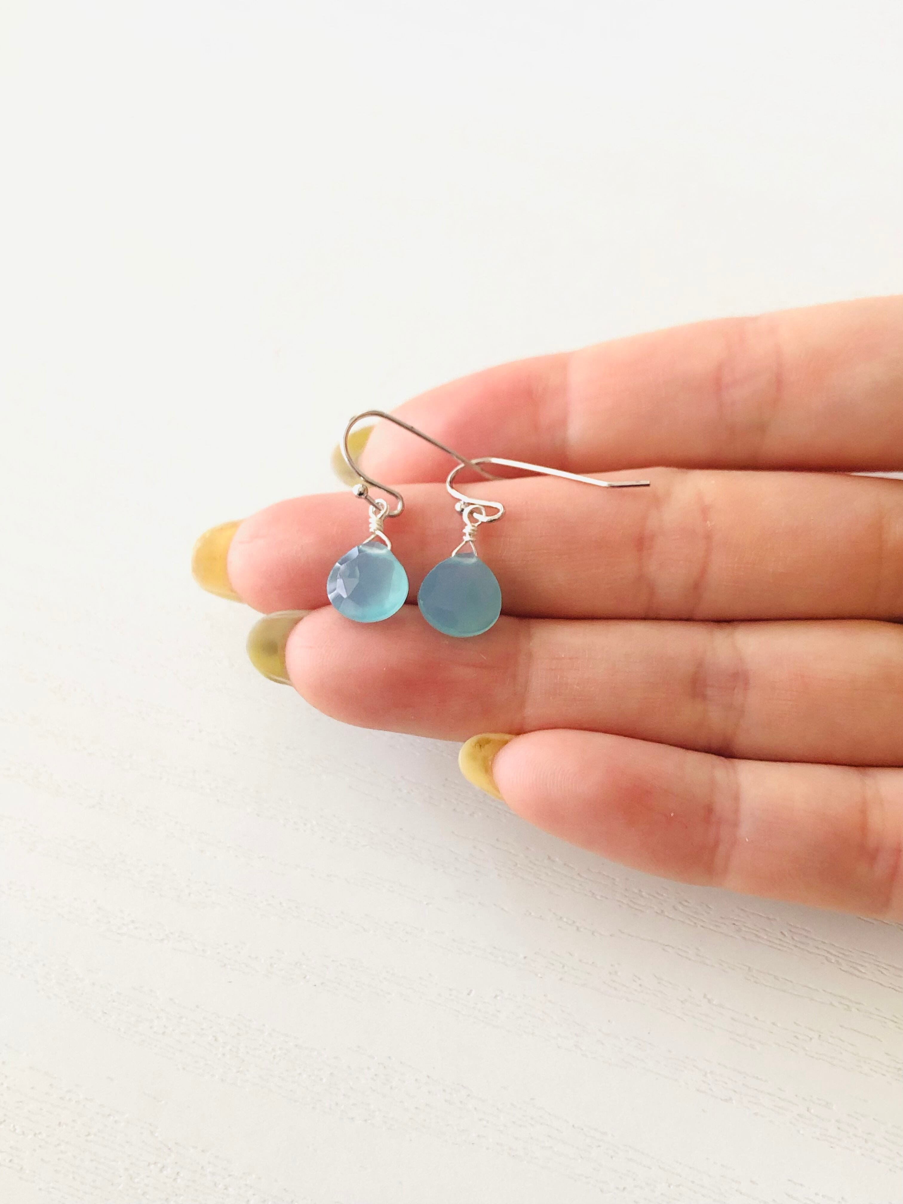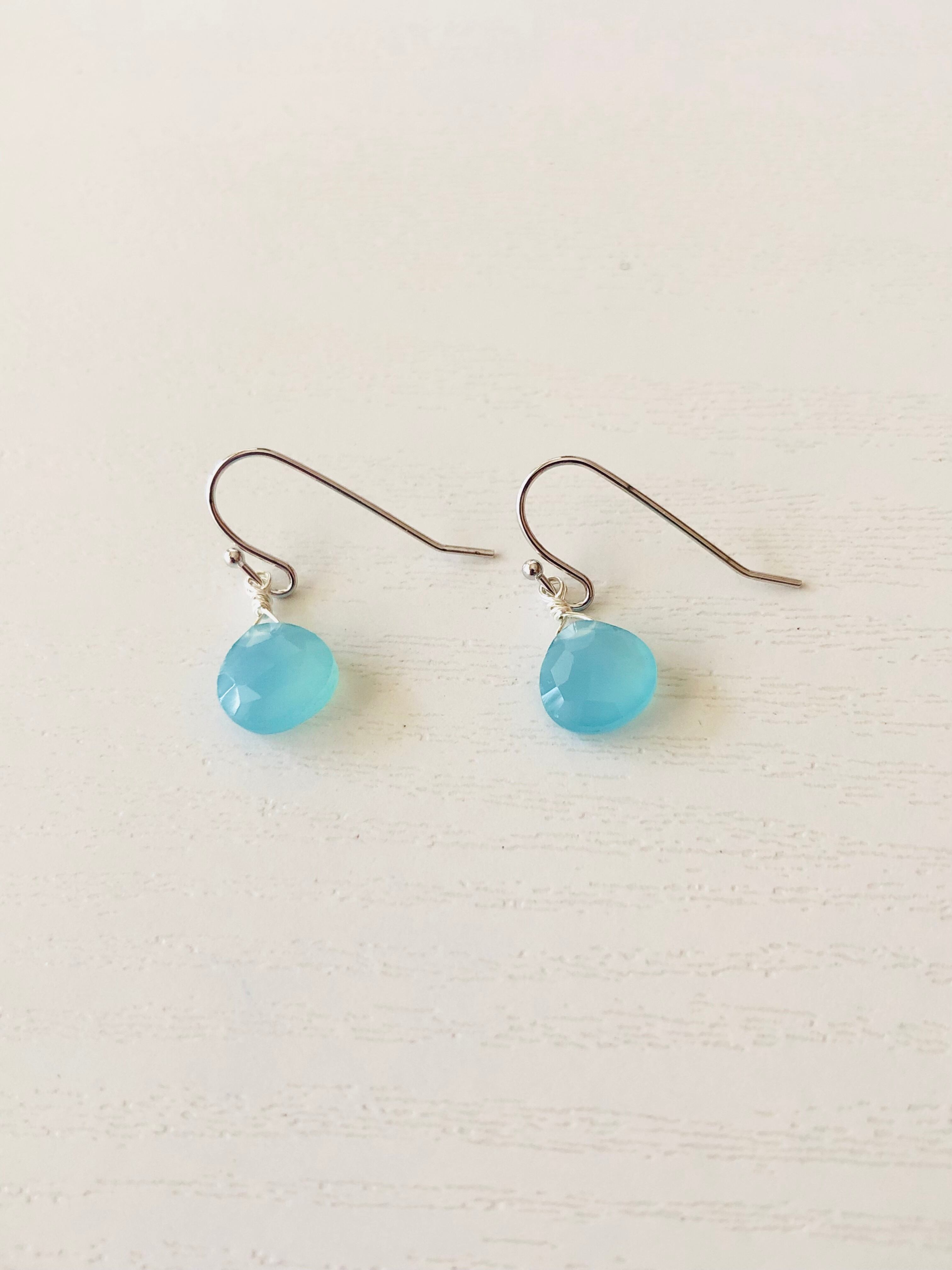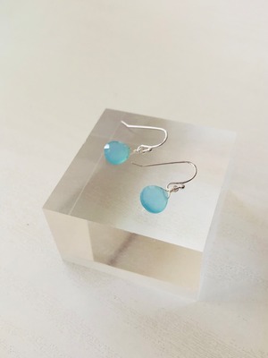 シーブルーカルセドニーの一粒ピアス