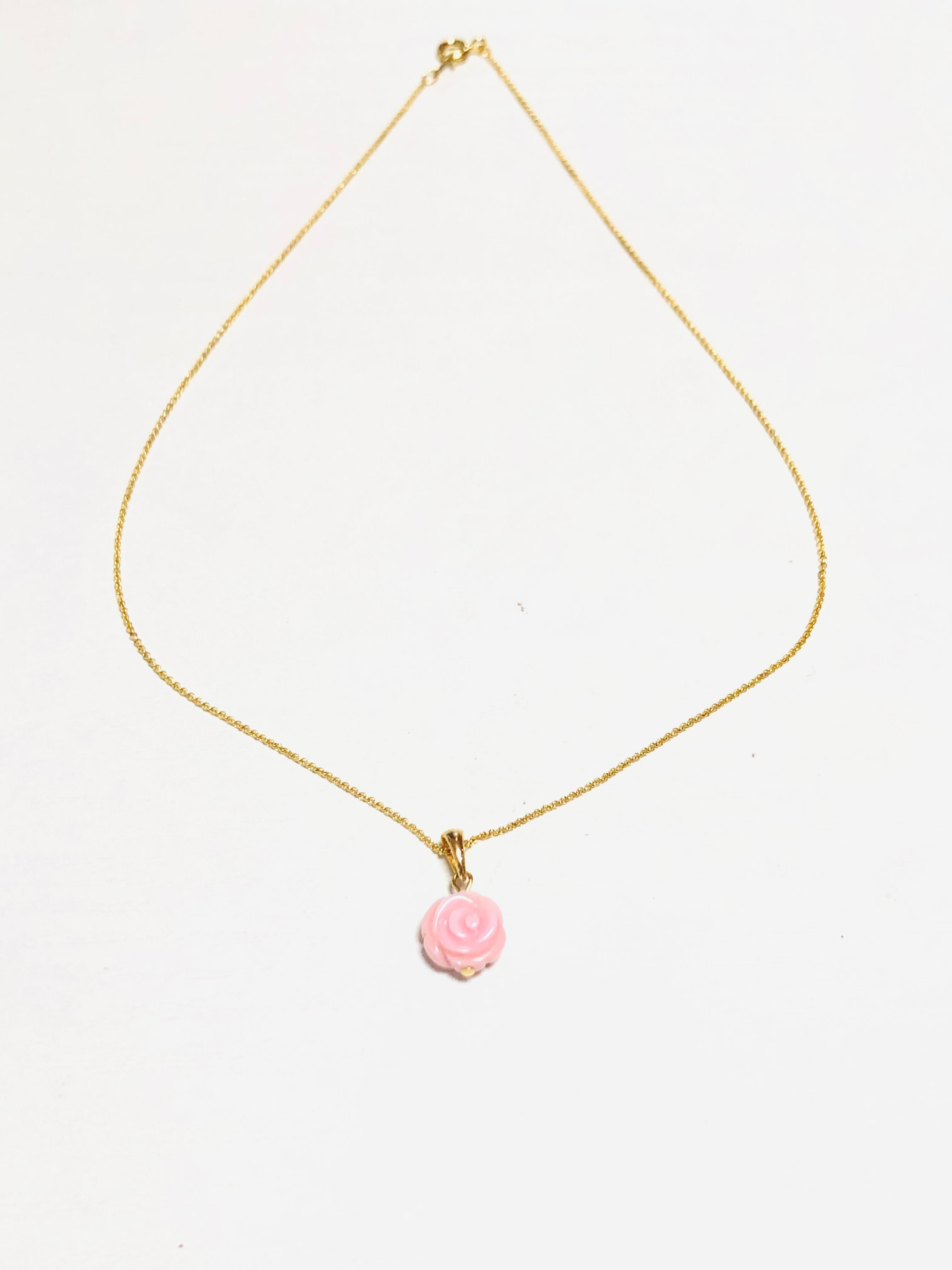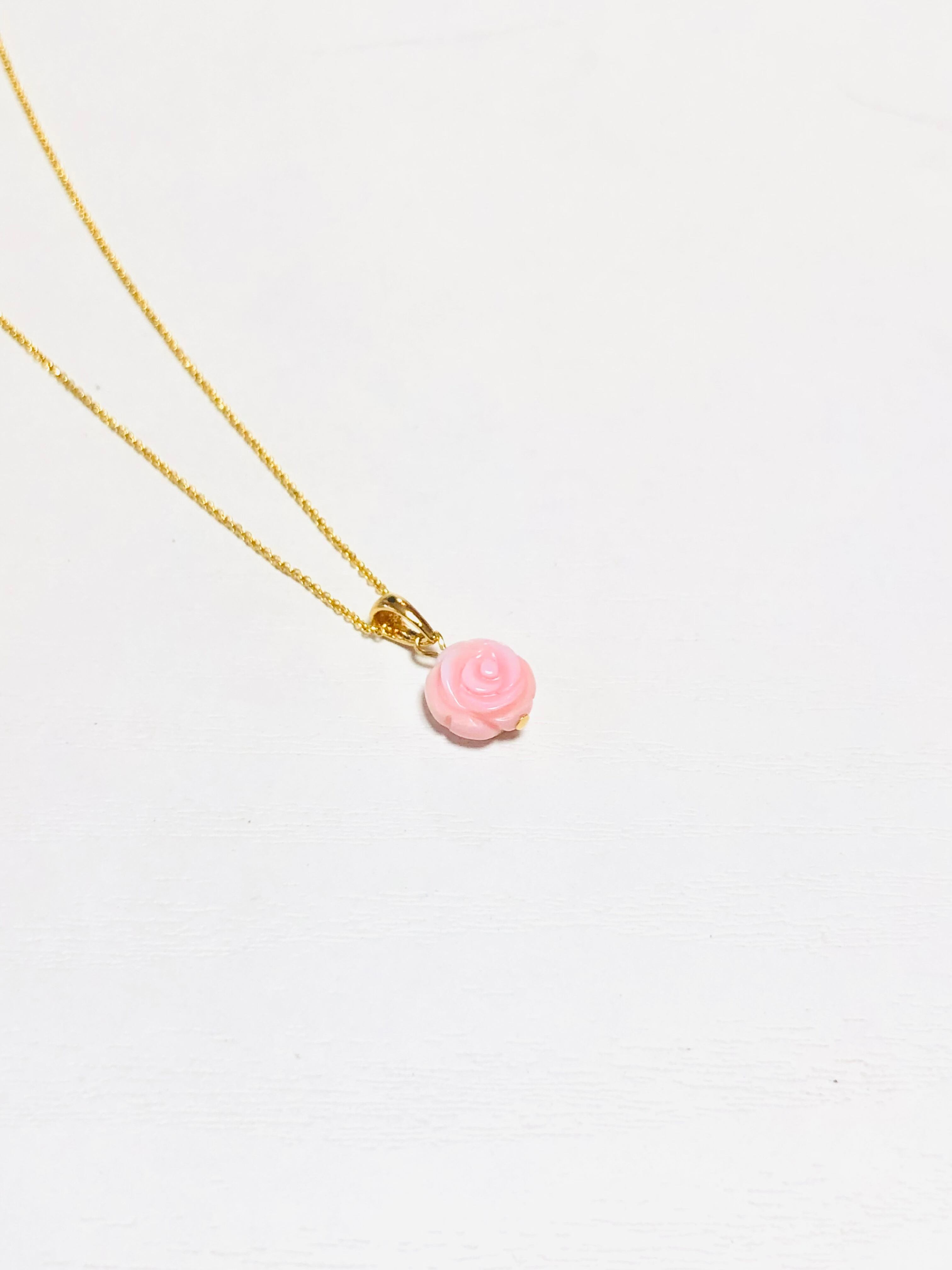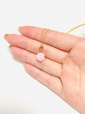 クイーンコンクシェルのミニ薔薇ネックレス