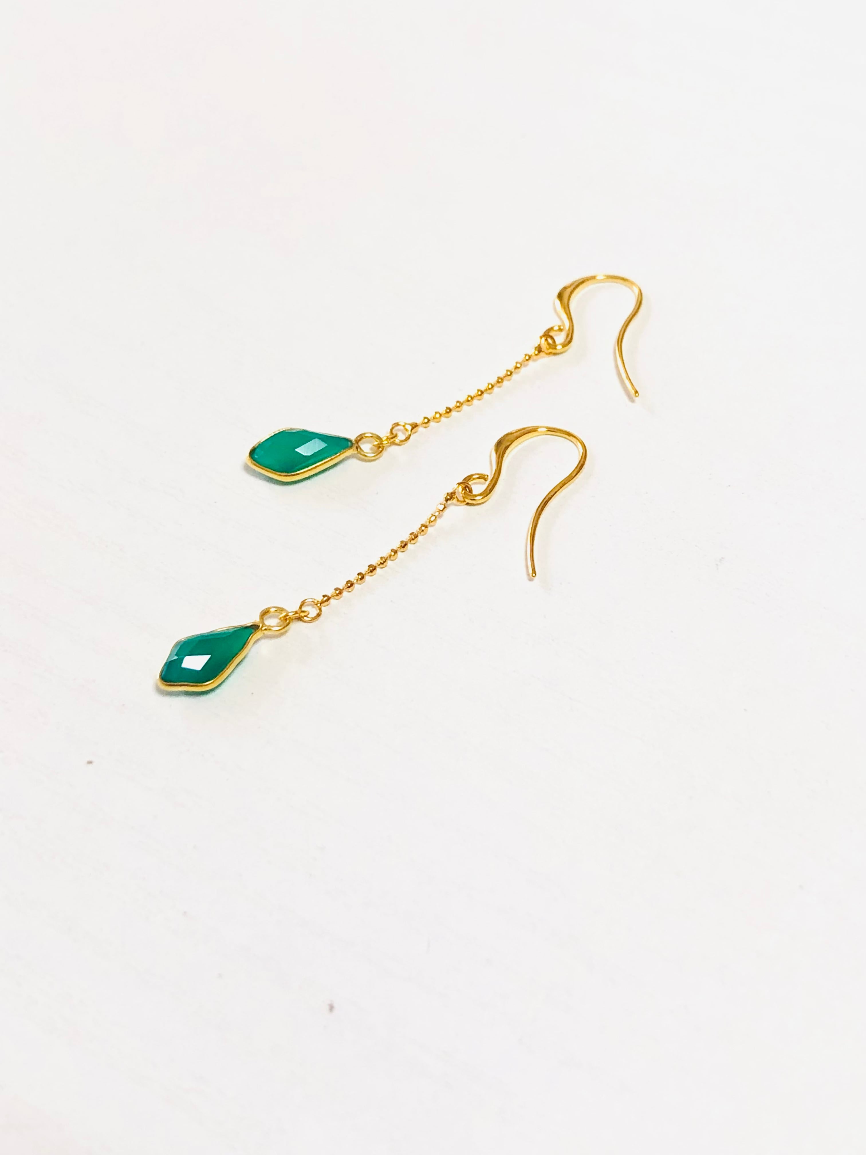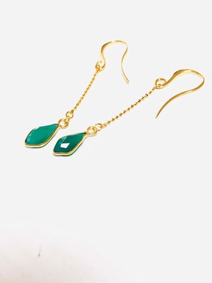 グリーンオニキスのゆらゆらと揺れるピアスです。