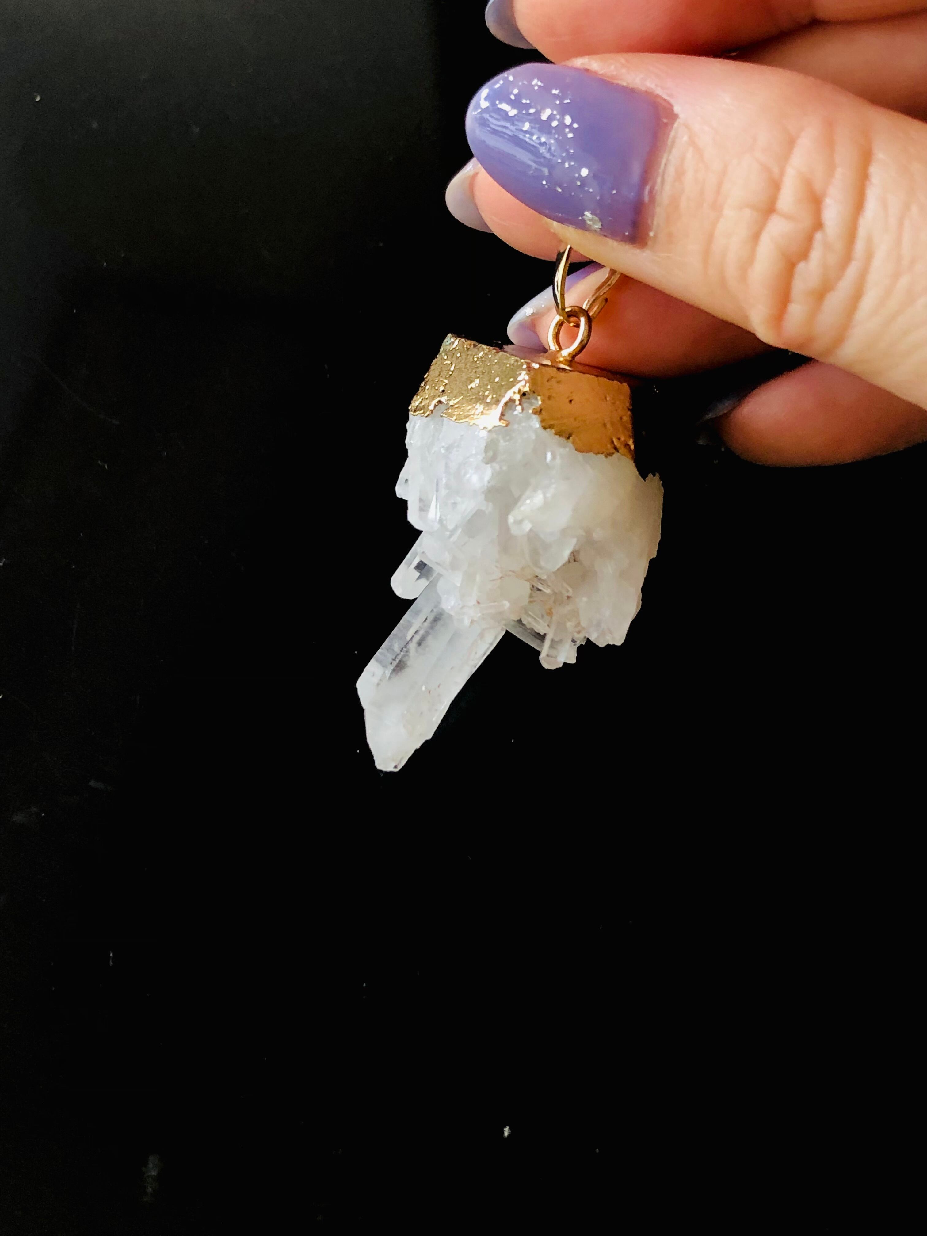 小さな水晶クラスターがそのままネックレスになりました♪