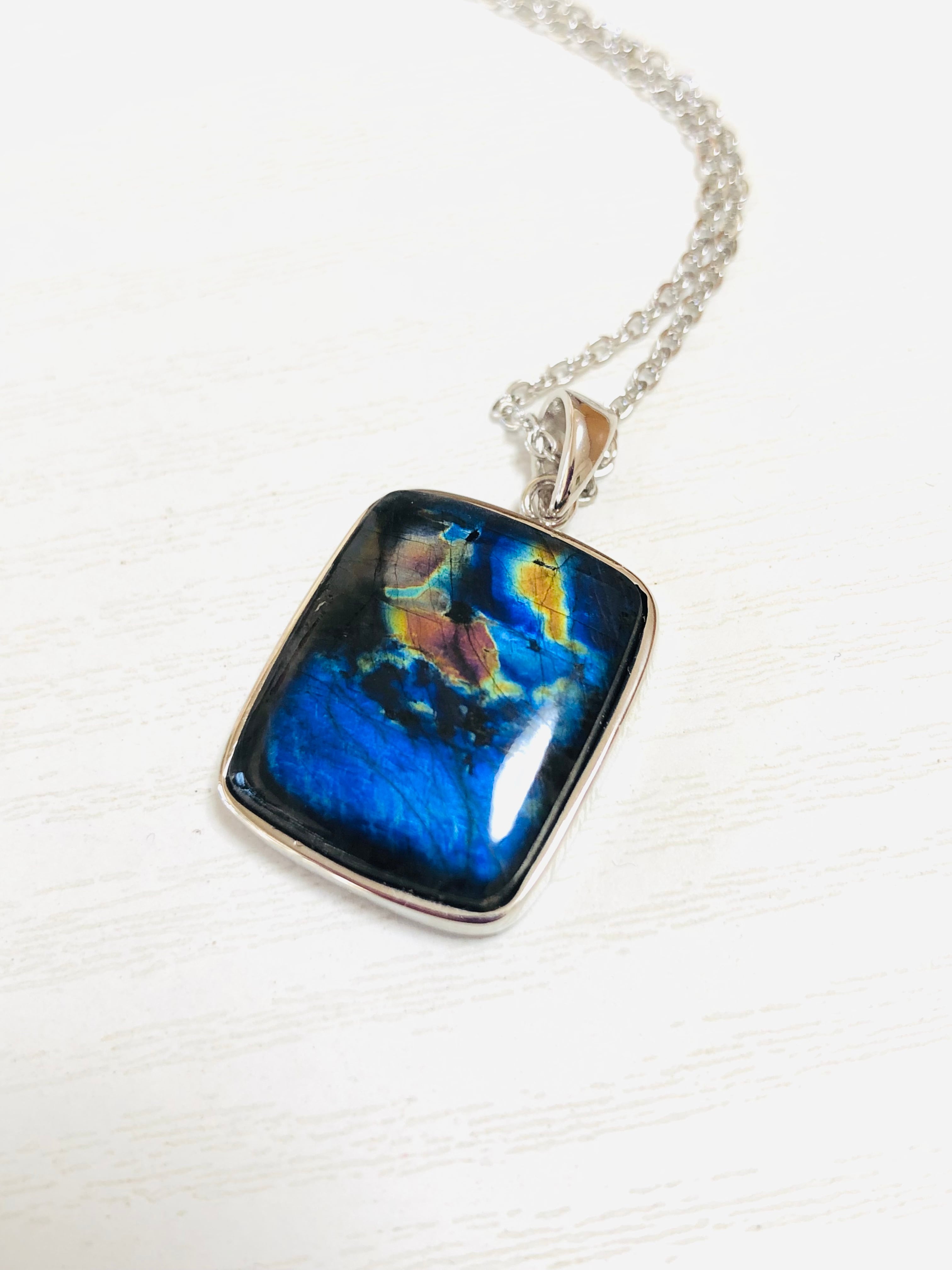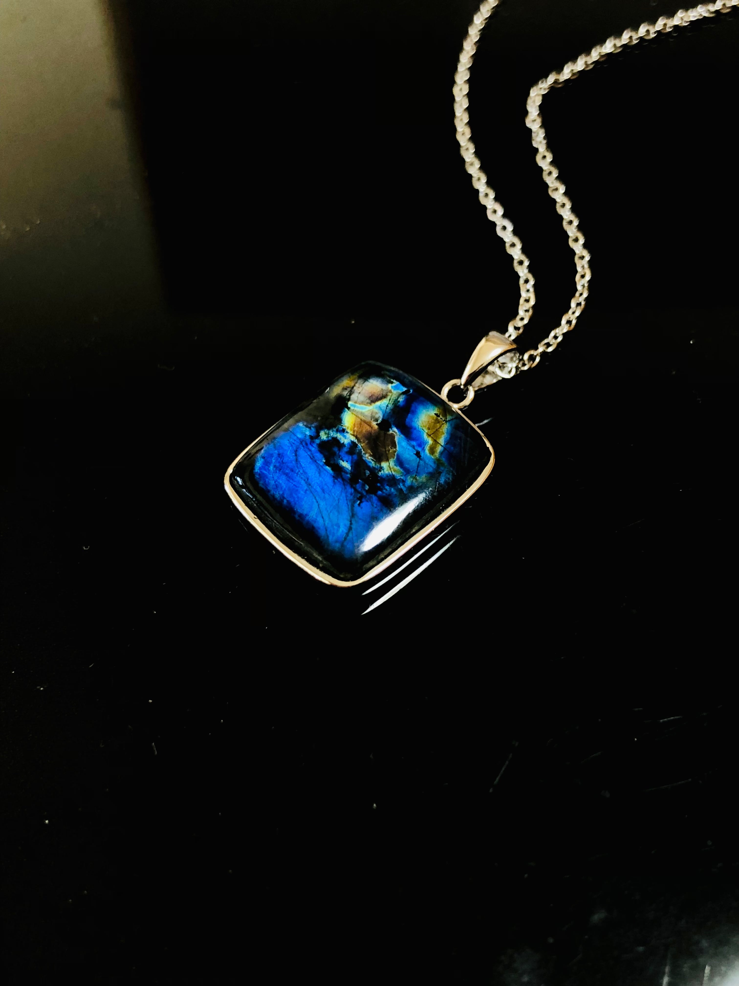 大粒!スペクトロライト(ブラックラブラドライト)ネックレス