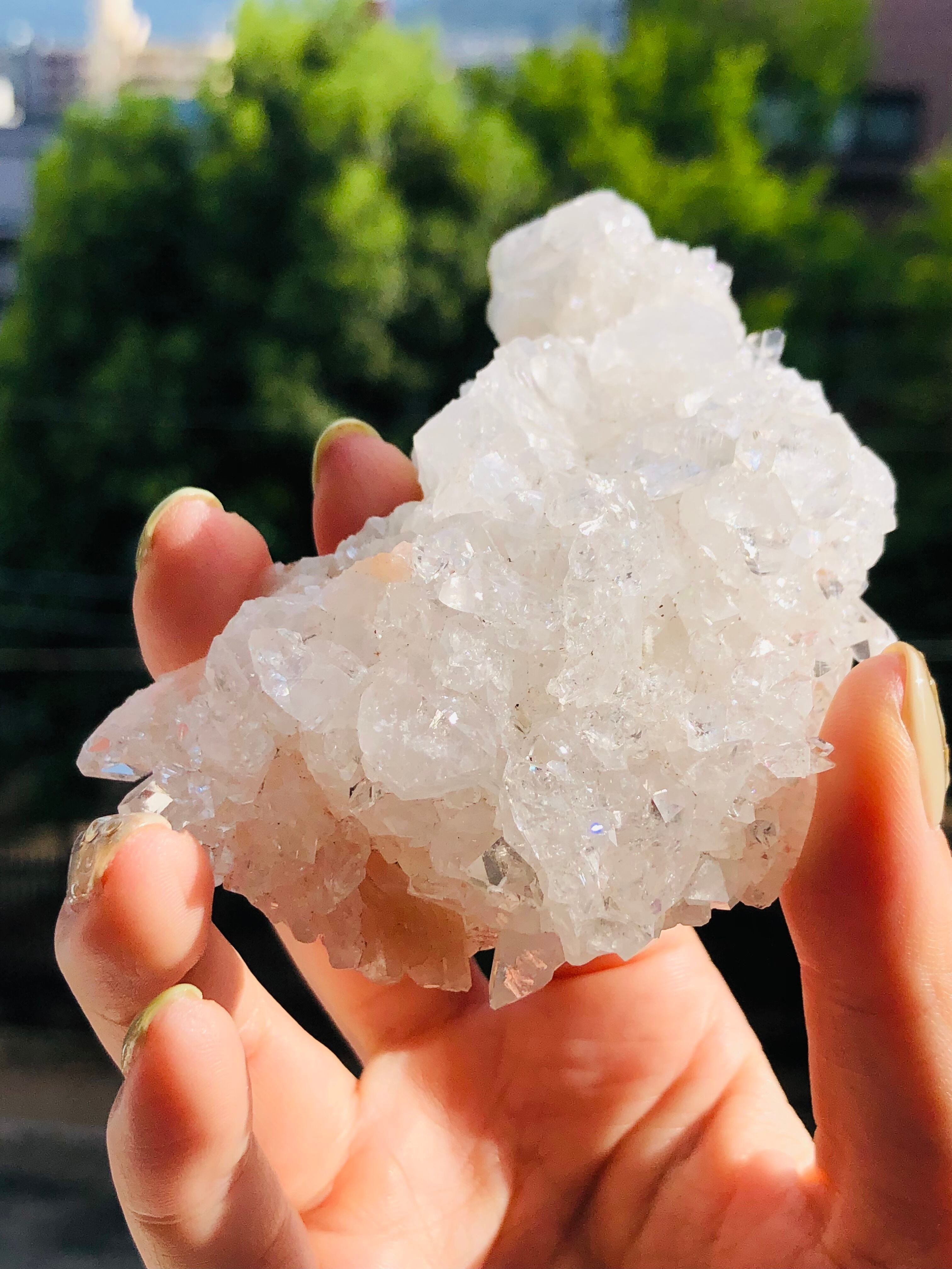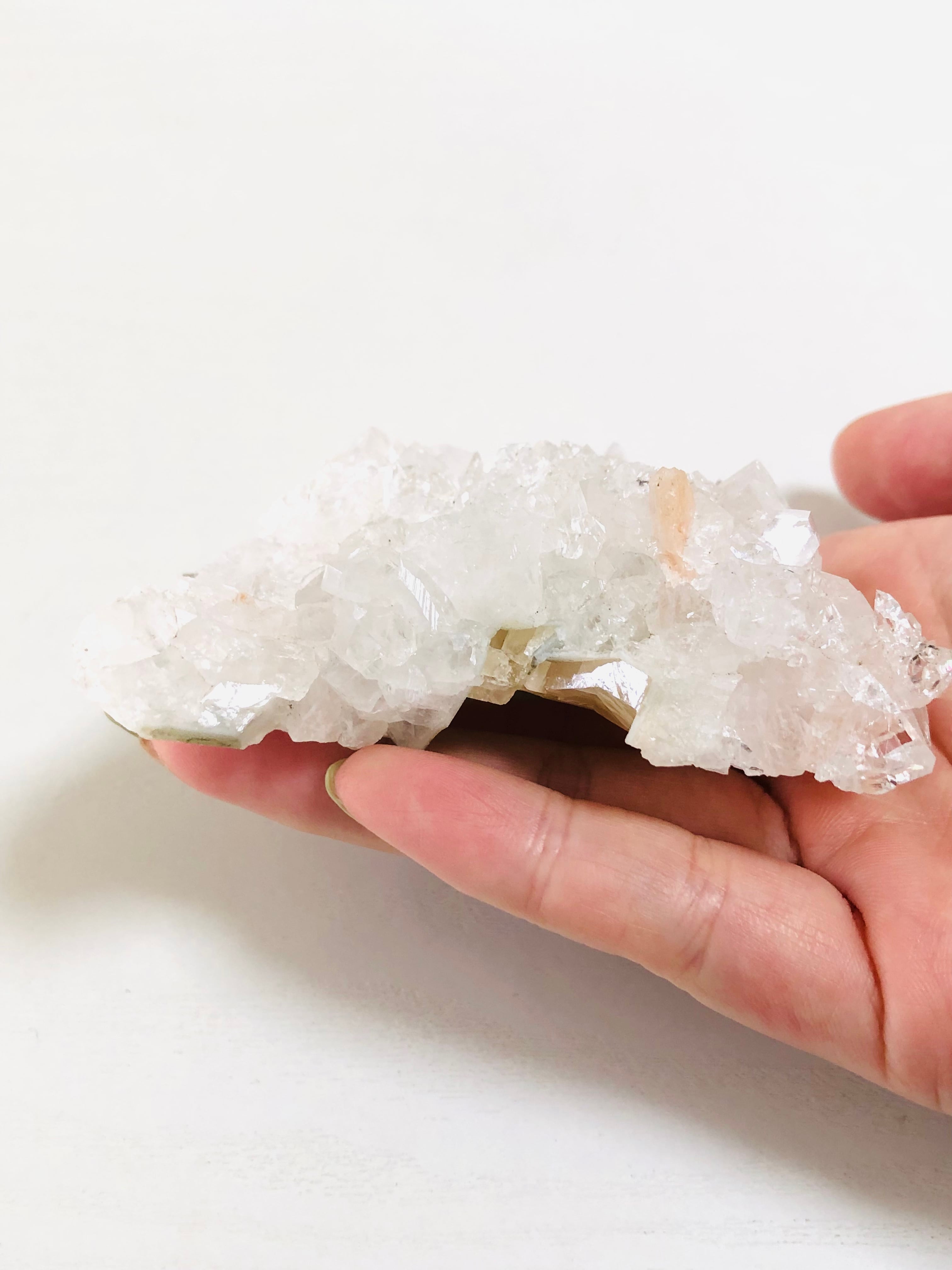 強い輝きを持つアポフィライト結晶です。