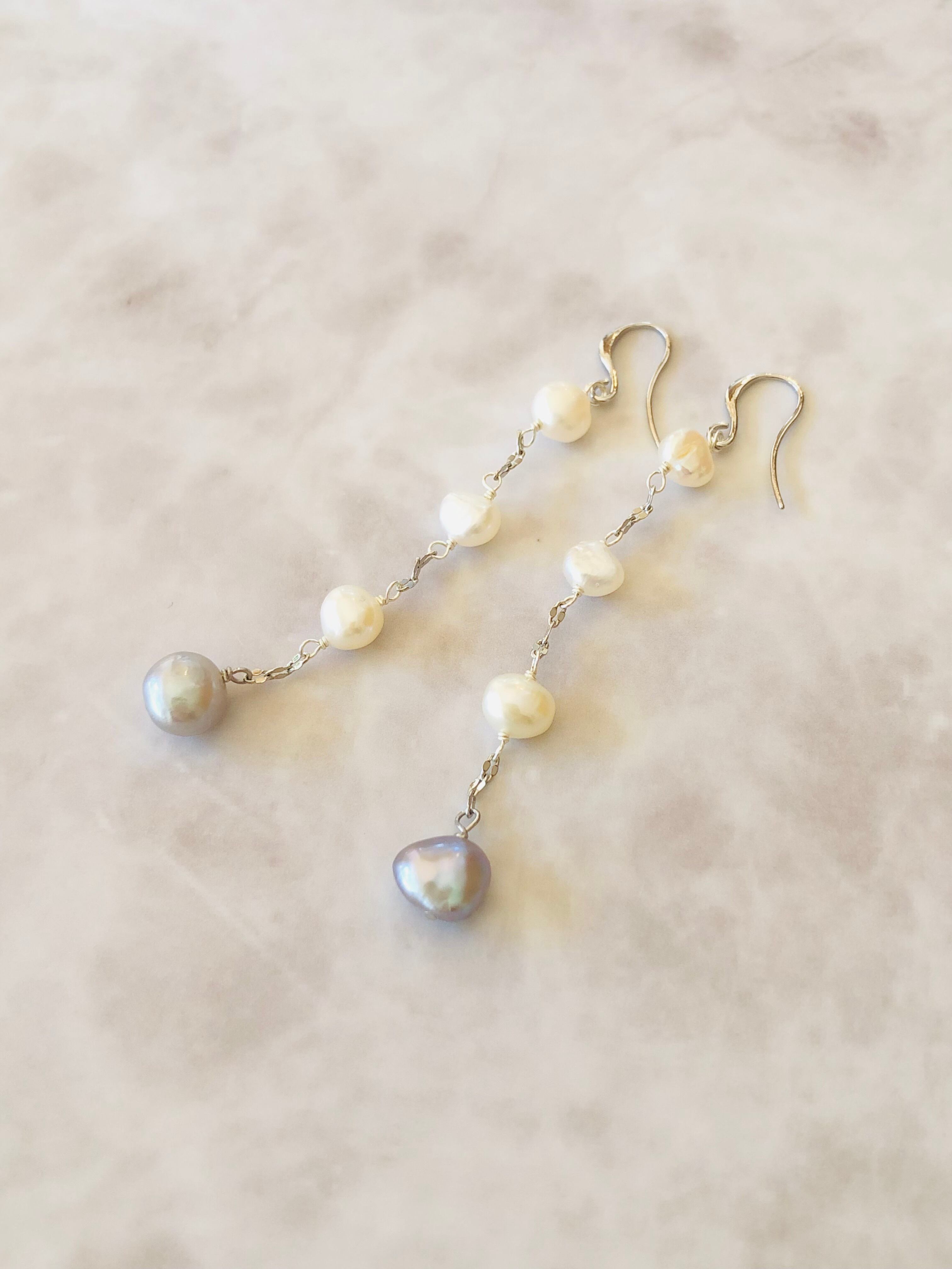 淡水パールのピアス(ホワイト×グレー)