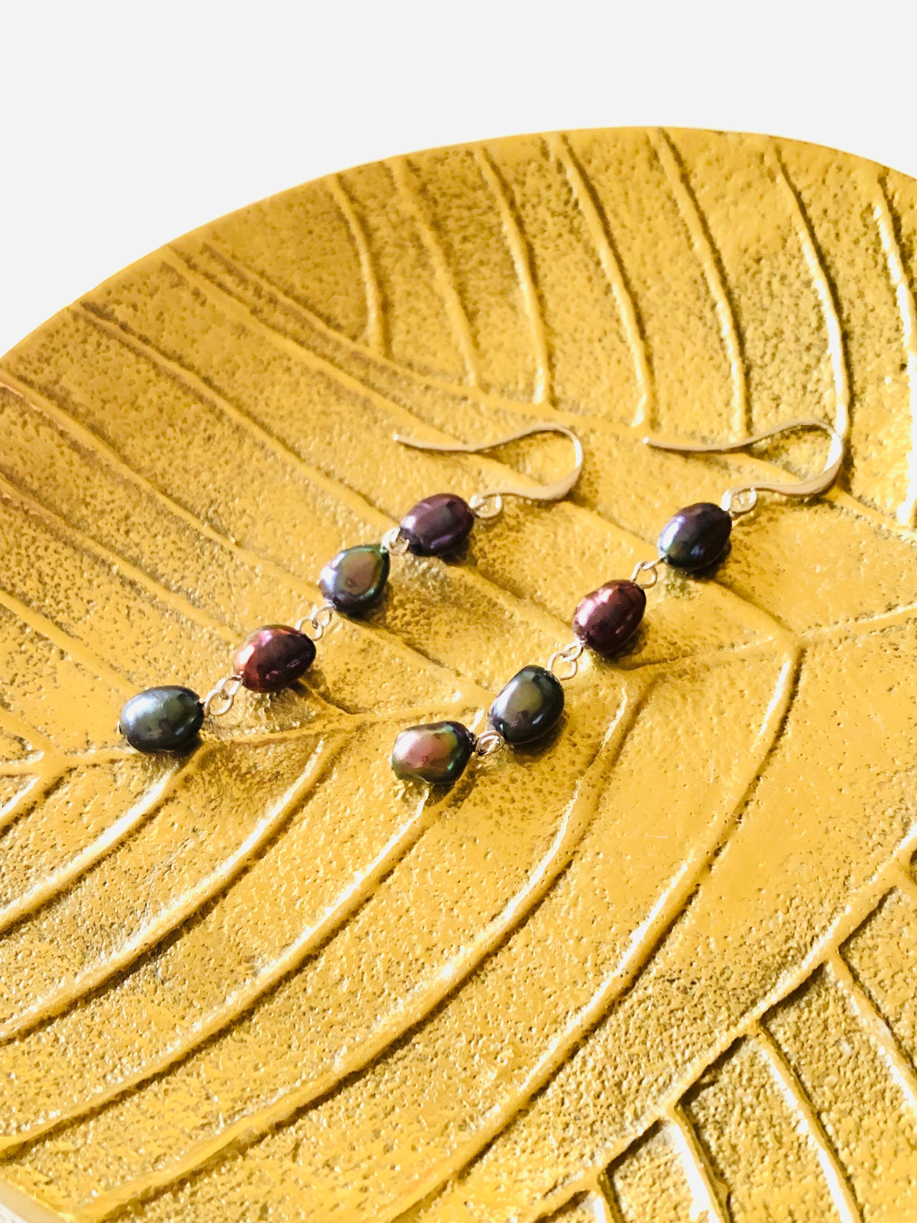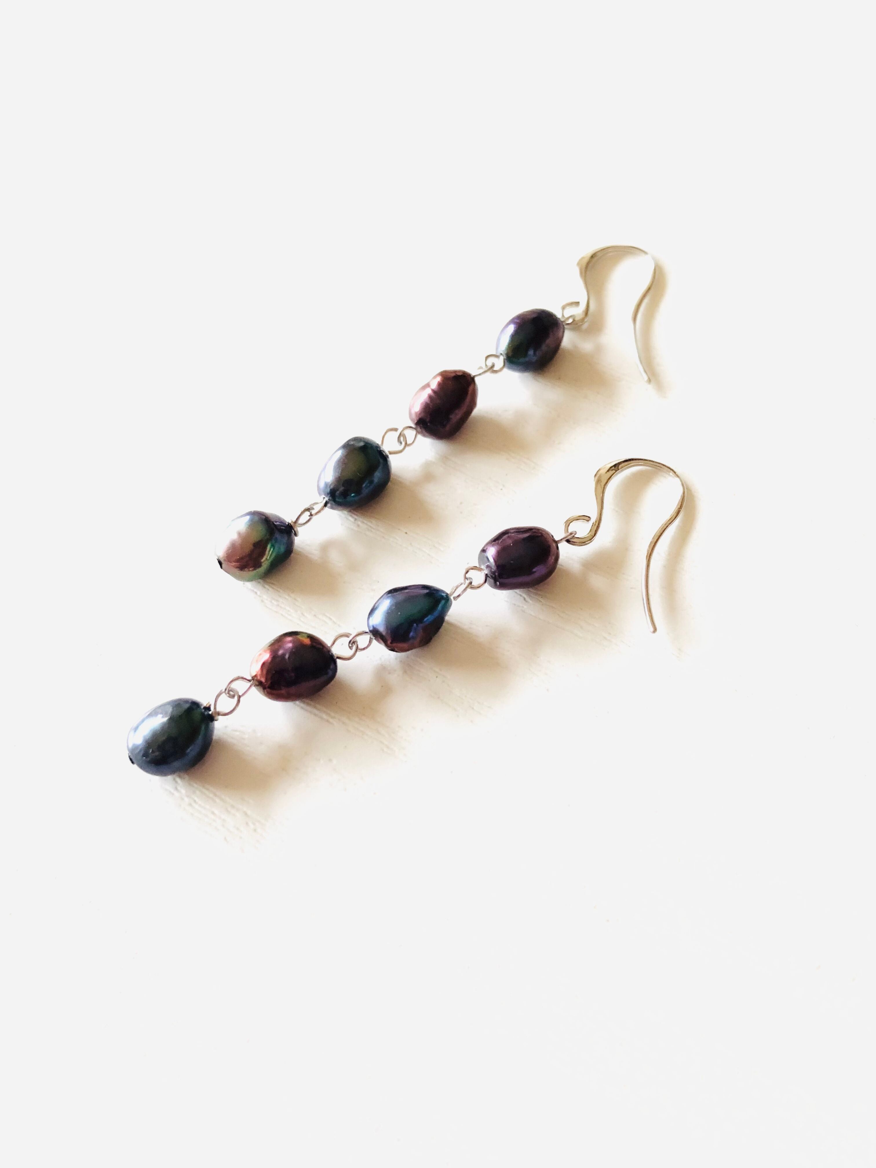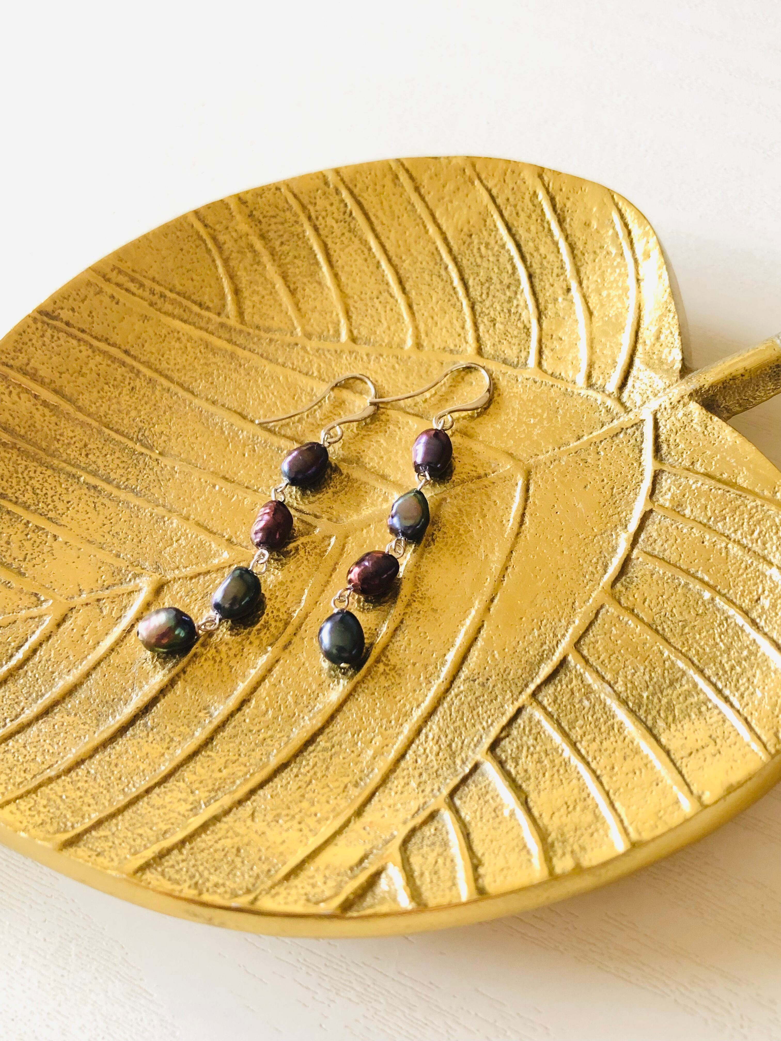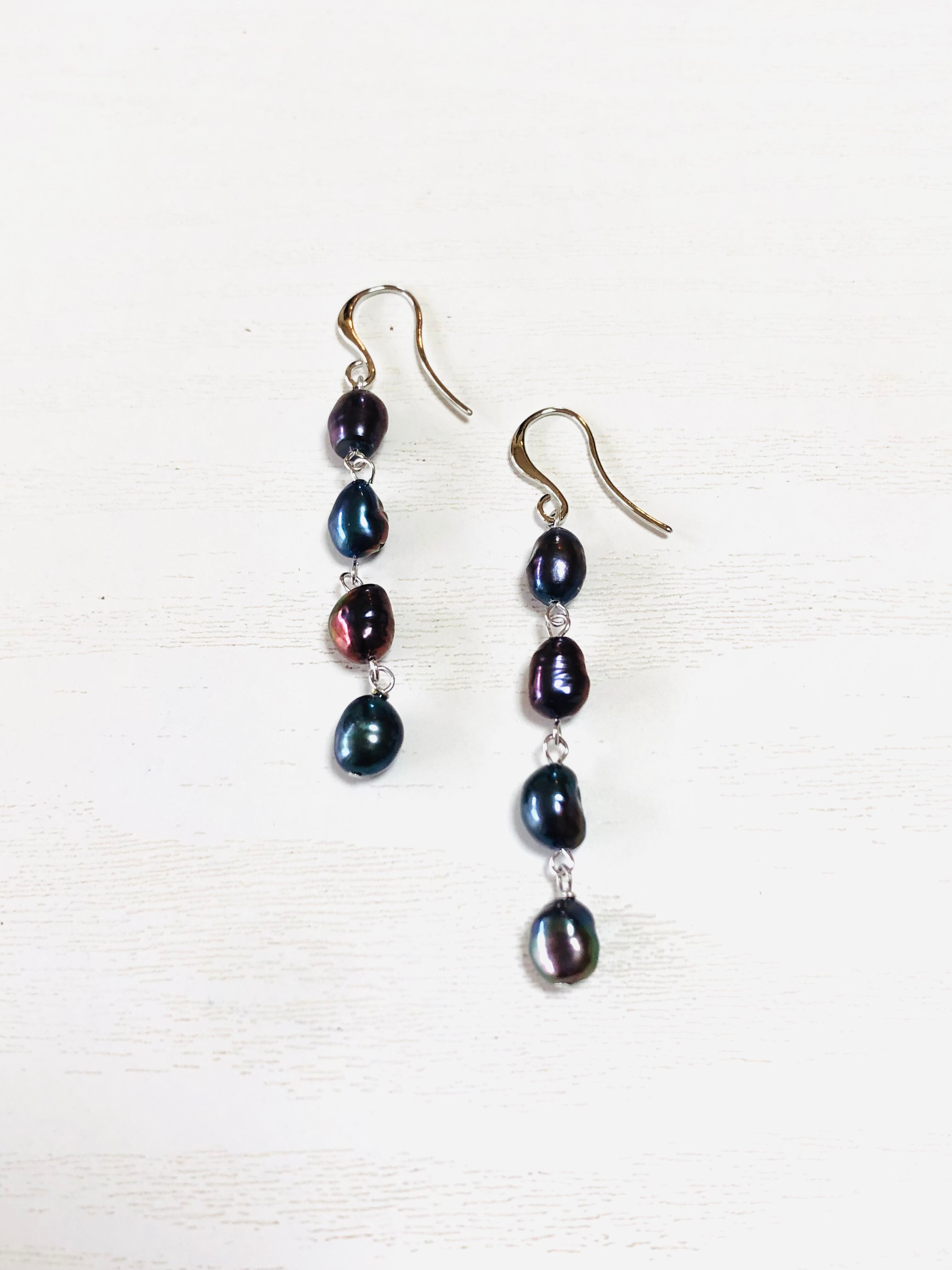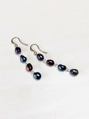 淡水パールのピアス(ブラック)