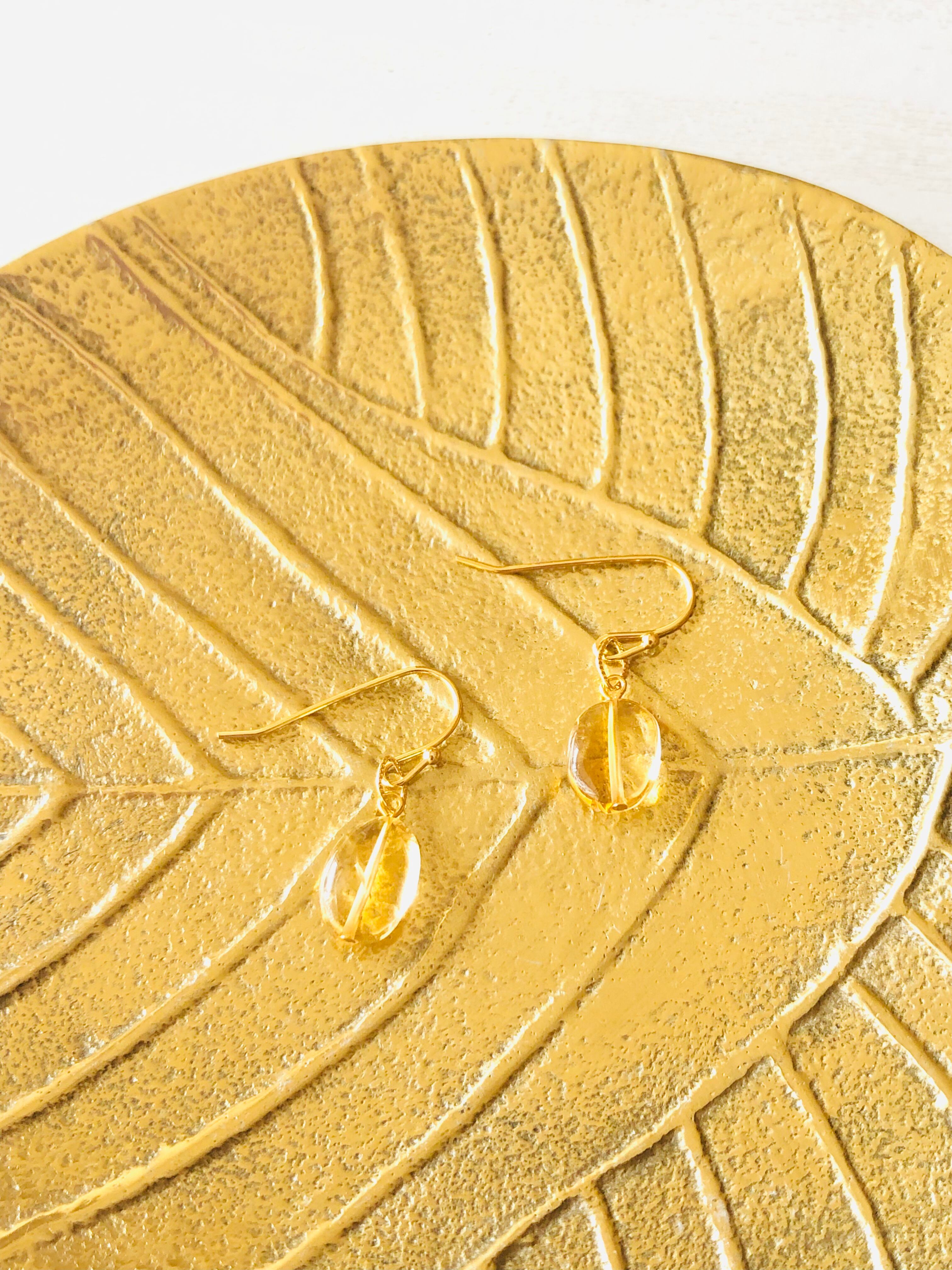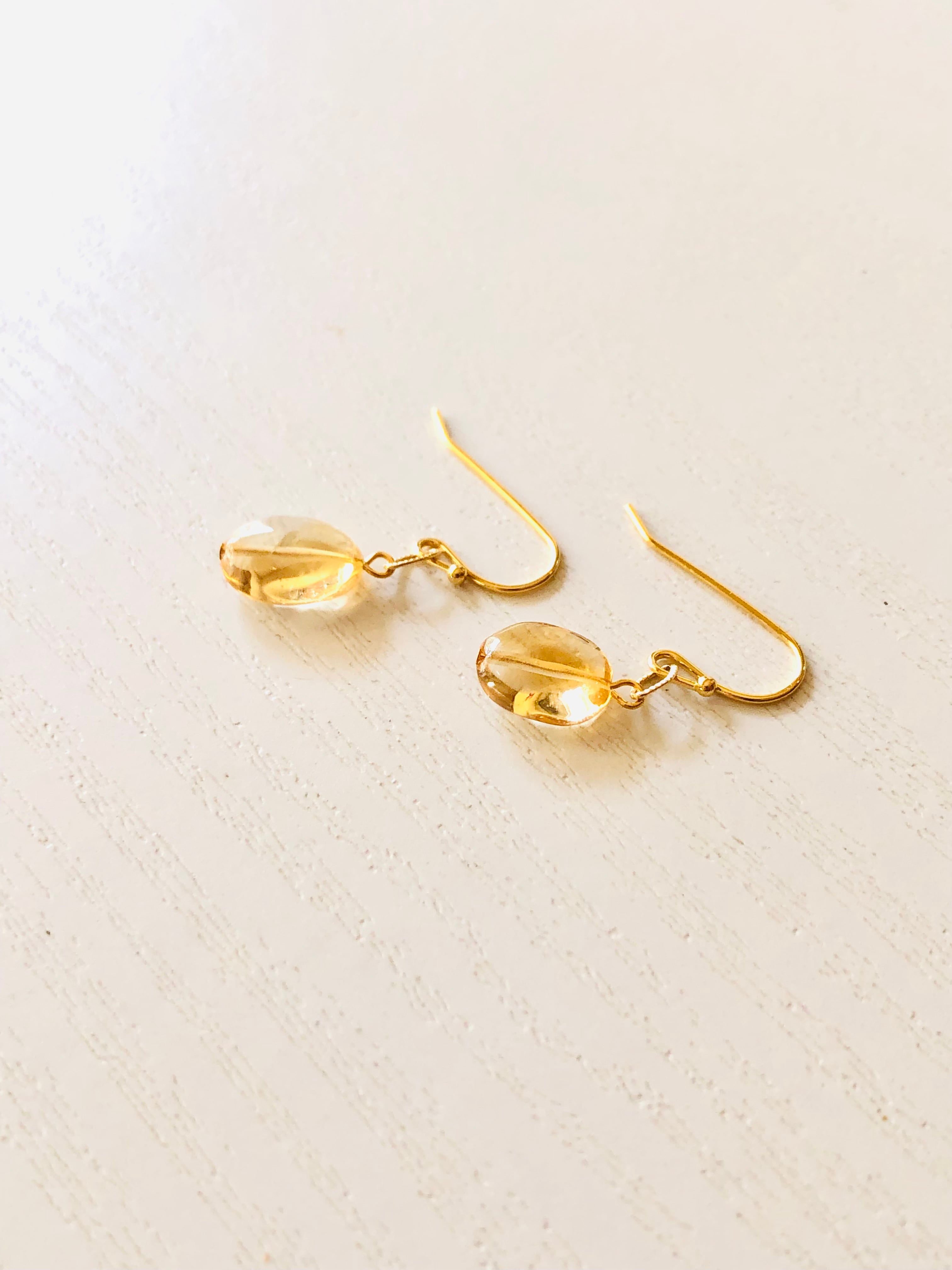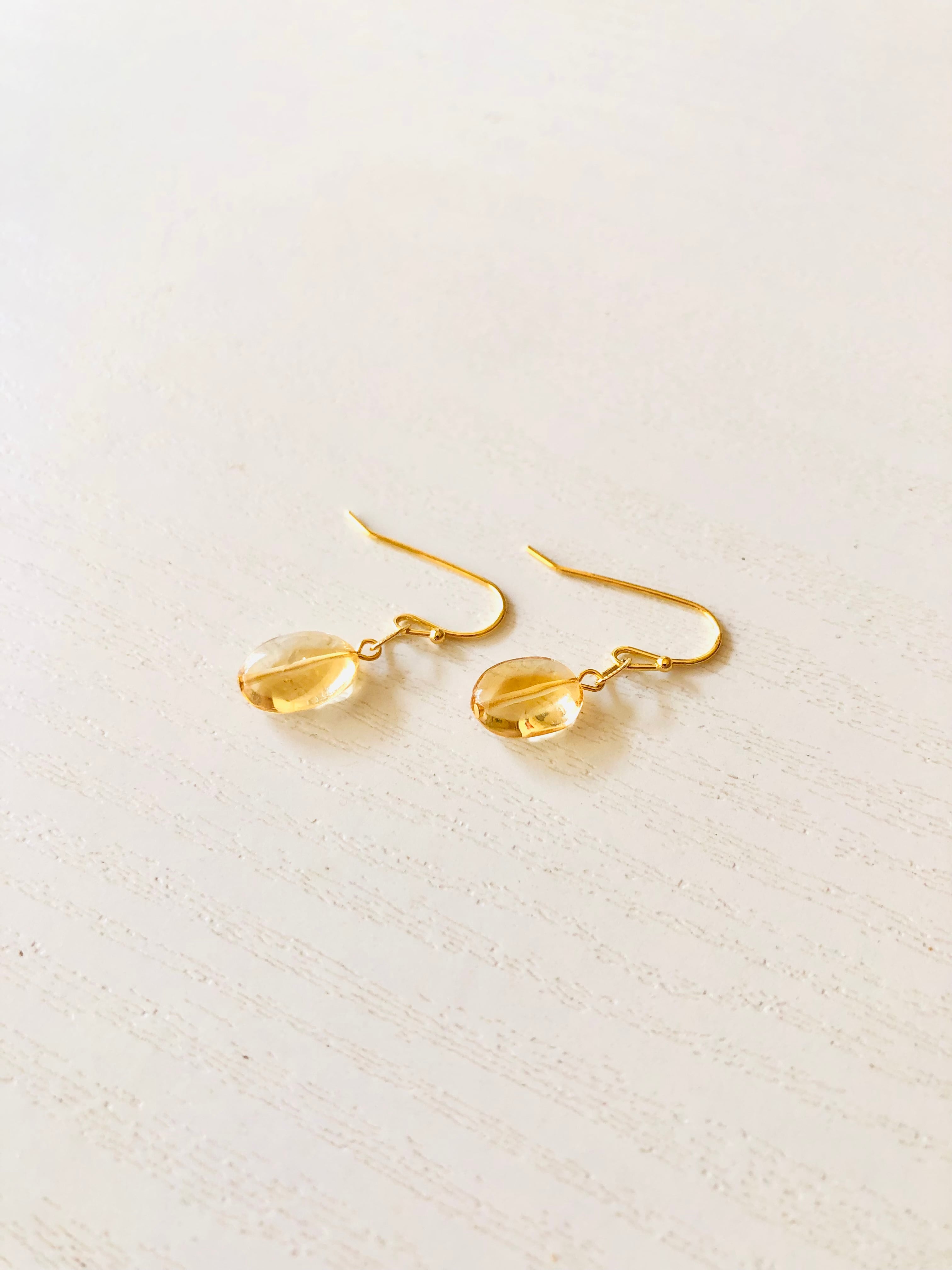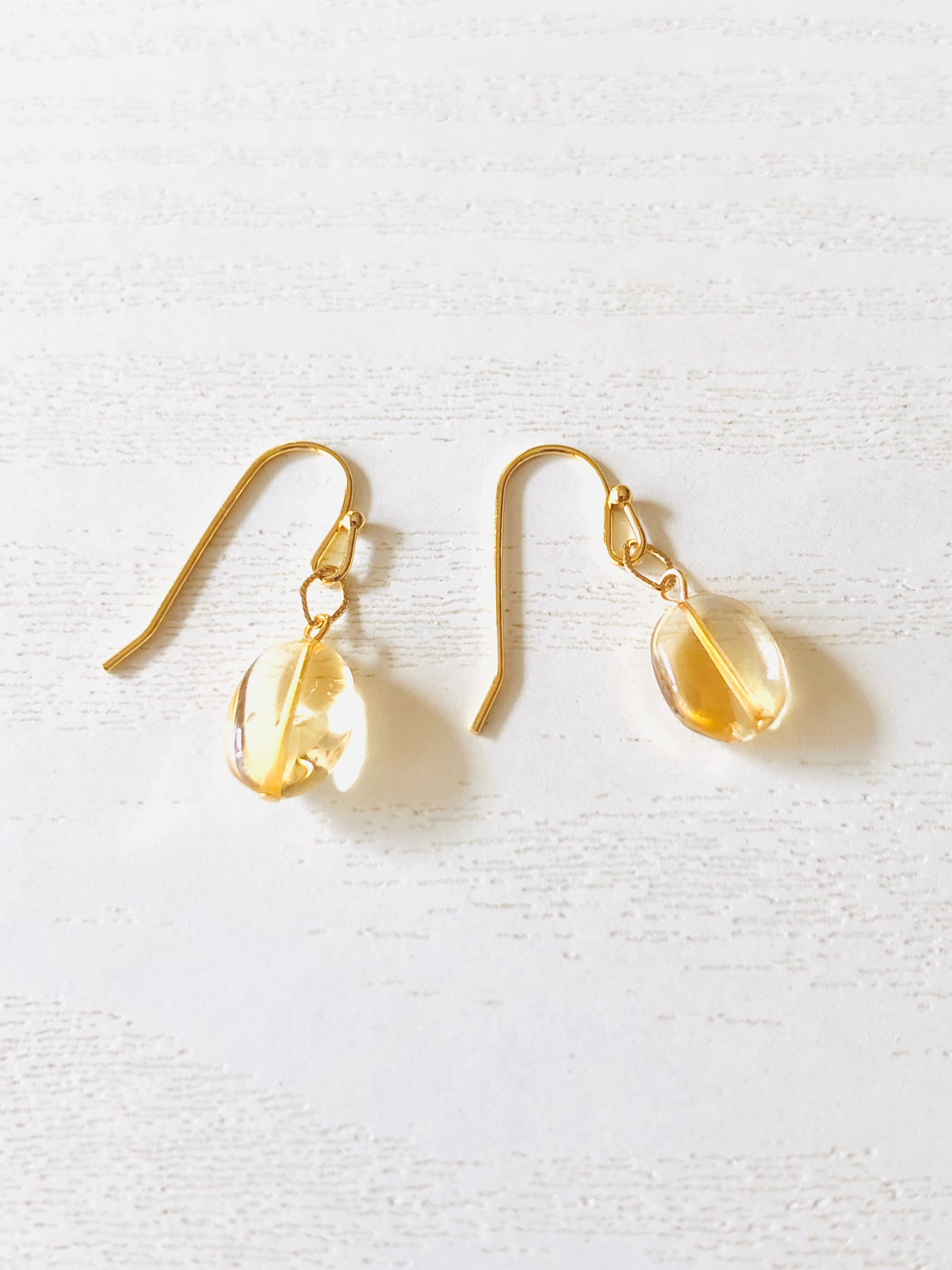 透明度も高く淡いグラデーションが入ったシトリンタンブルをシンプルな一粒ピアスにしました。