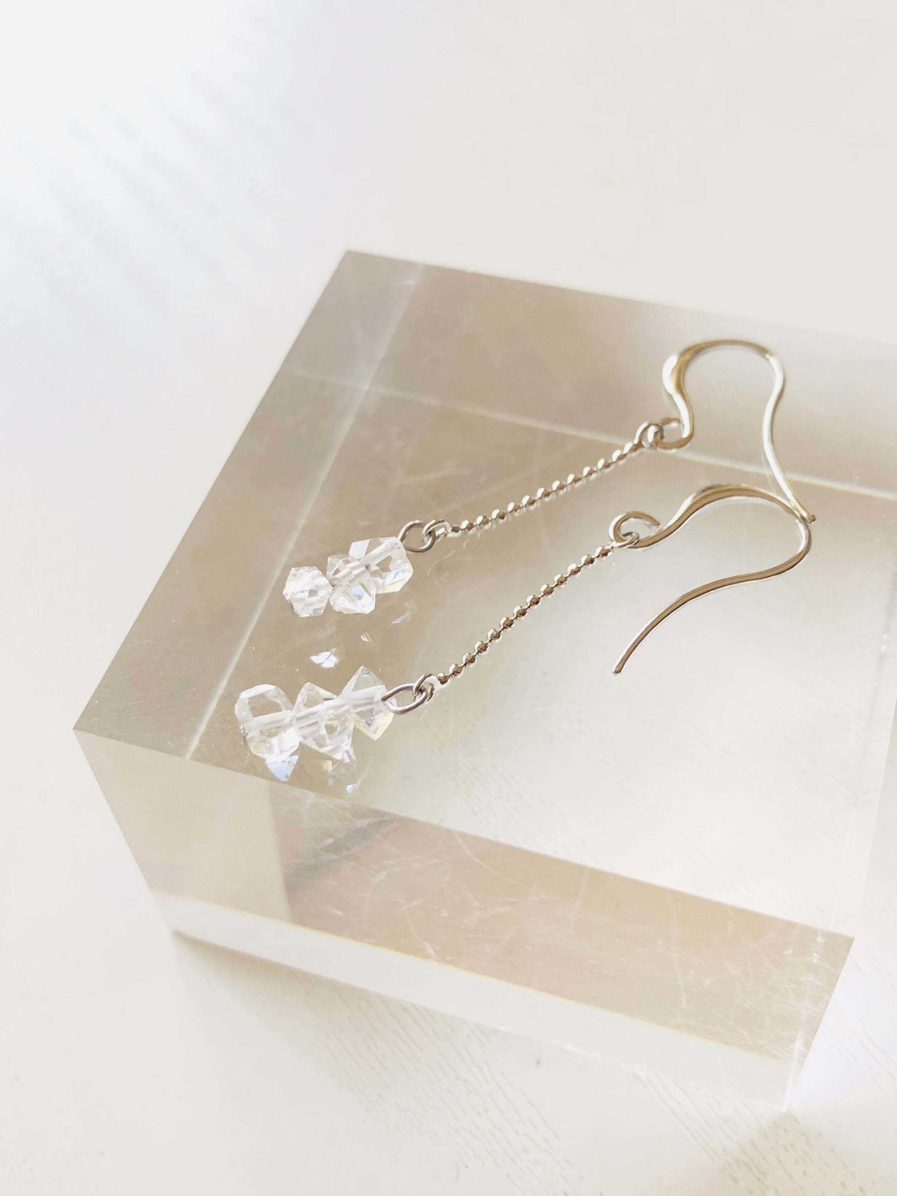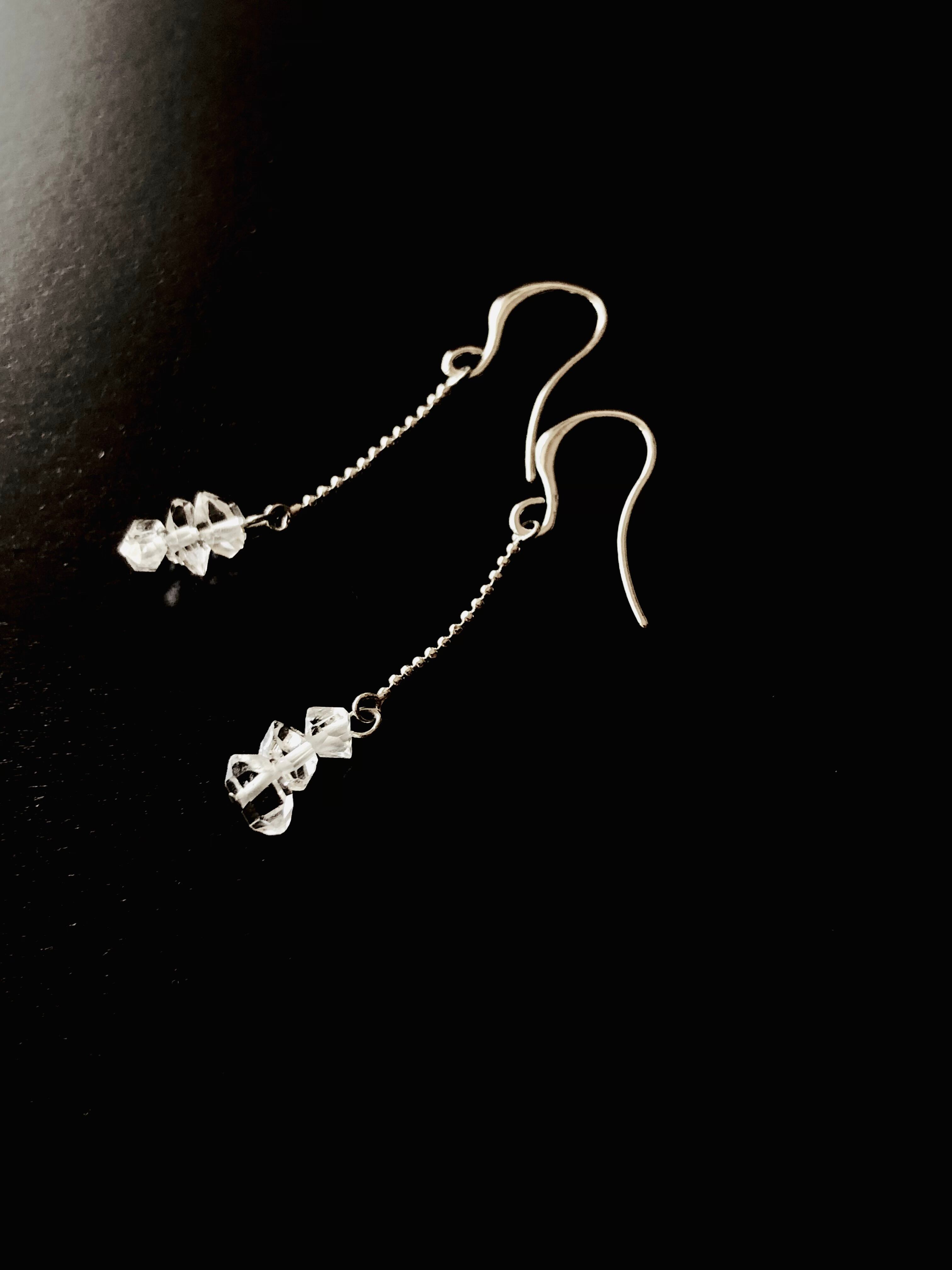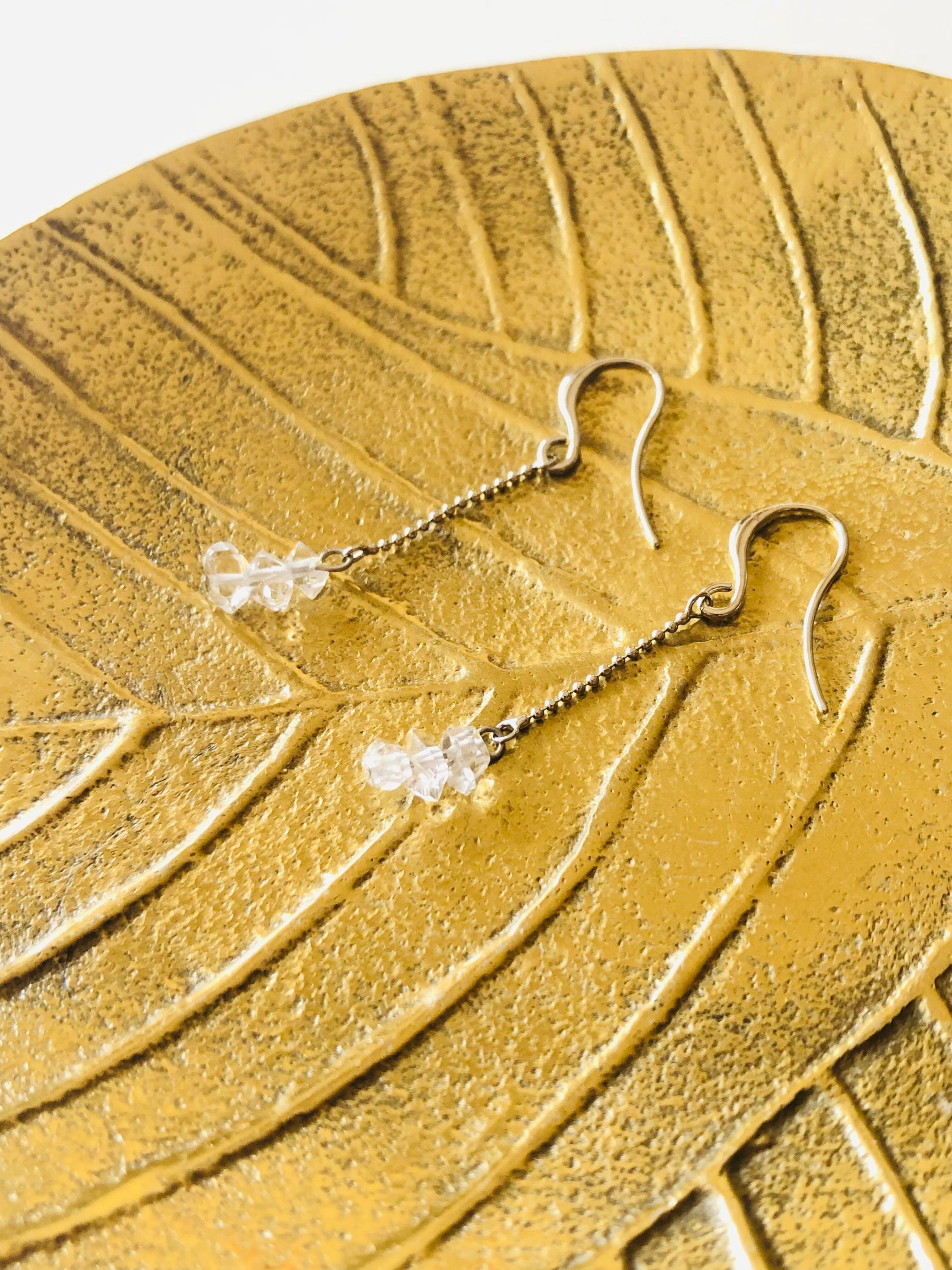 希望の種!ハーキマーダイヤモンドのゆらゆらピアス(イヤリングに変更可)