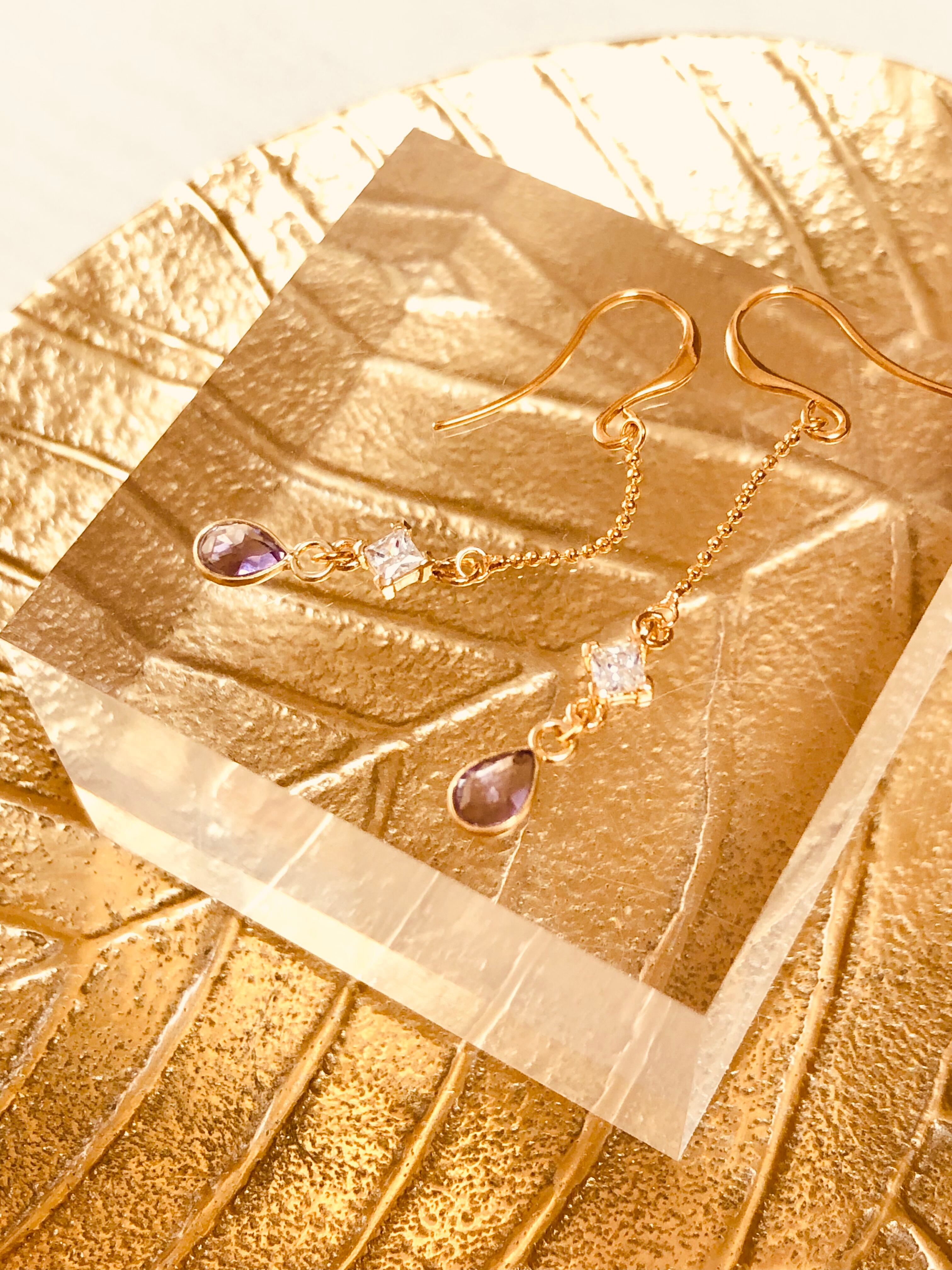 宝石質のピンクアメジストを使用したピアスです。