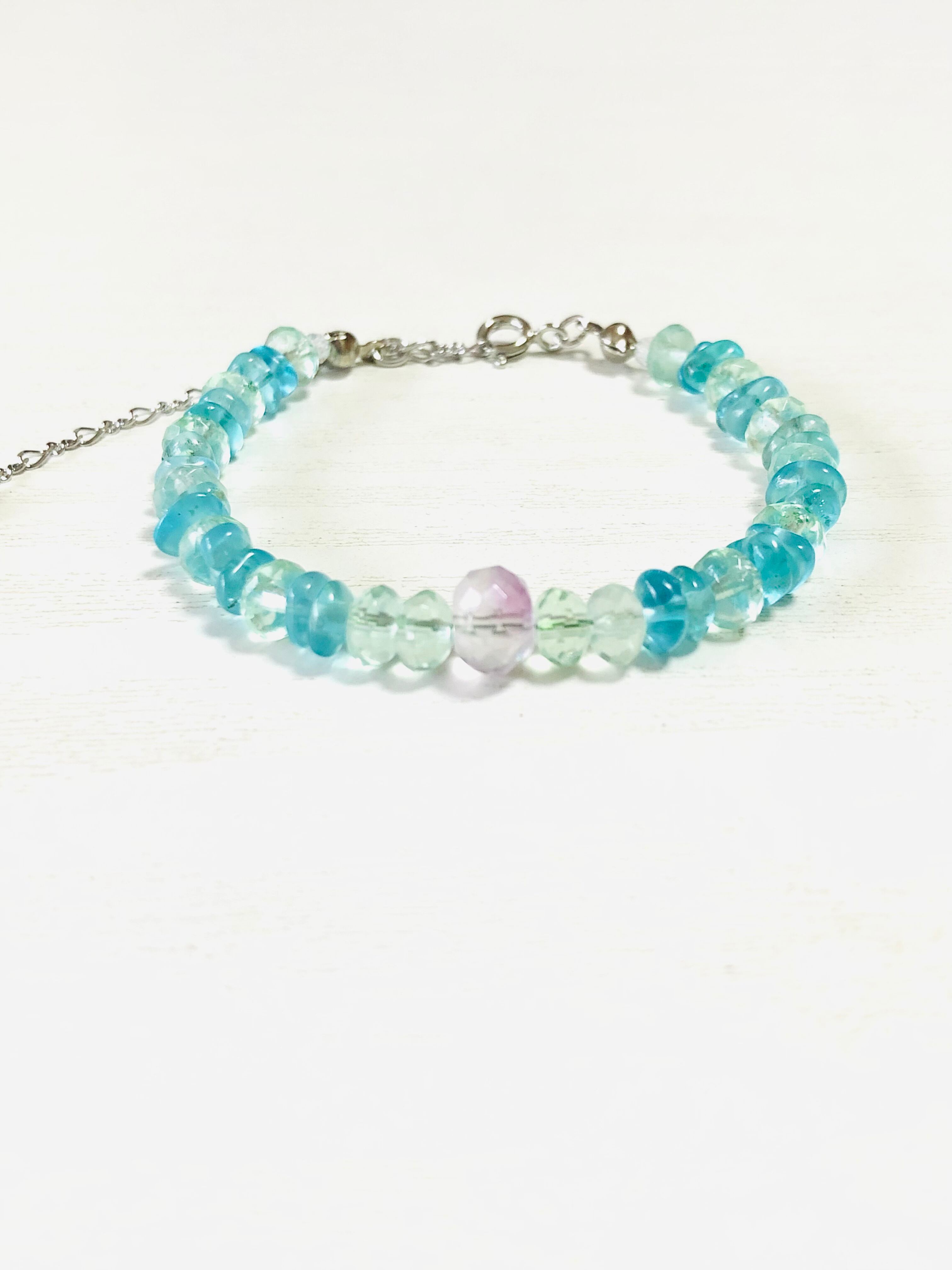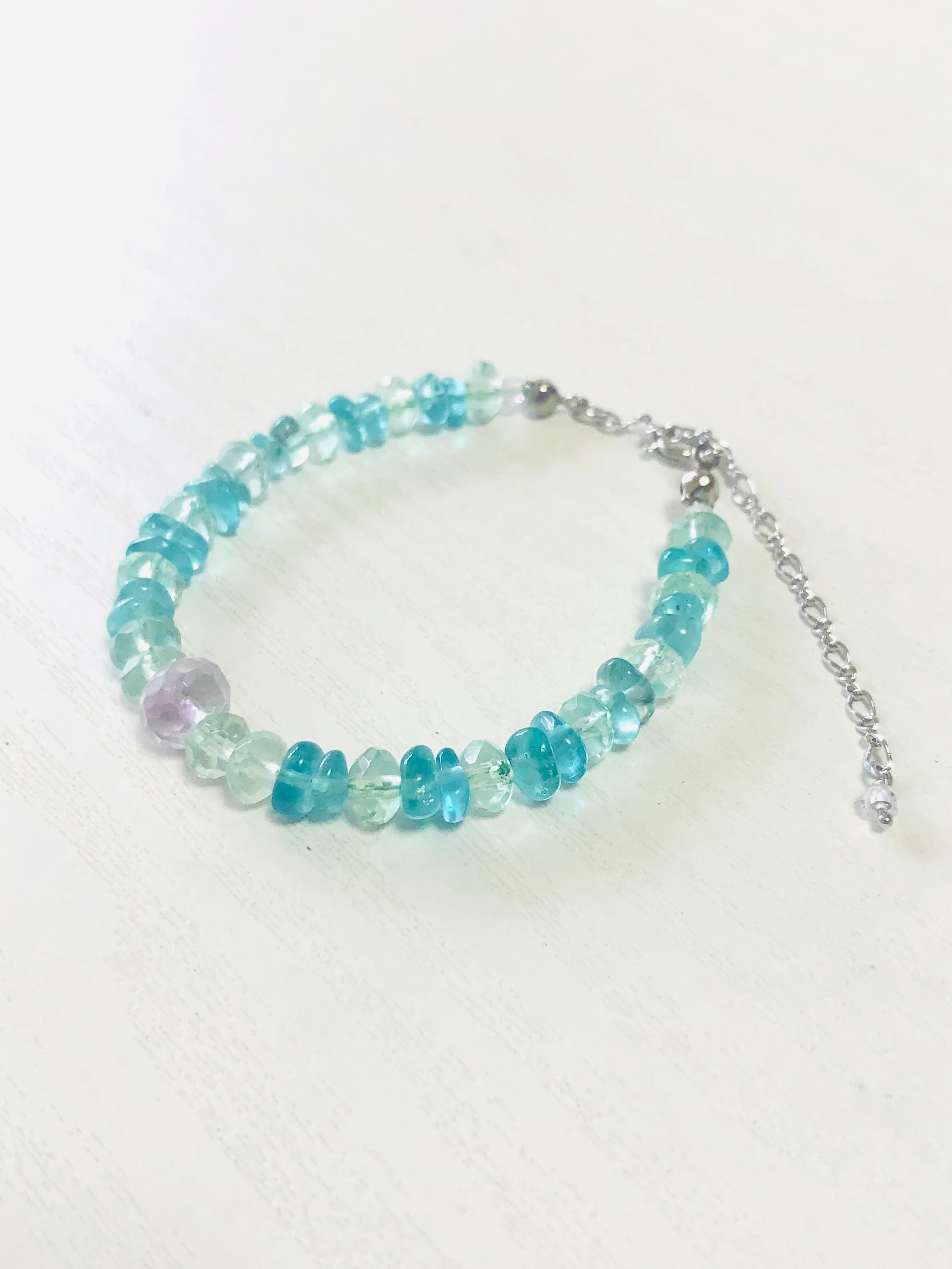 明るく爽やかなブルーアパタイトとフローライトのブレスレットです。