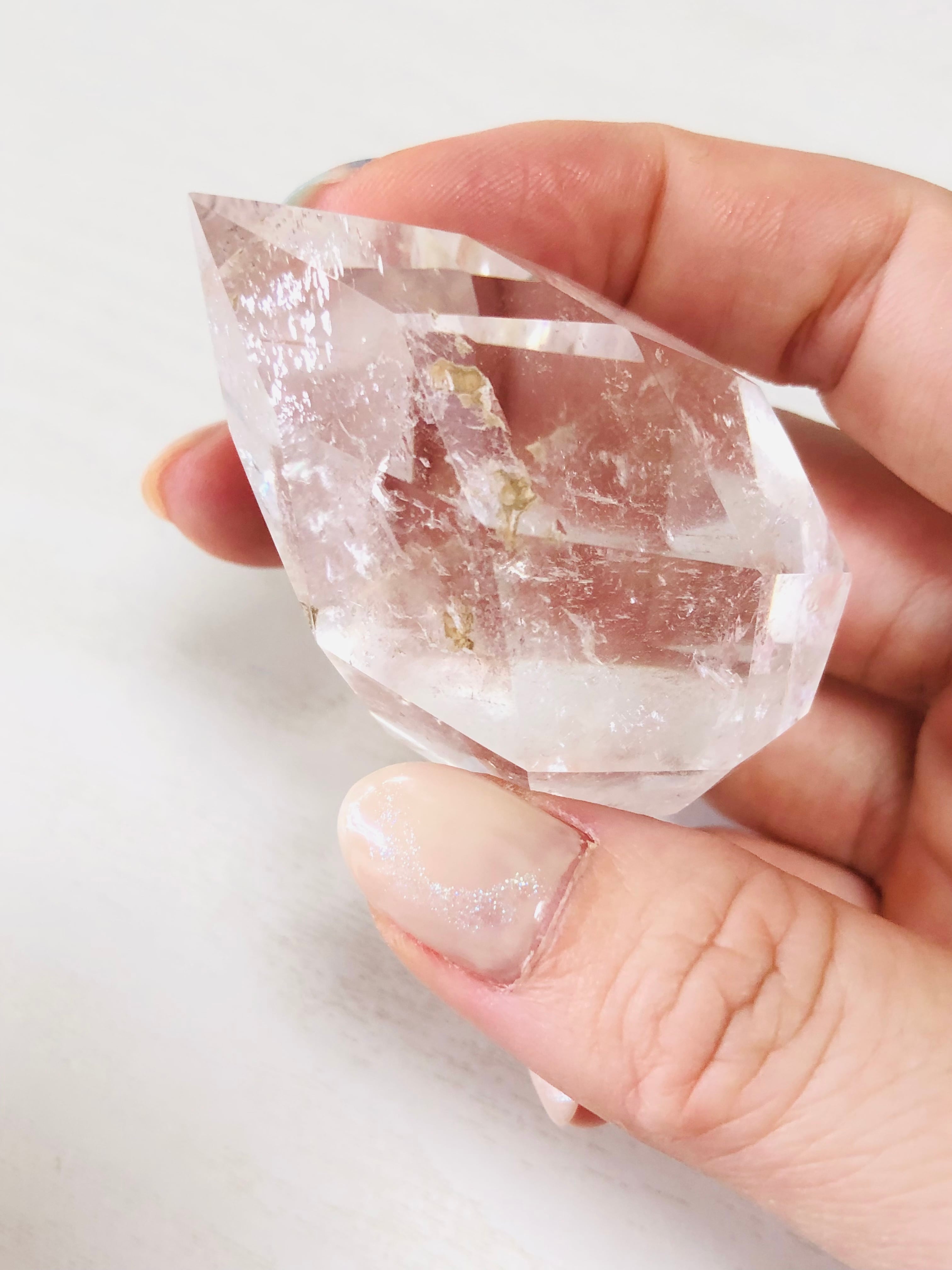 透明度も抜群なレムリアンシードクリスタルを美しくカットされ雫になりました。